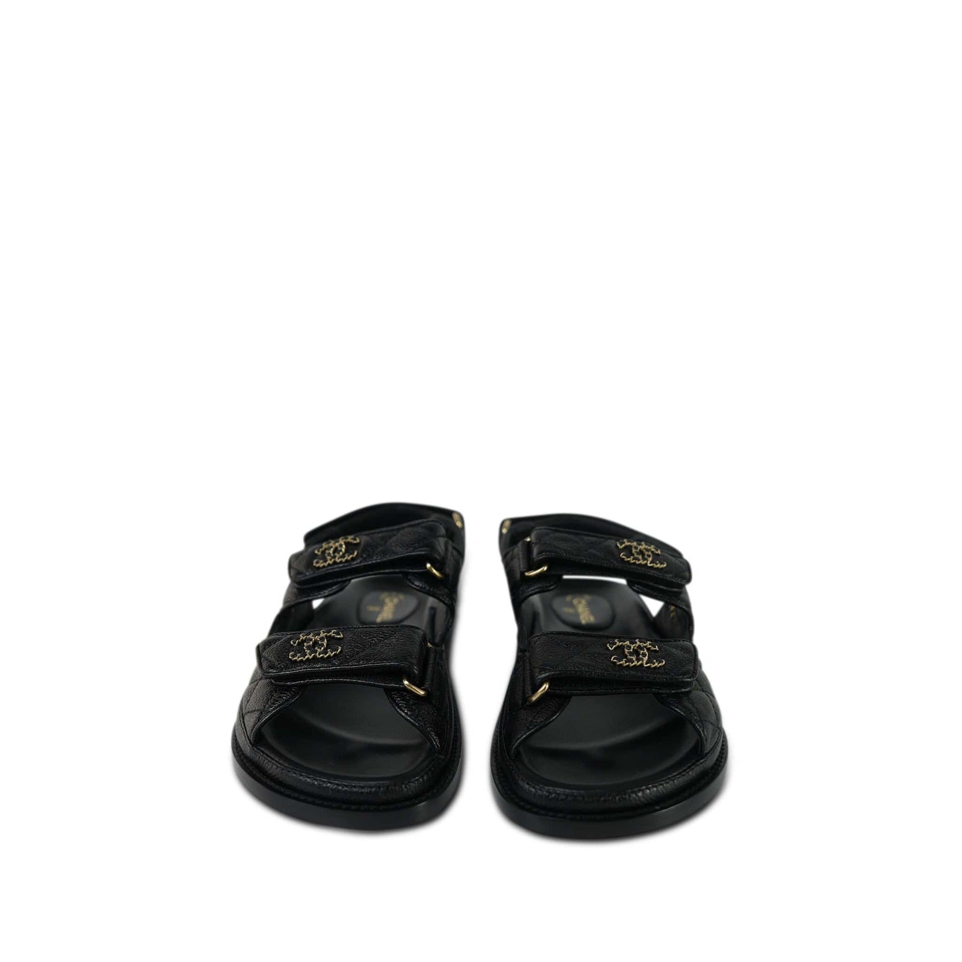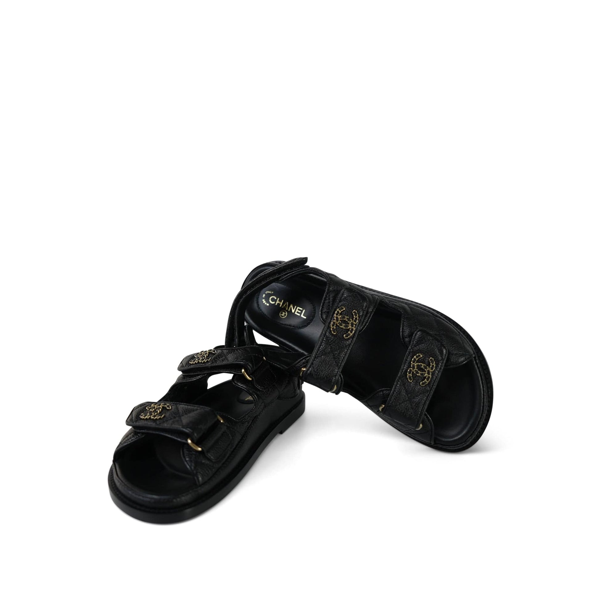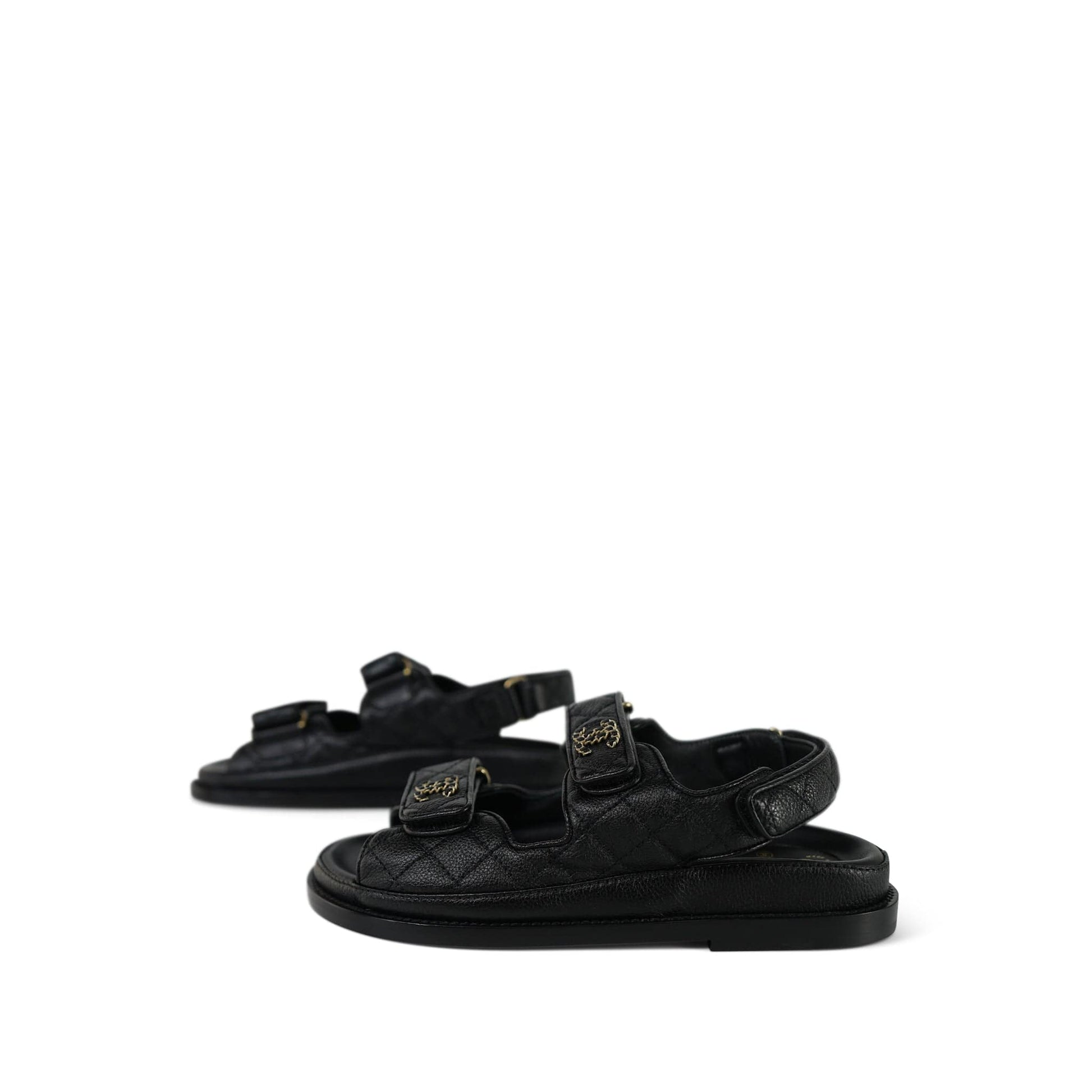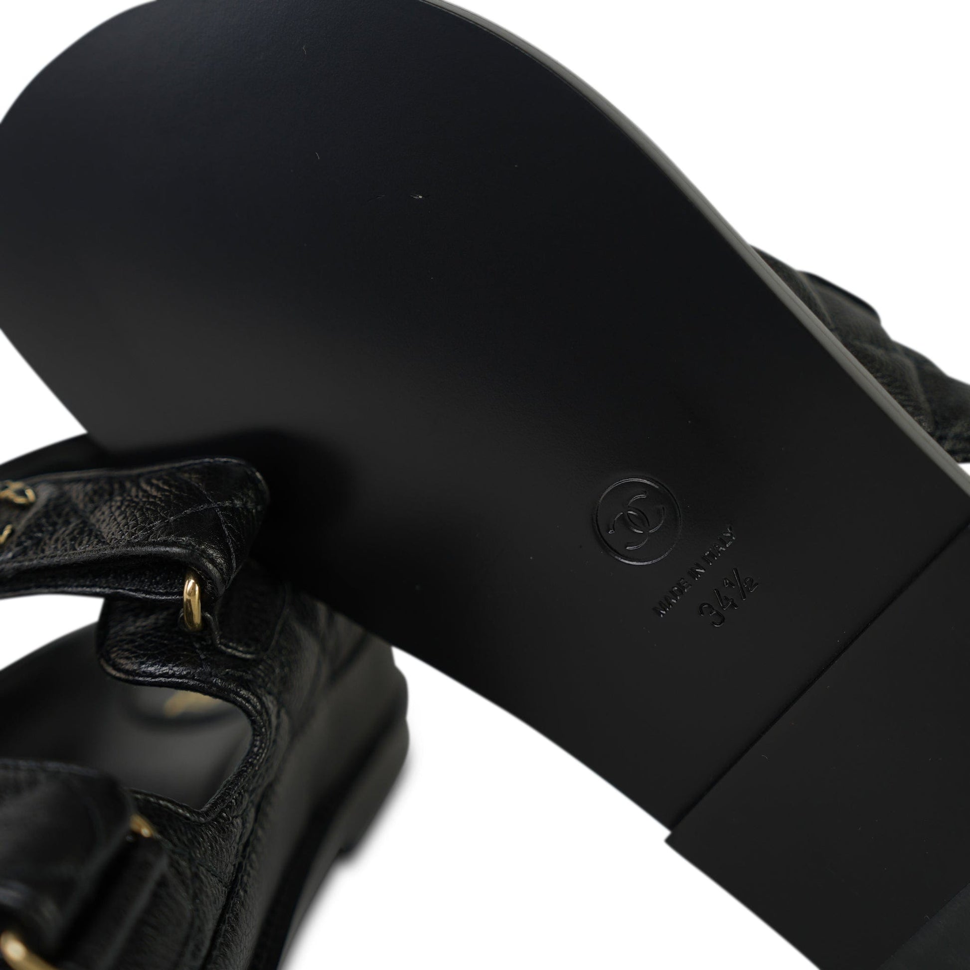 10B Black Calfskin Quilted Velcro Strap Sandals Size 34.5