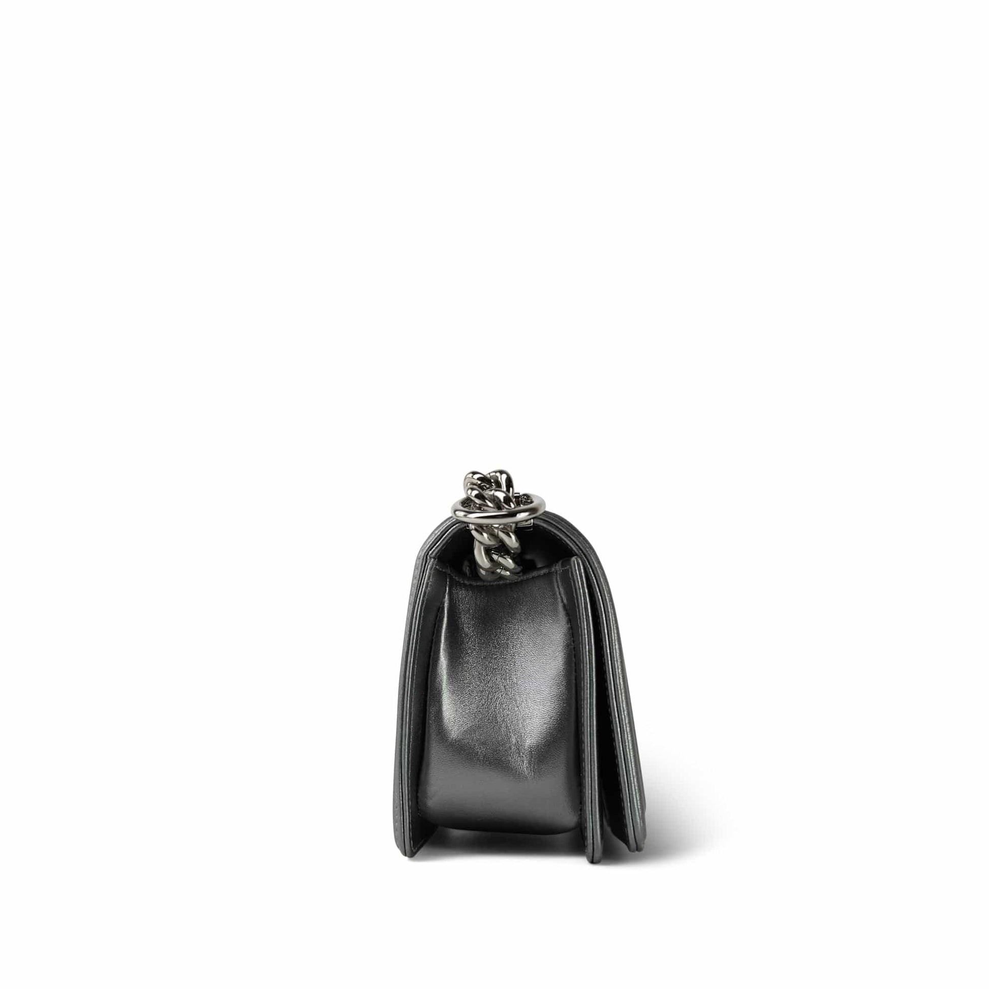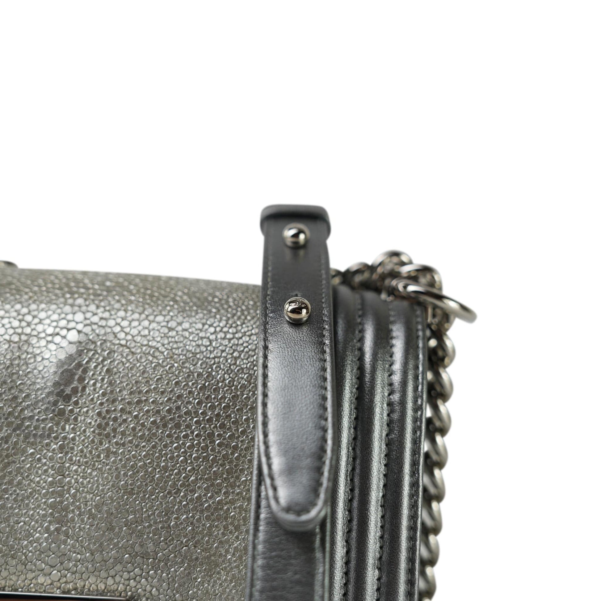 15K Silver Metallic Galuchat Stingray Boy Bag Small Silver Hardware