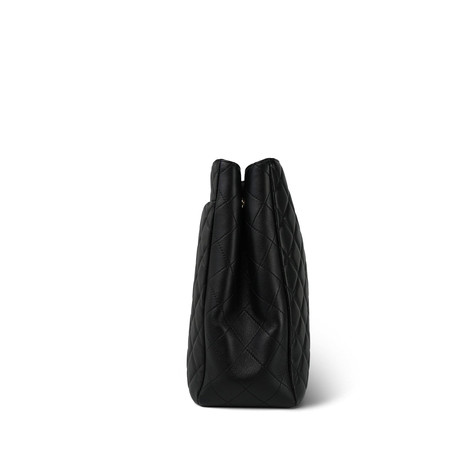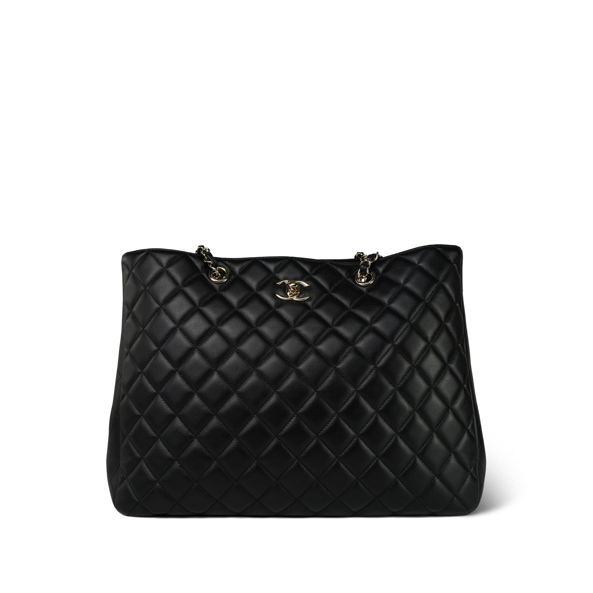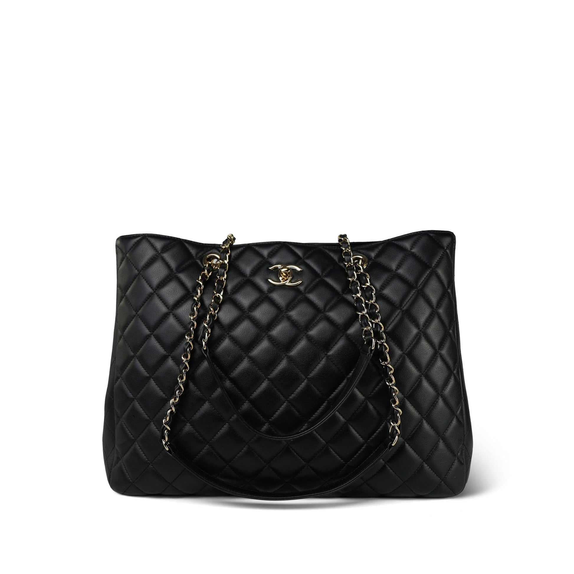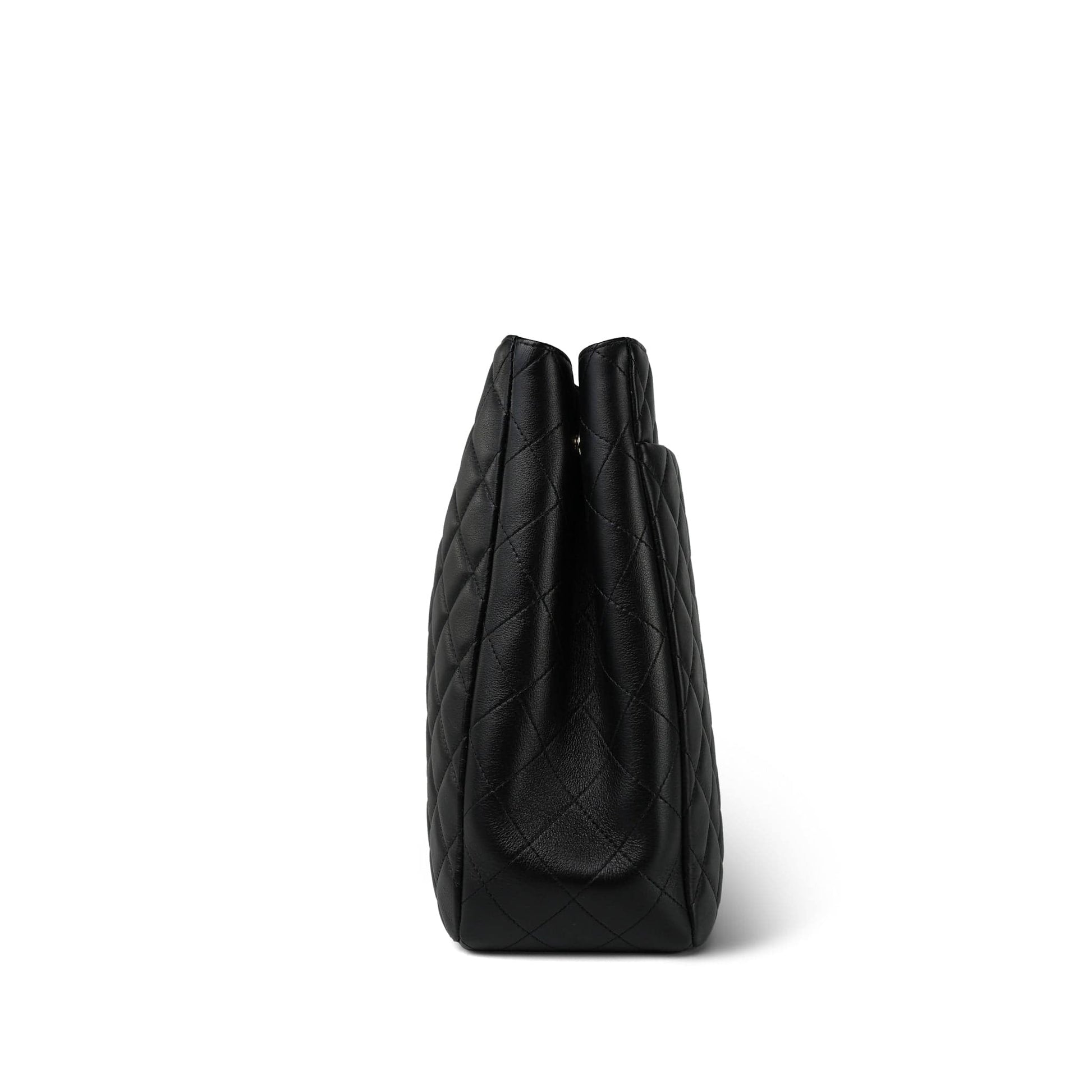 16B Black Lambskin Quilted CC Shopping Tote Large LGHW