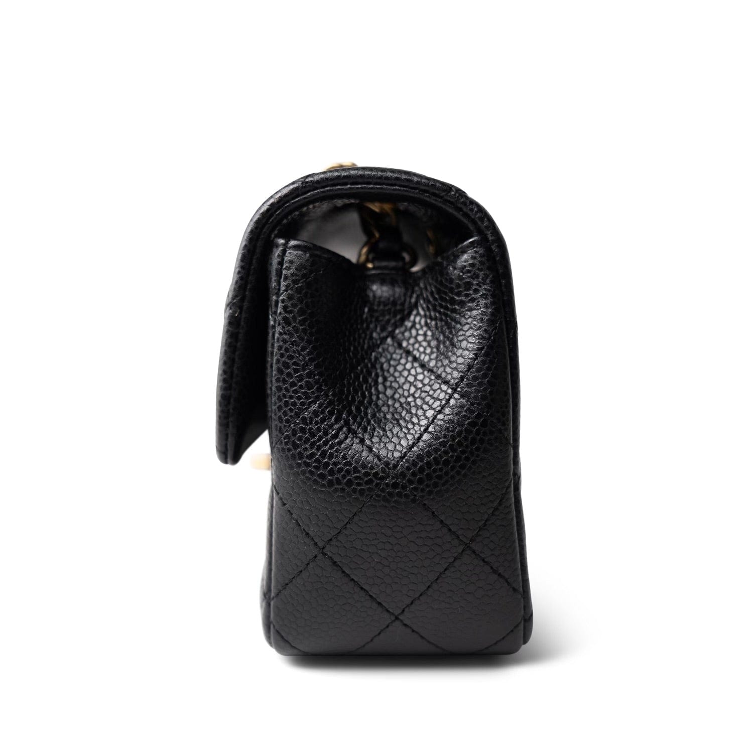 16C Black Caviar Quilted Mini Rectangular Single Flap