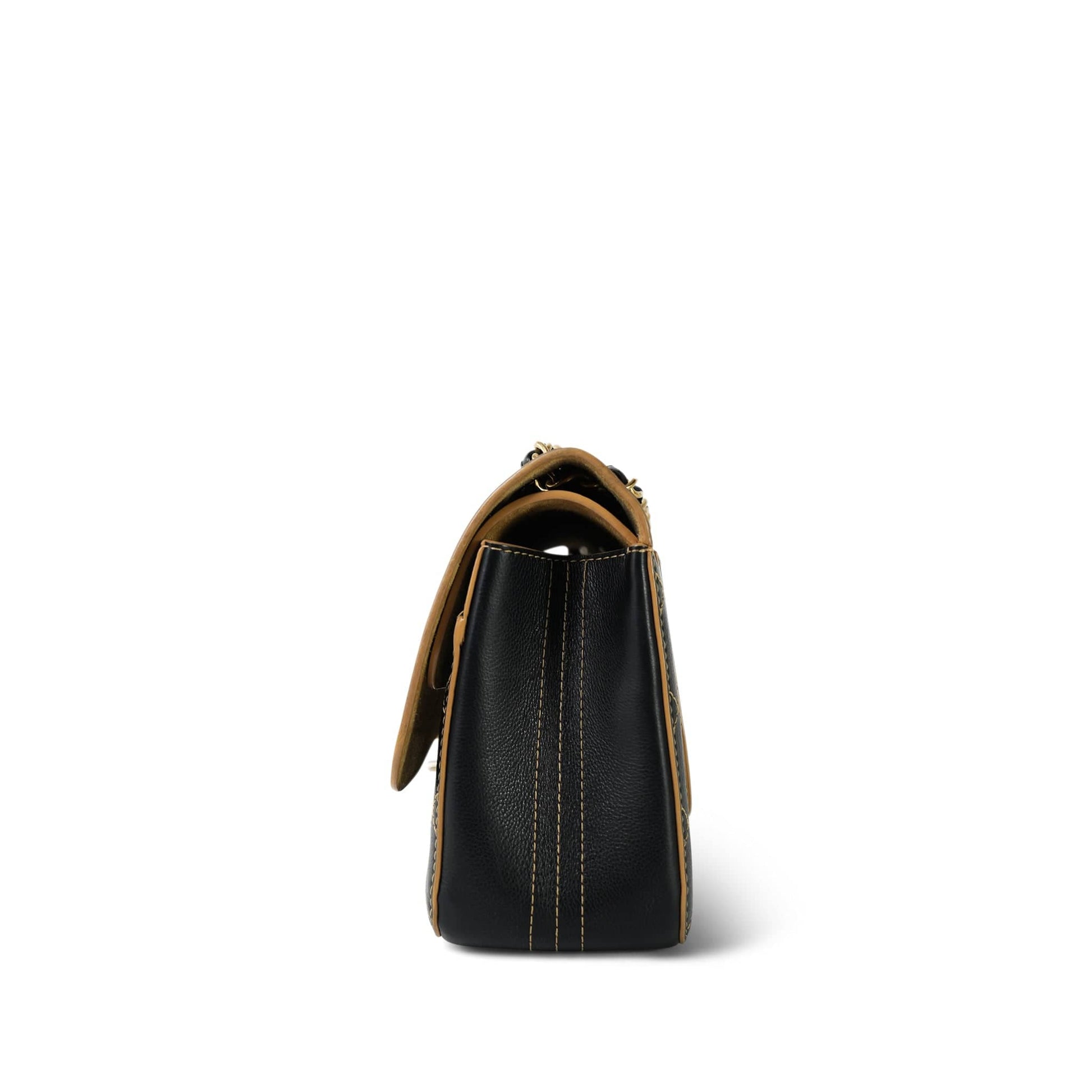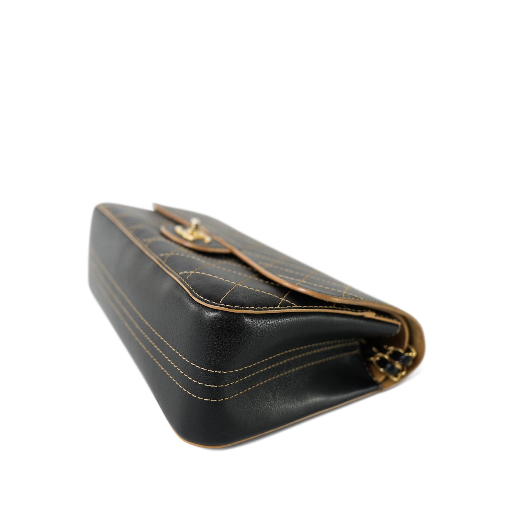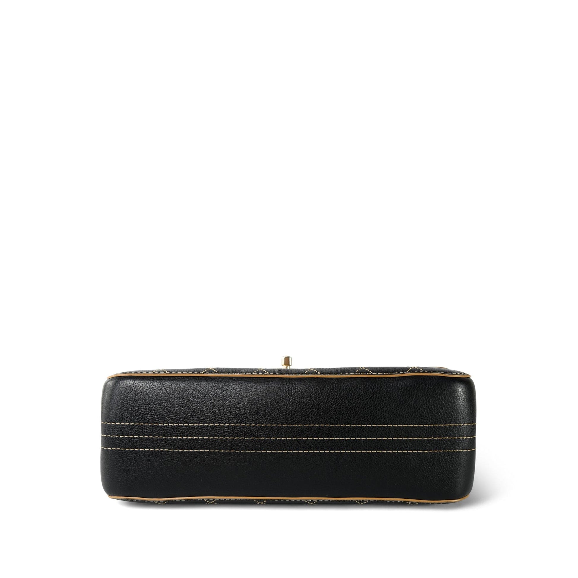 17B Black Calfskin / Tan Suede Wild Stitch Double Flap Jumbo Flap Aged Gold Hardware