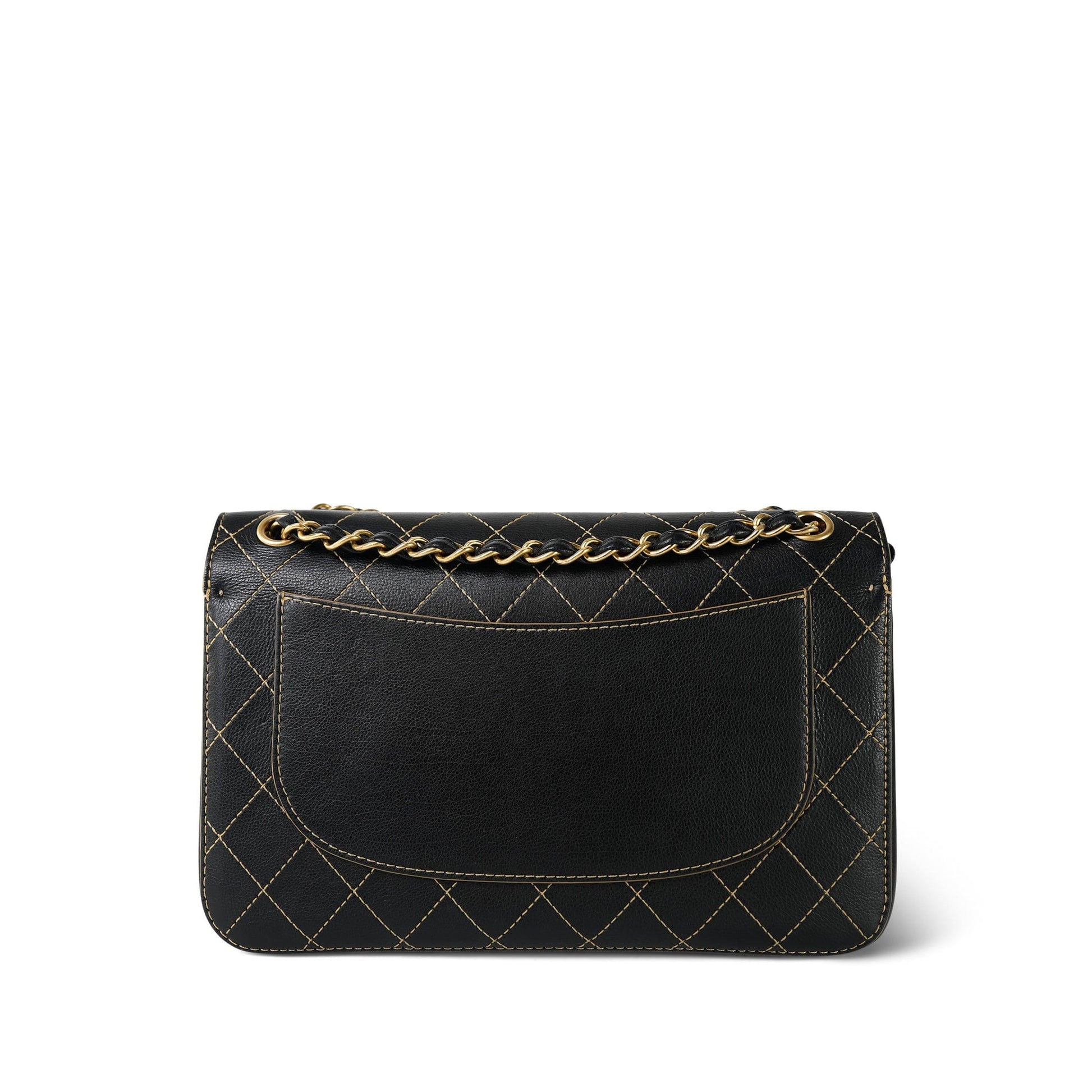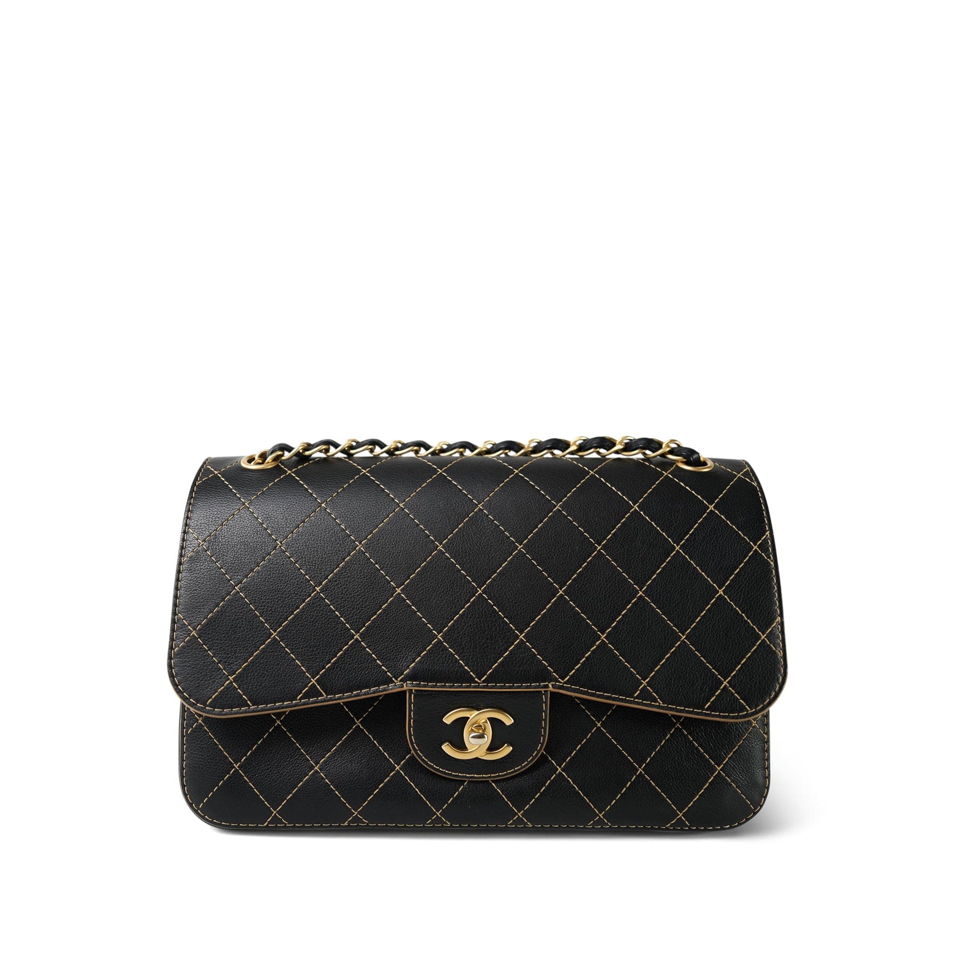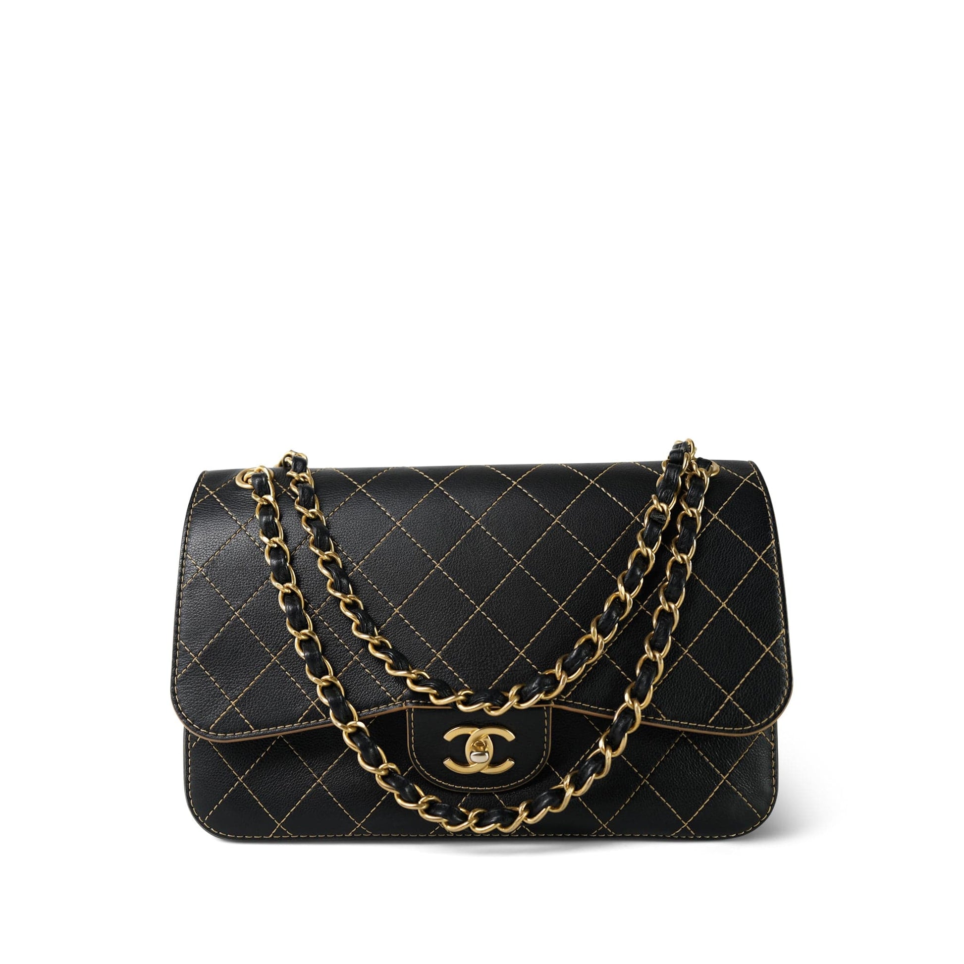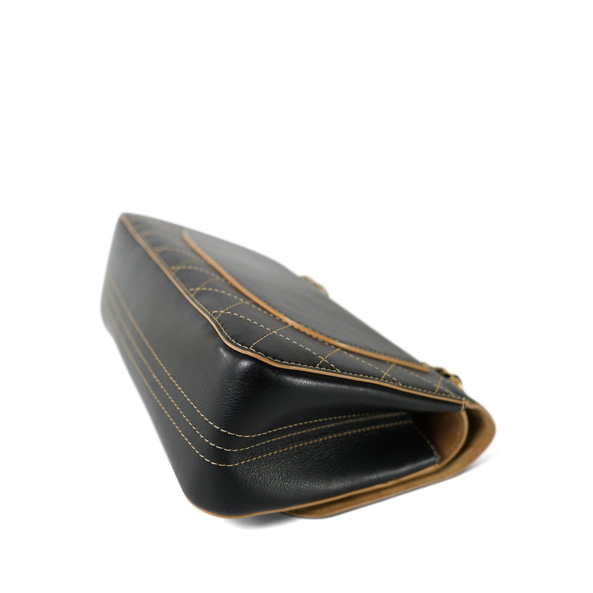 17B Black Calfskin / Tan Suede Wild Stitch Double Flap Jumbo Flap Aged Gold Hardware