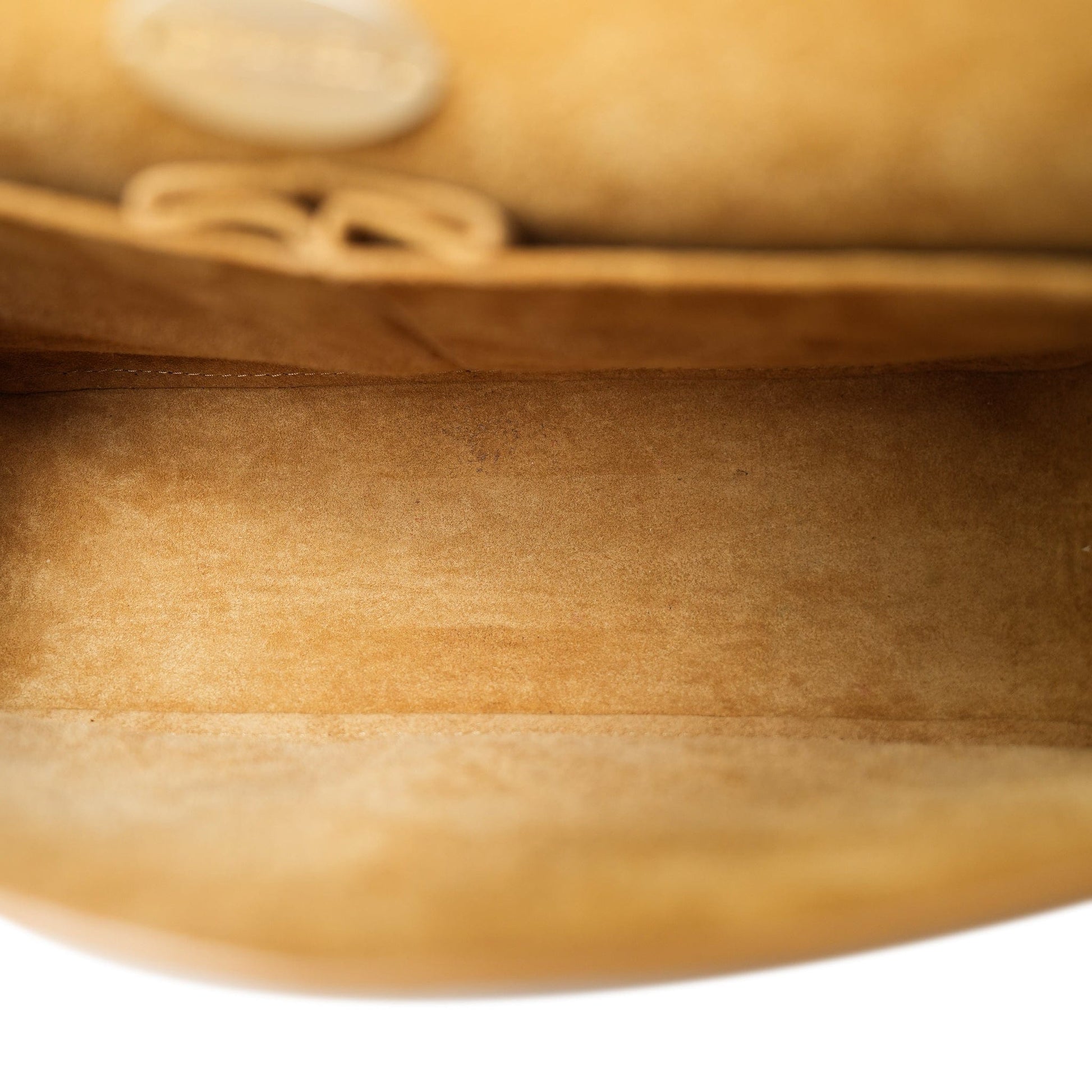 Condition: Excellent. Very minor spot inside of bag. Light impressions on interior flap from chain and button closure.