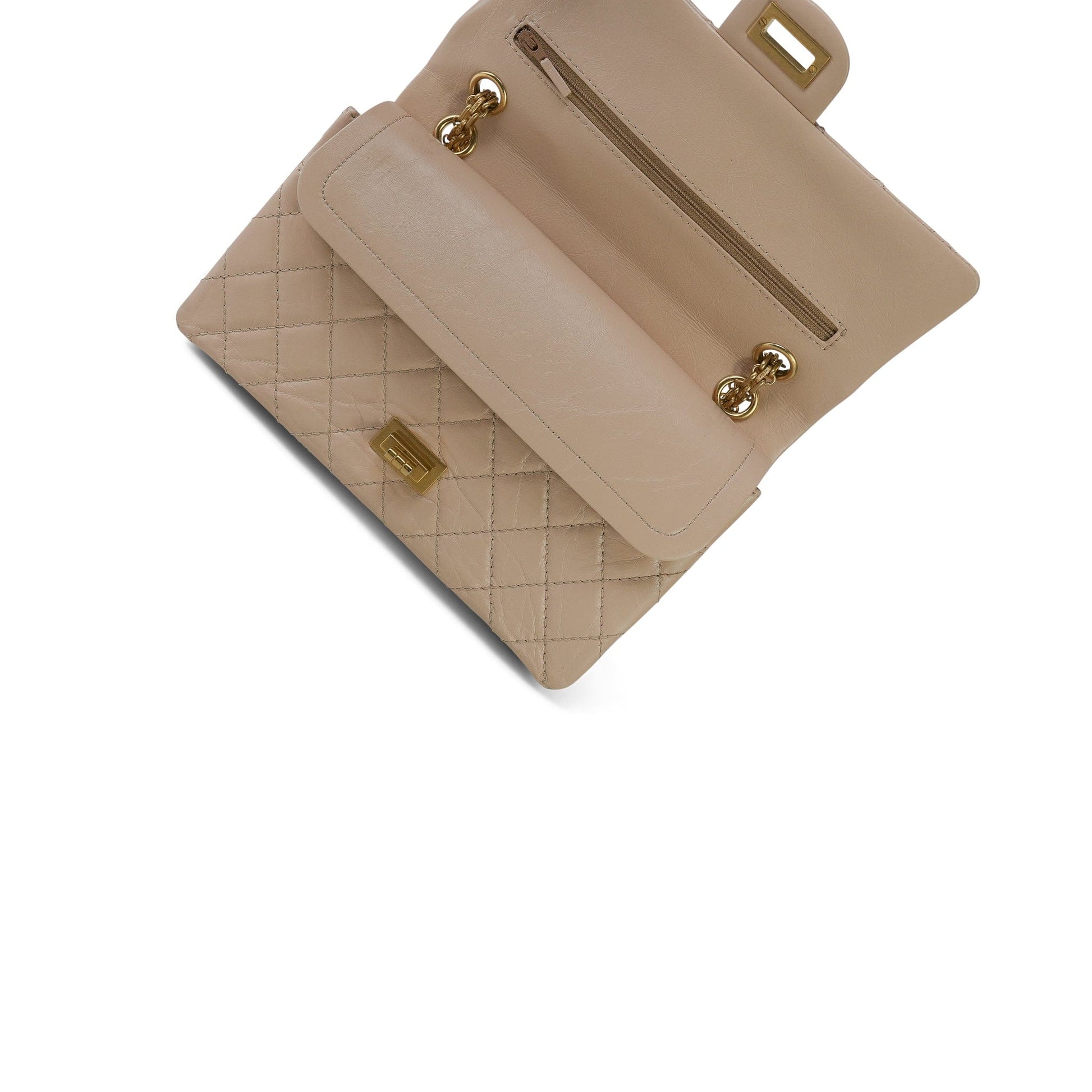 18A Beige Crumpled Calfskin Quilted Reissue 2.55 225 Aged Gold Hardware