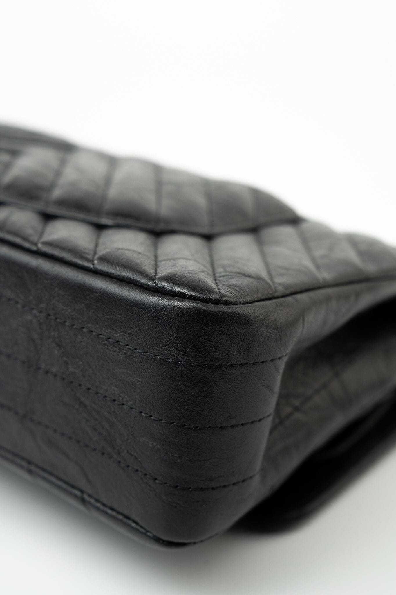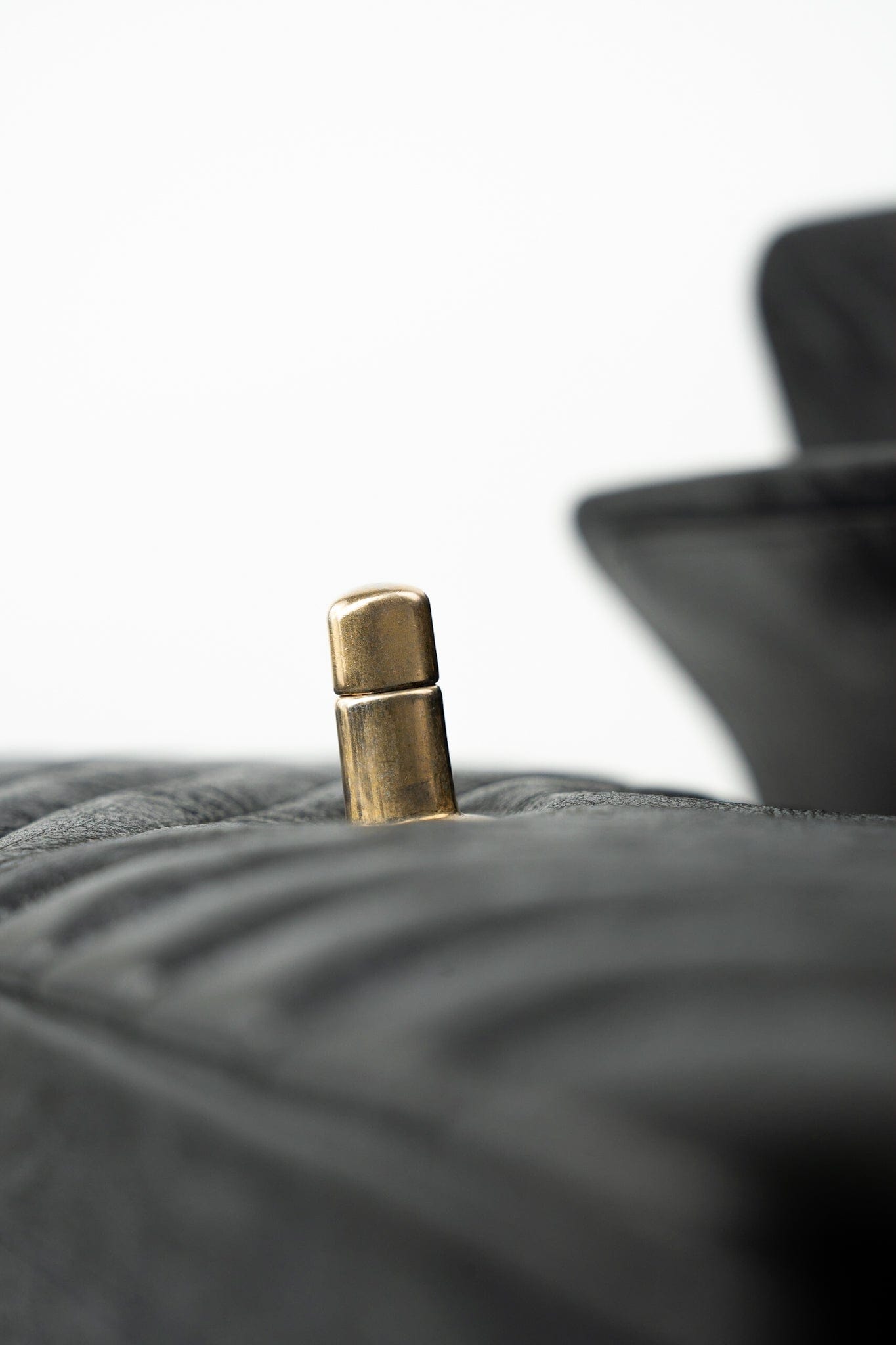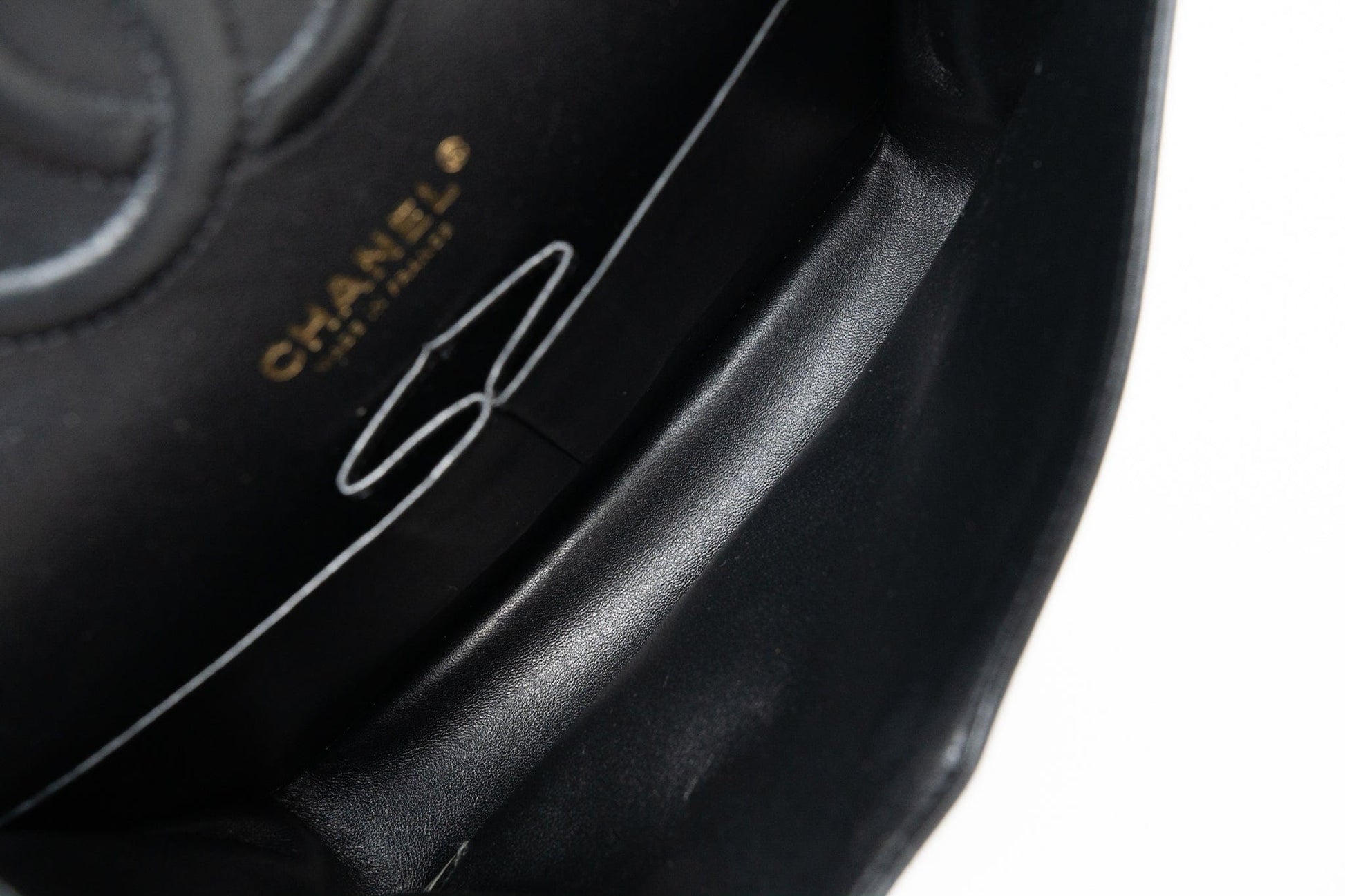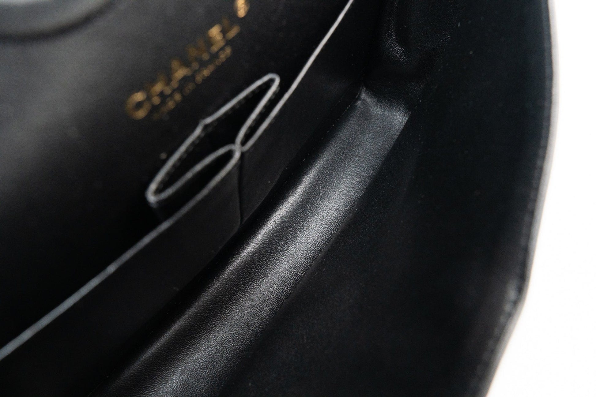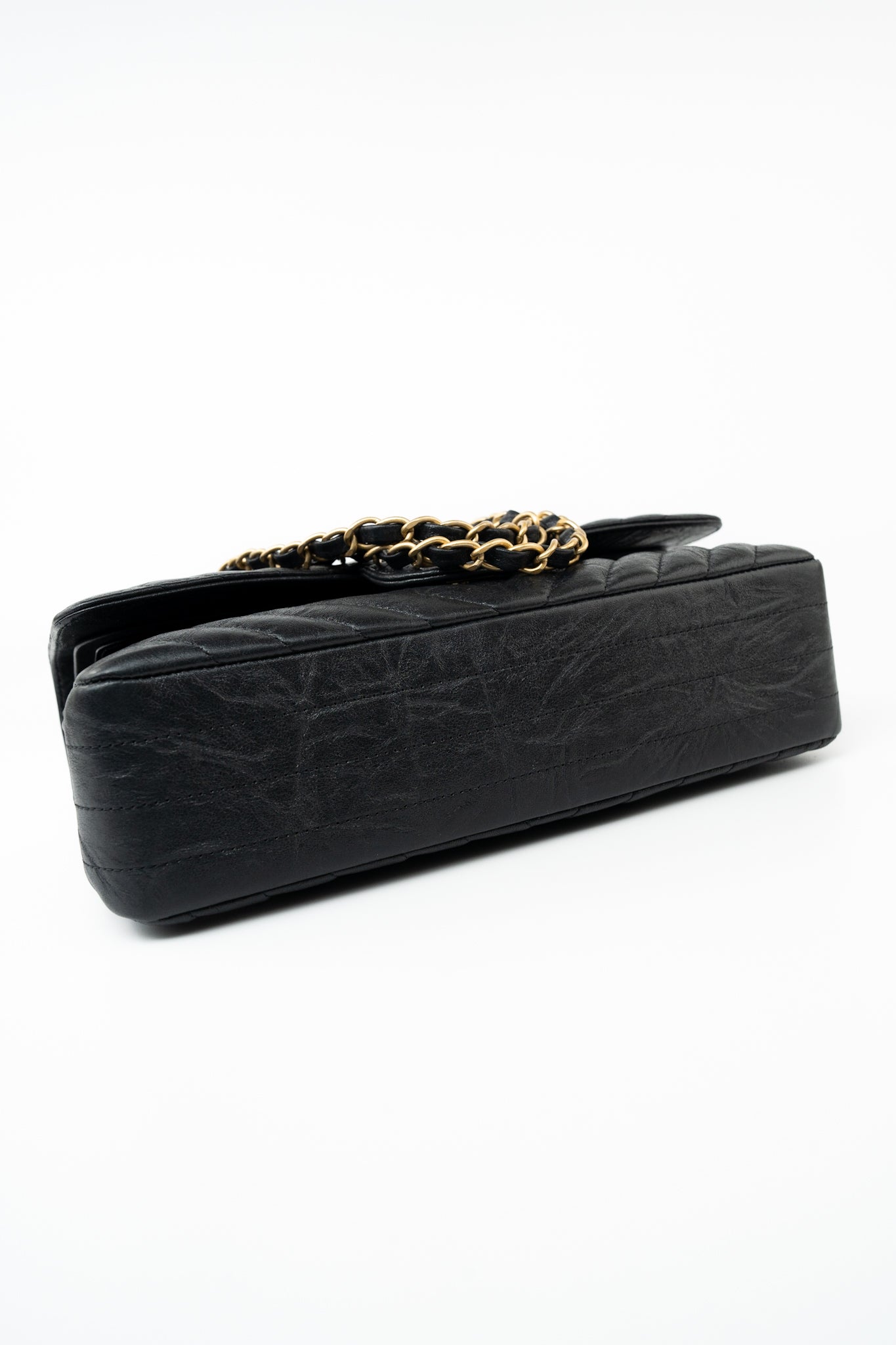 18B Metallic Black Crumpled Calfskin Chevron Classic Flap Medium Aged Gold Hardware