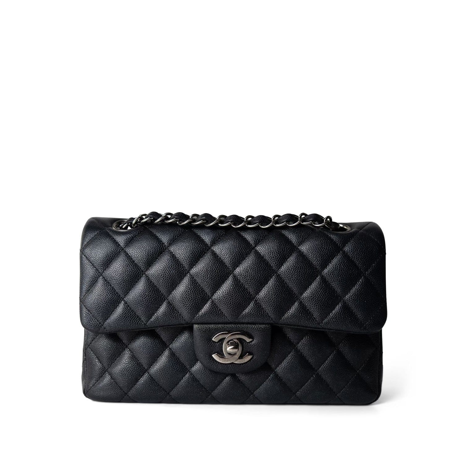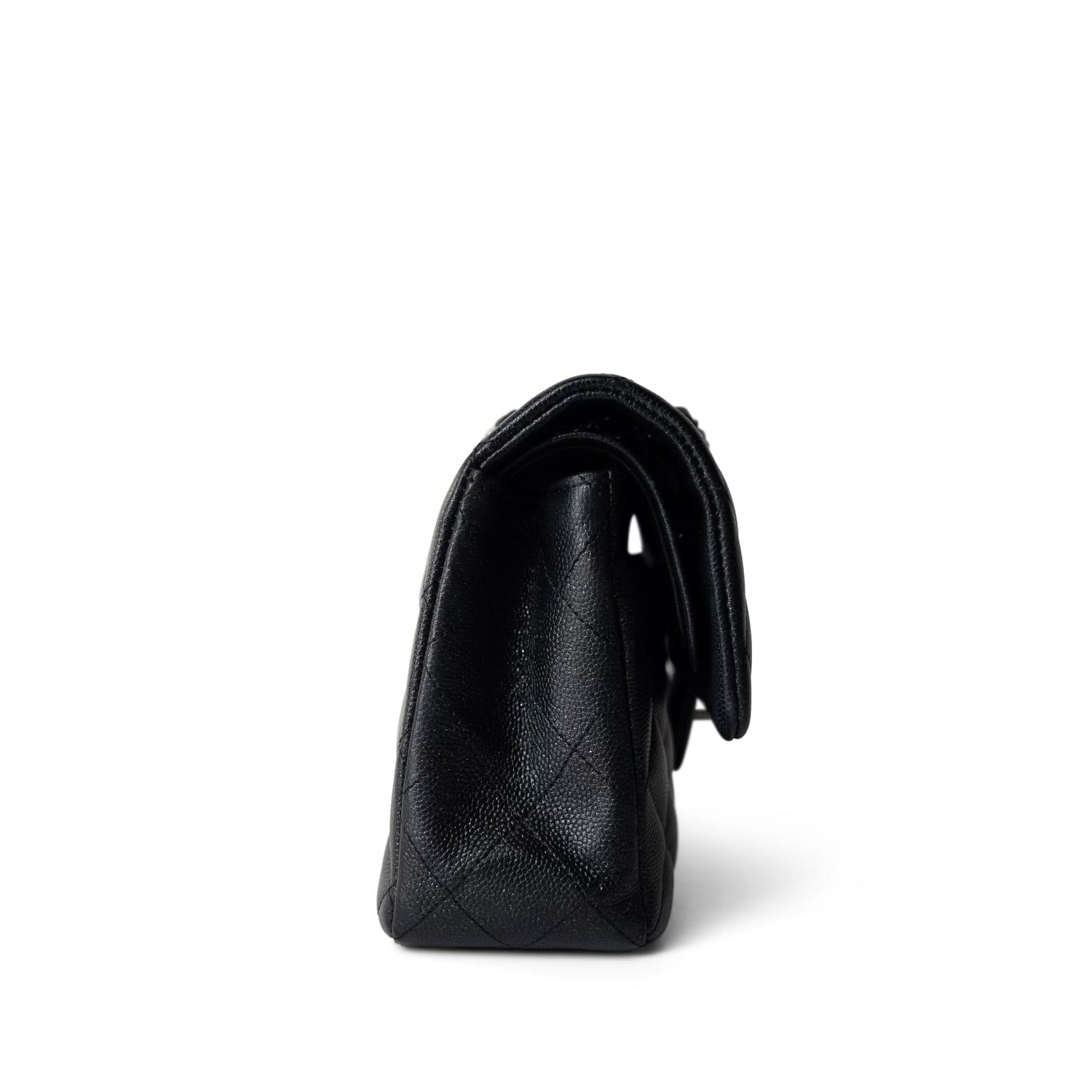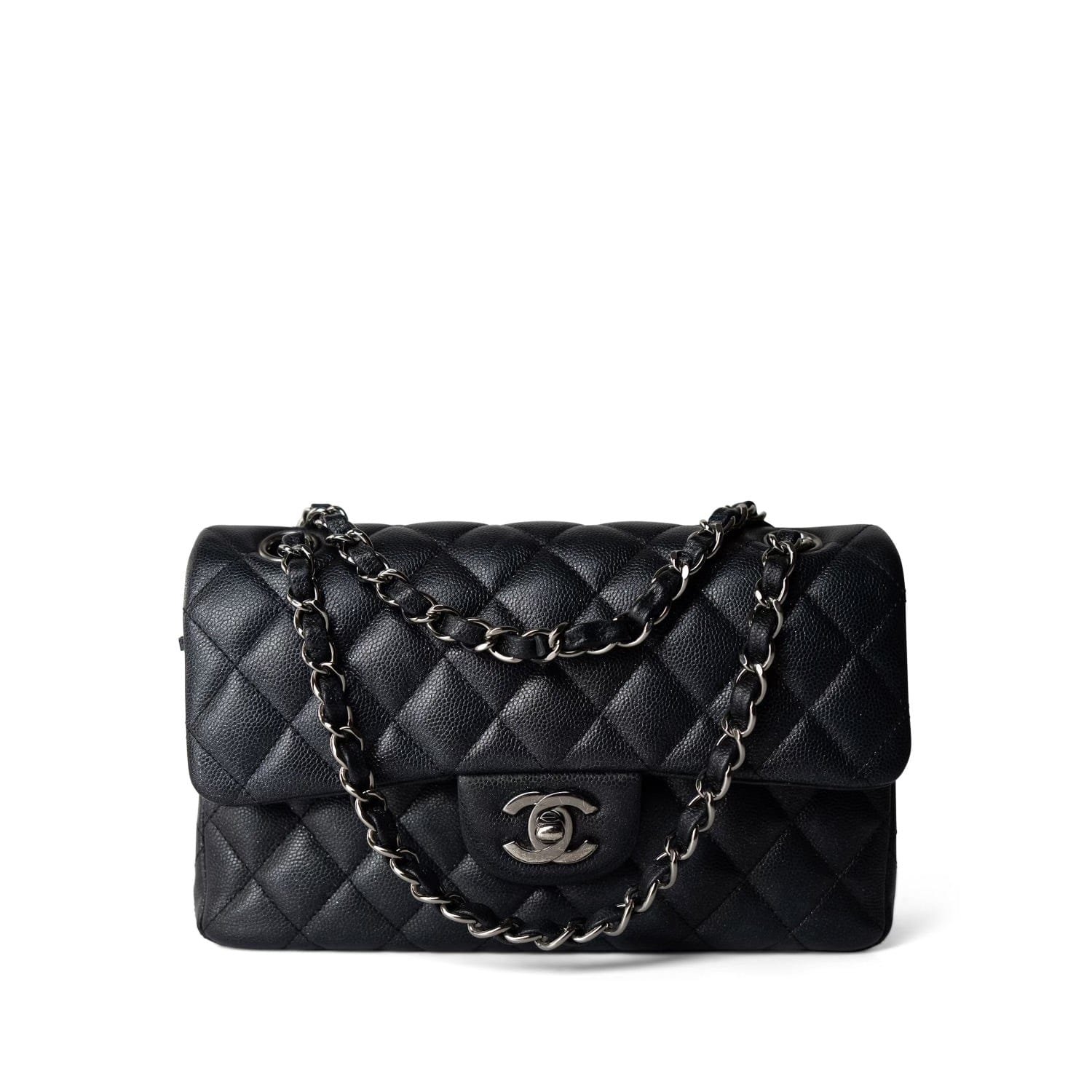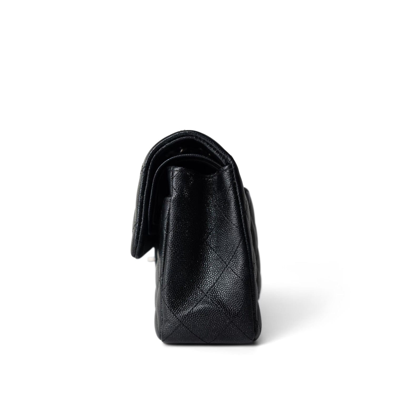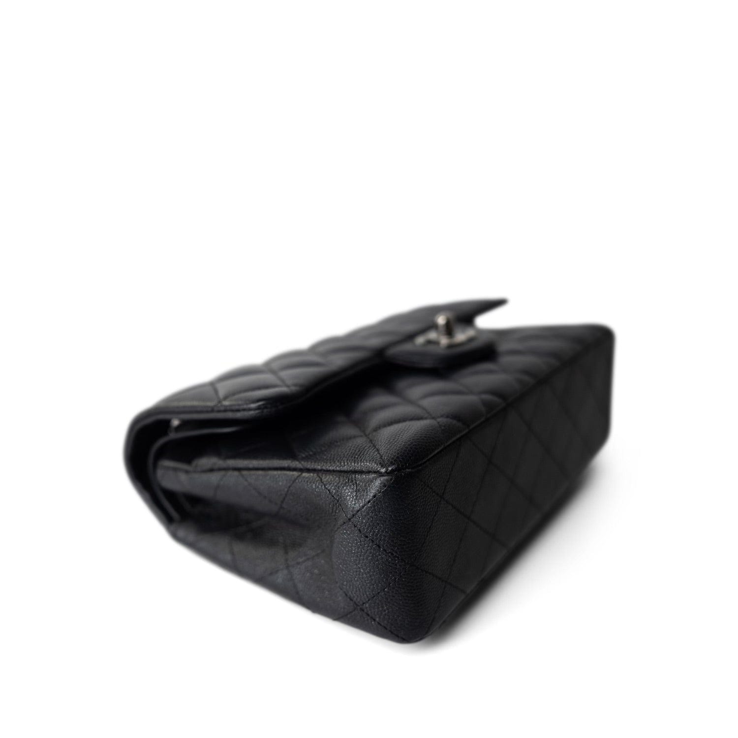 18C Charcoal Glittery Caviar Quilted Classic Flap Small