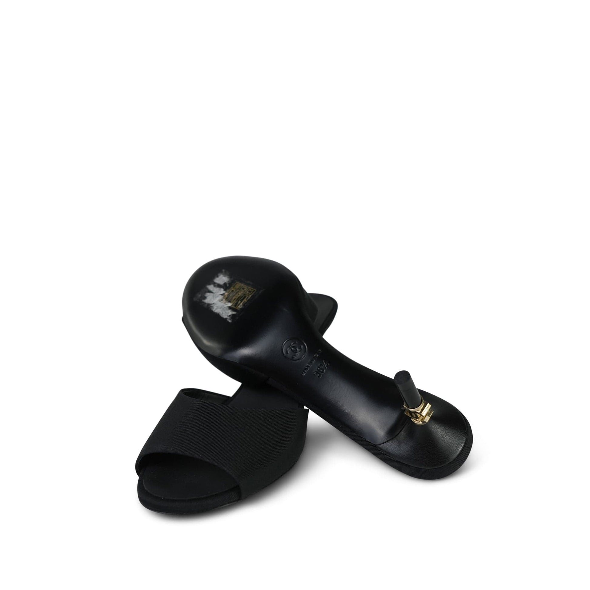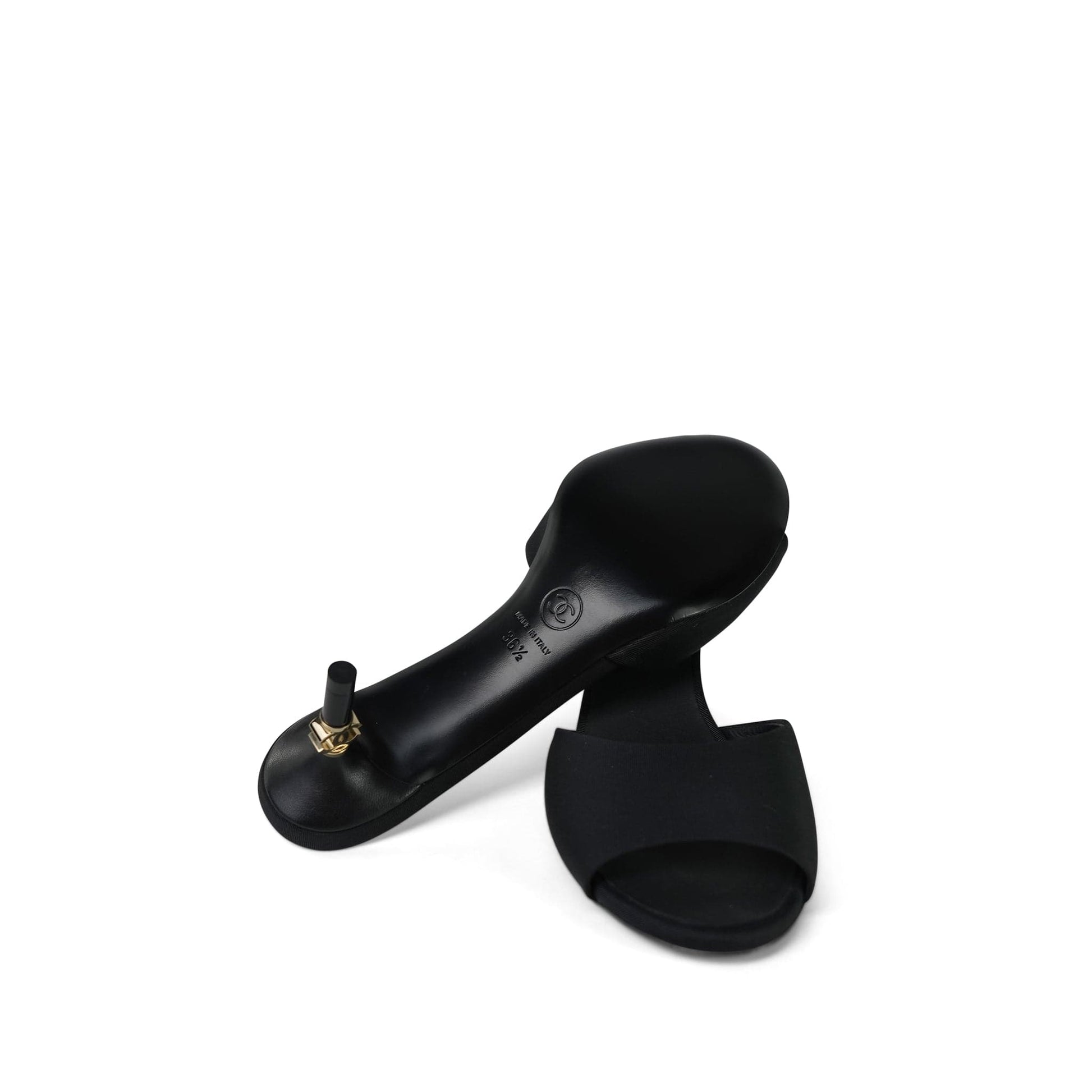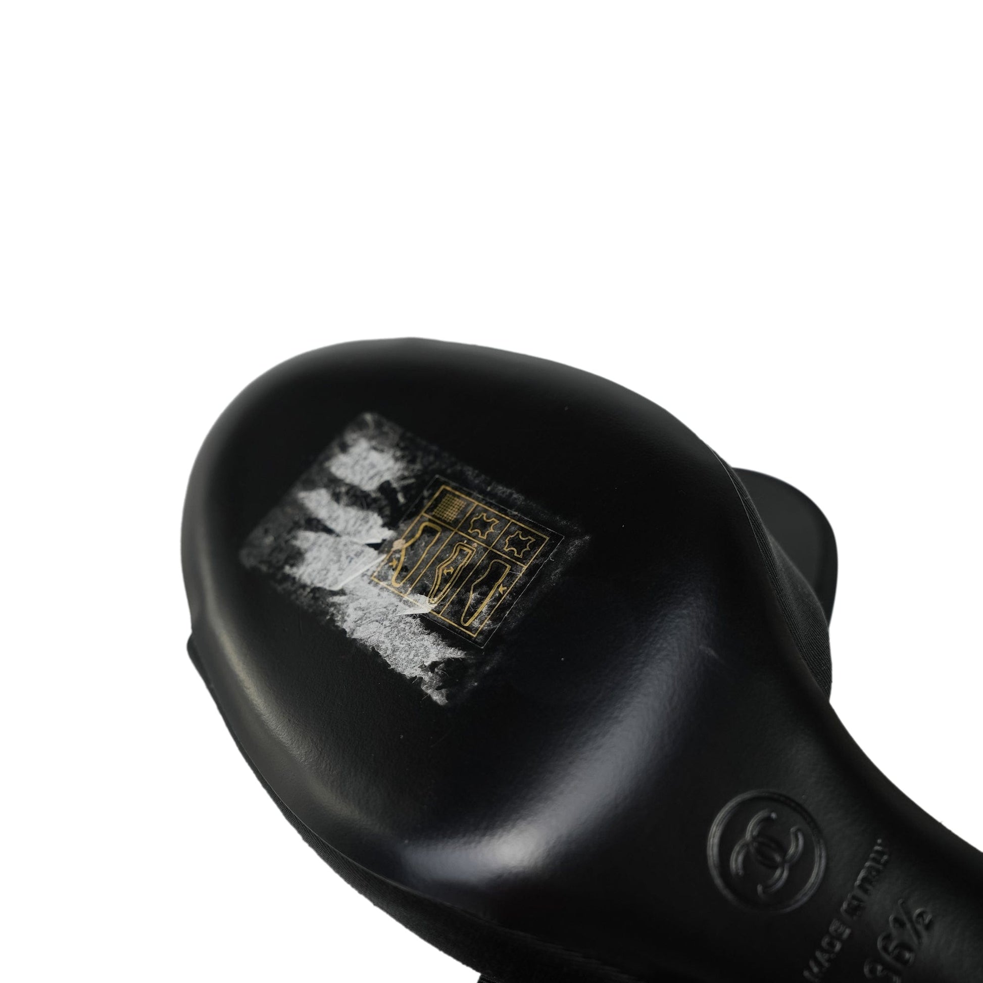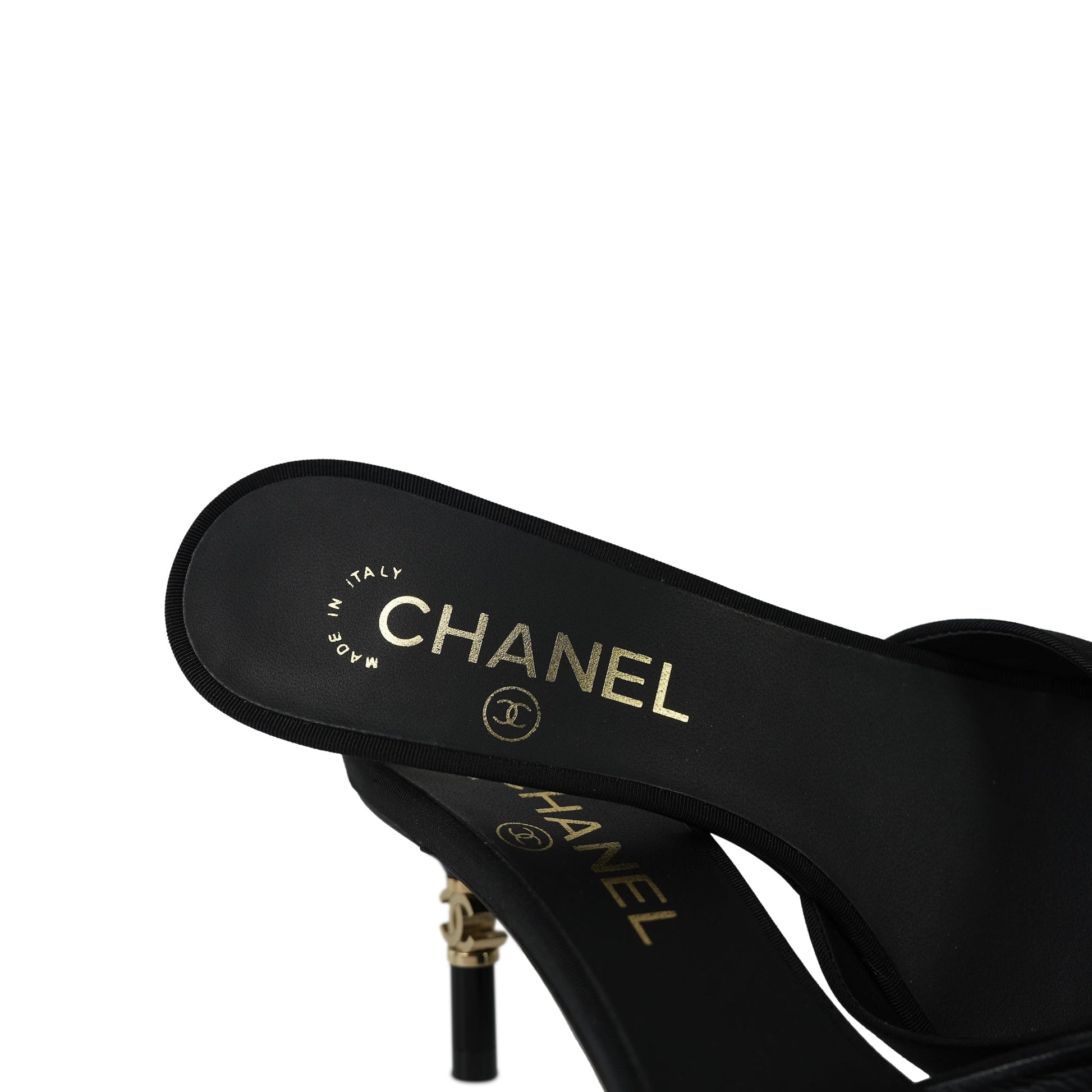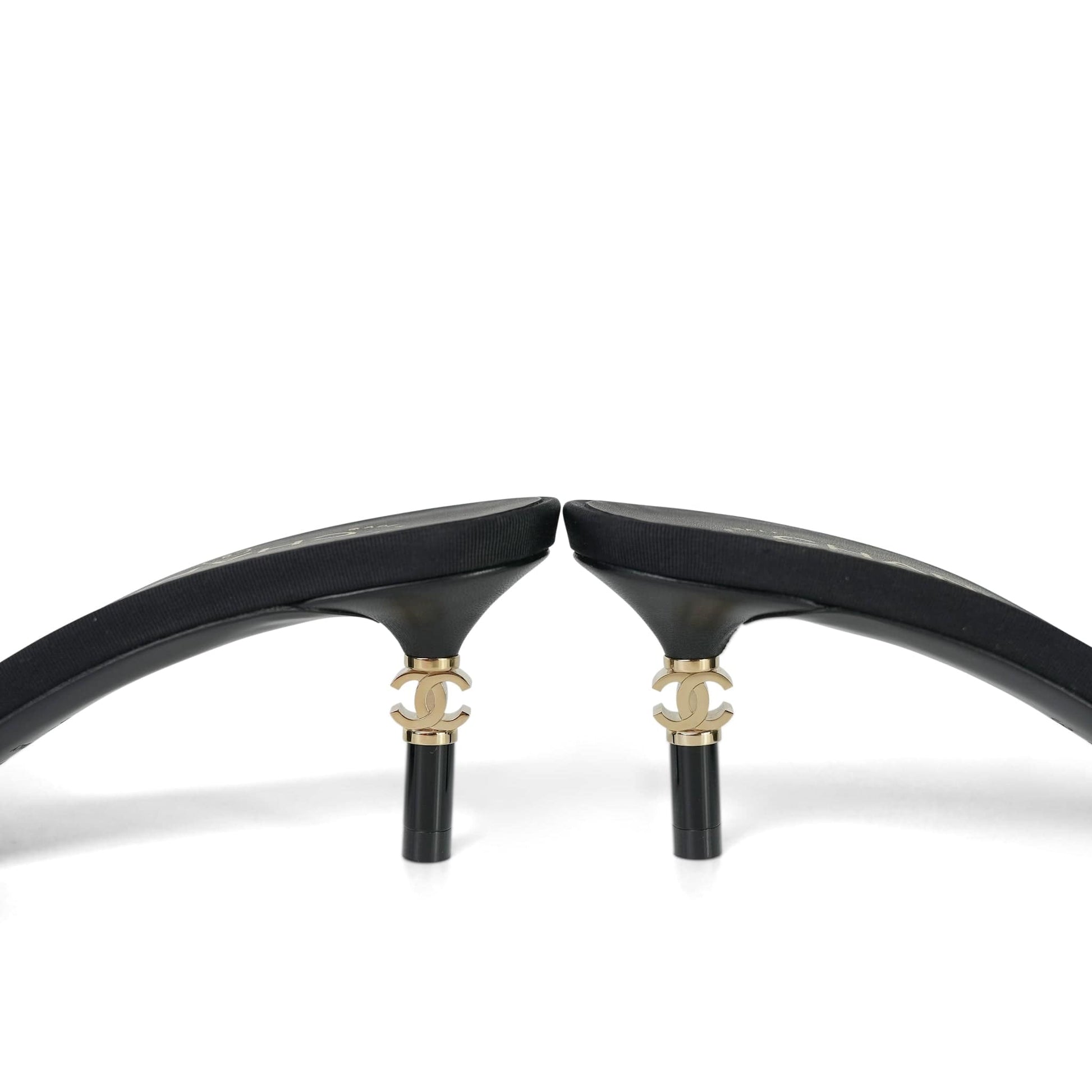 18P Black Grosgrain/Lambskin Interlocking CC Logo Mules Size 36.5