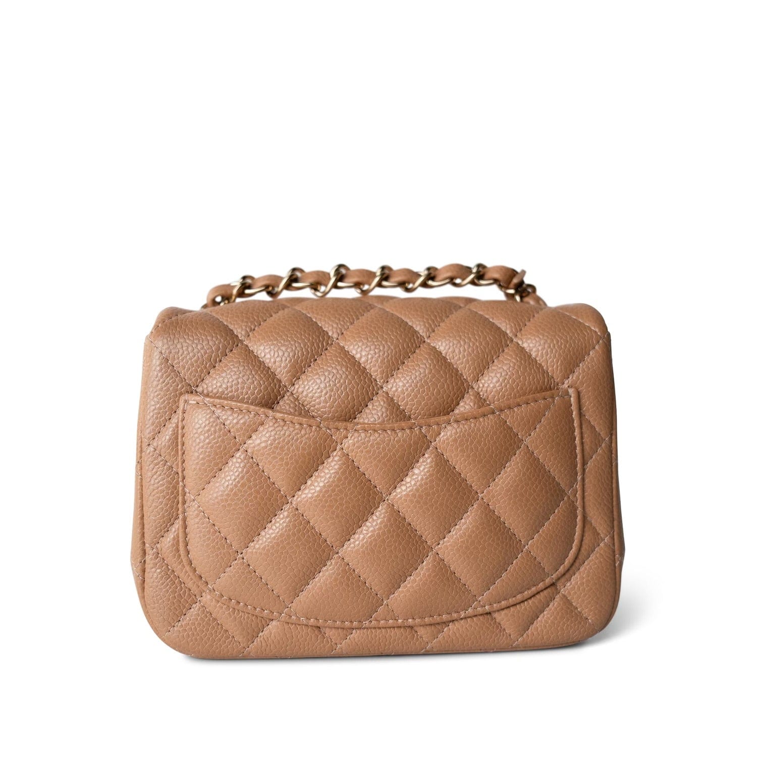 18S Beige Caviar Quilted Mini Square Flap Light Gold Hardware
