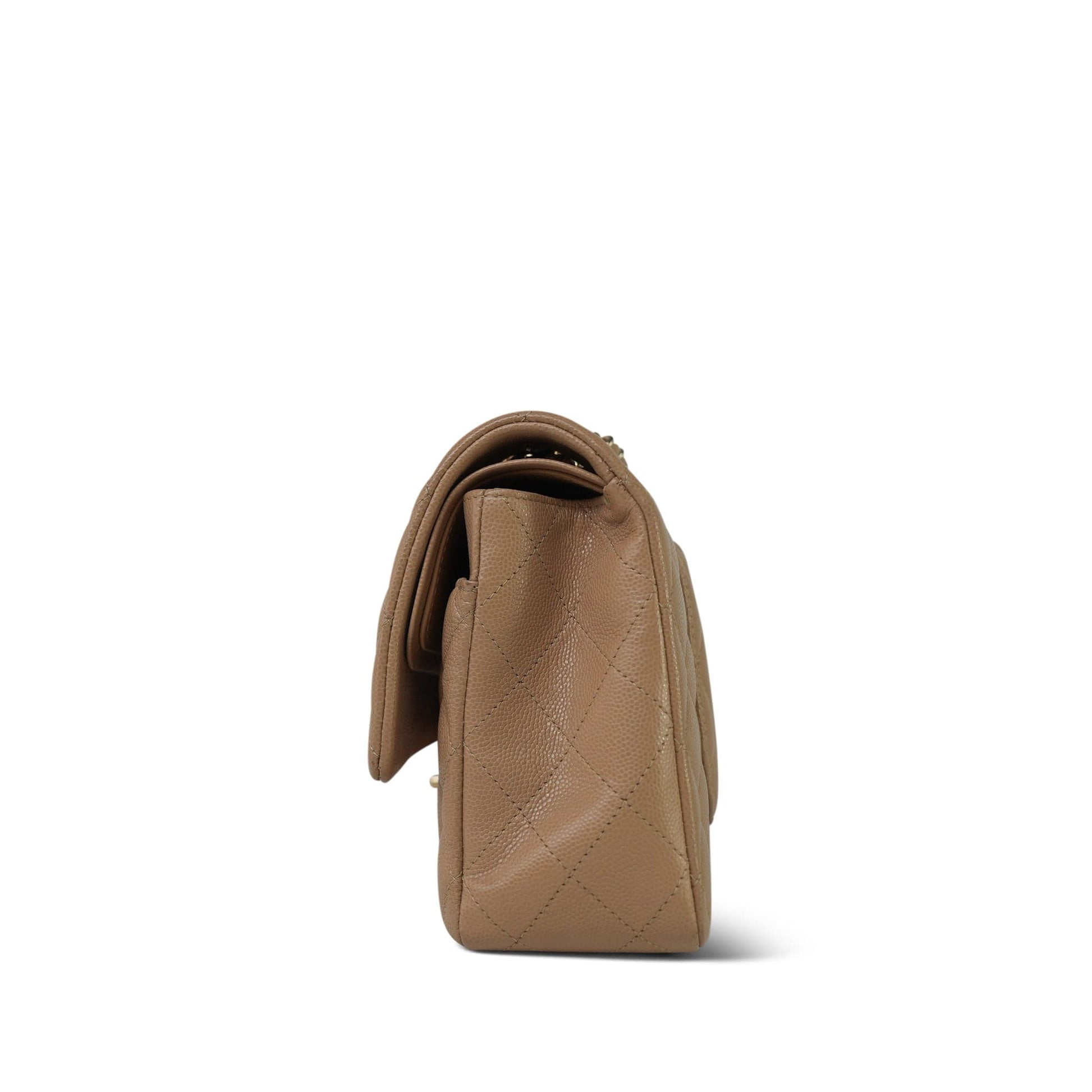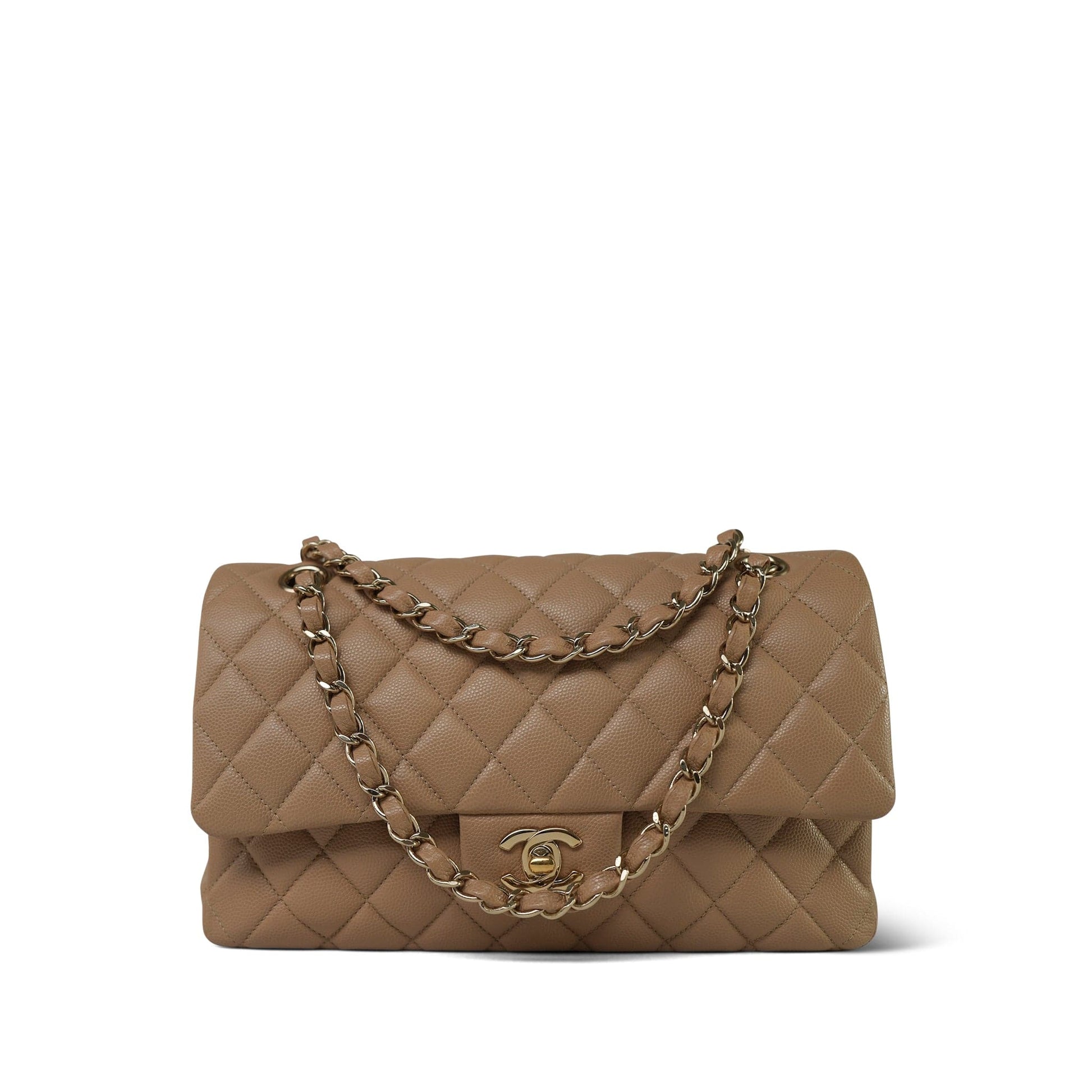 19B Beige Caviar Quilted Classic Flap Medium Light Gold Hardware