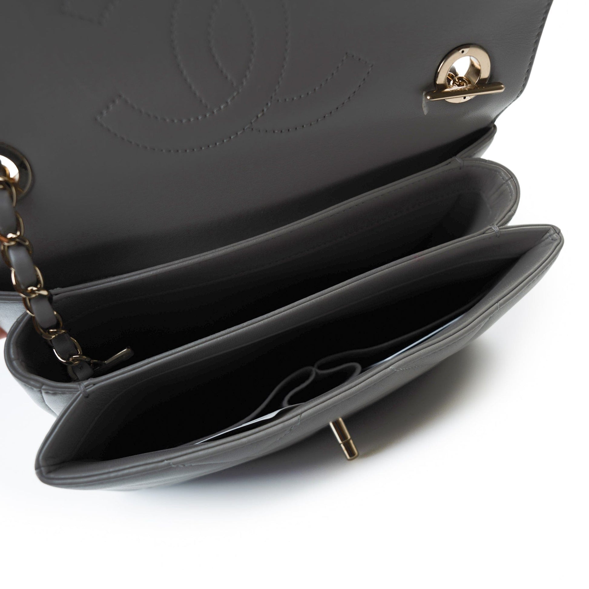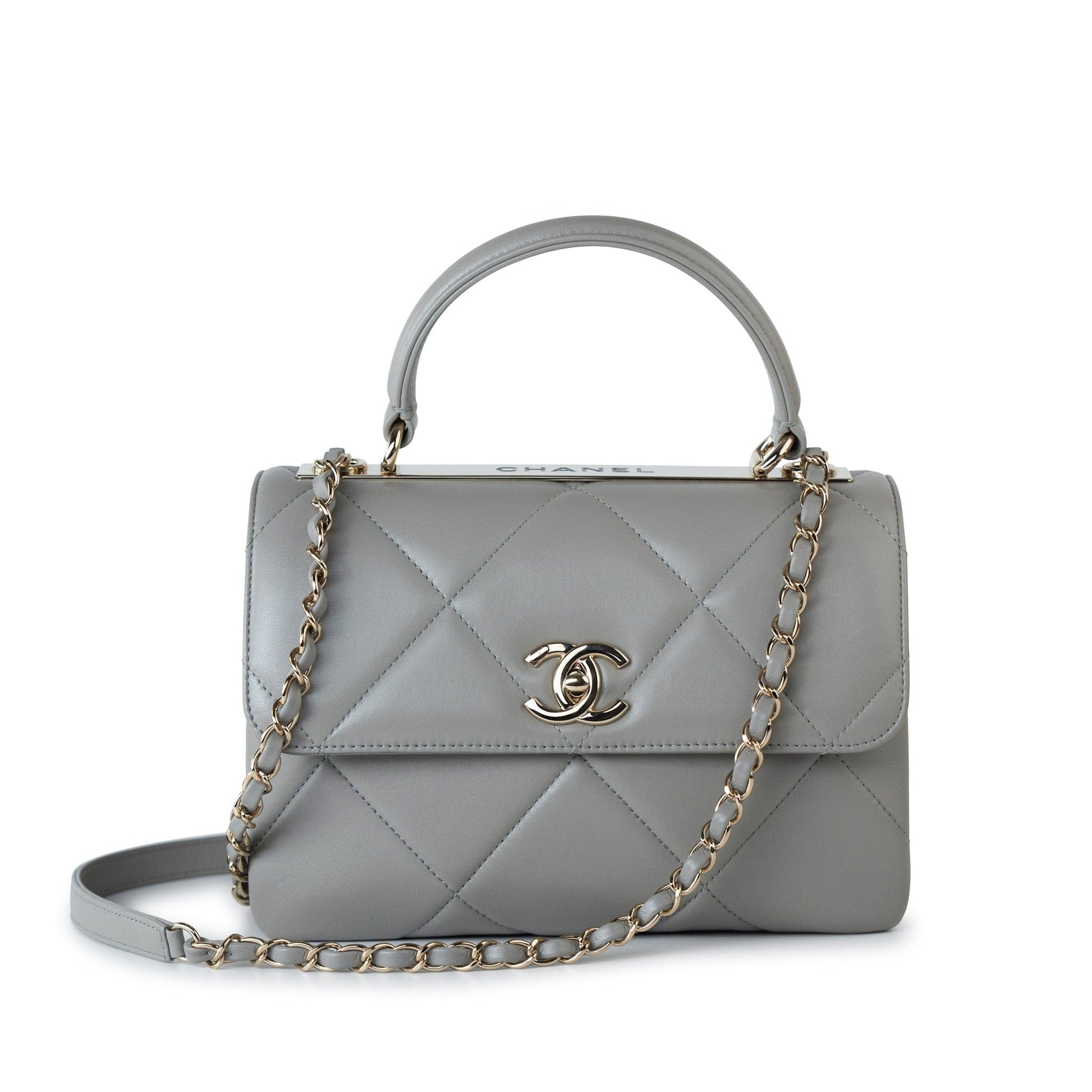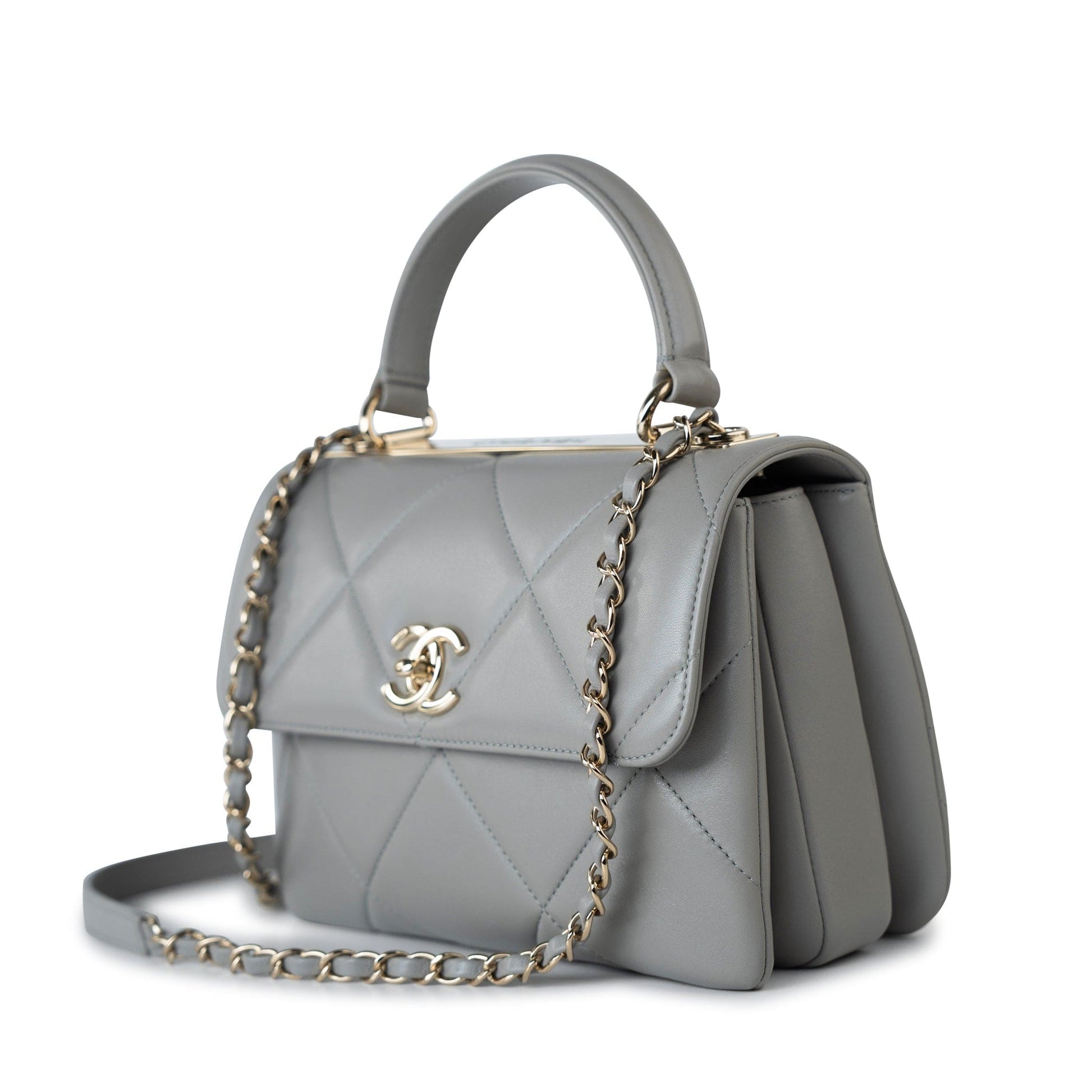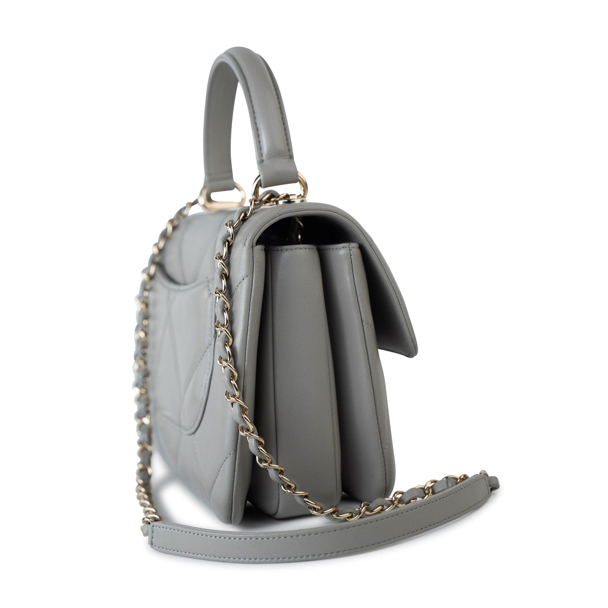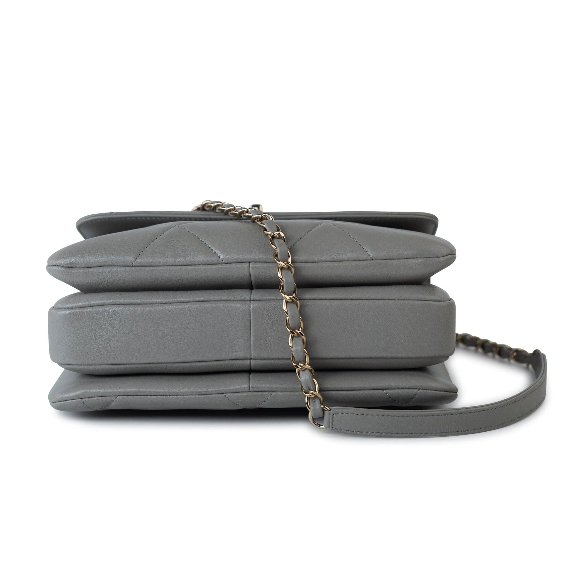 19B Grey Lambskin Quilted Trendy CC Light Gold Hardware