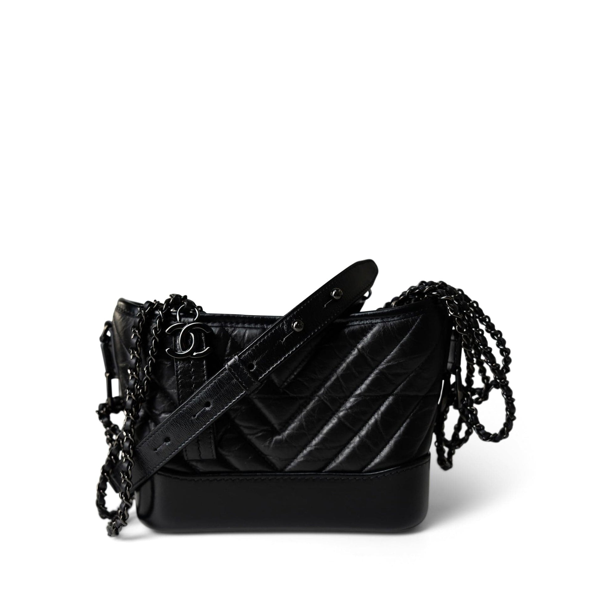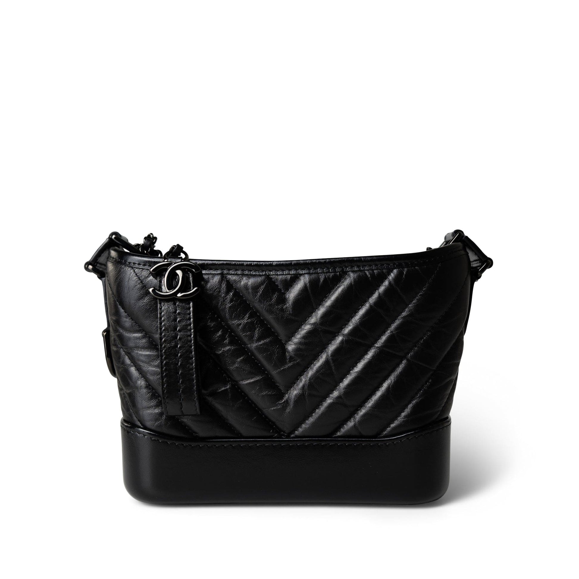 19B So Black Aged Calfskin Chevron Small Hobo Gabrielle Bag