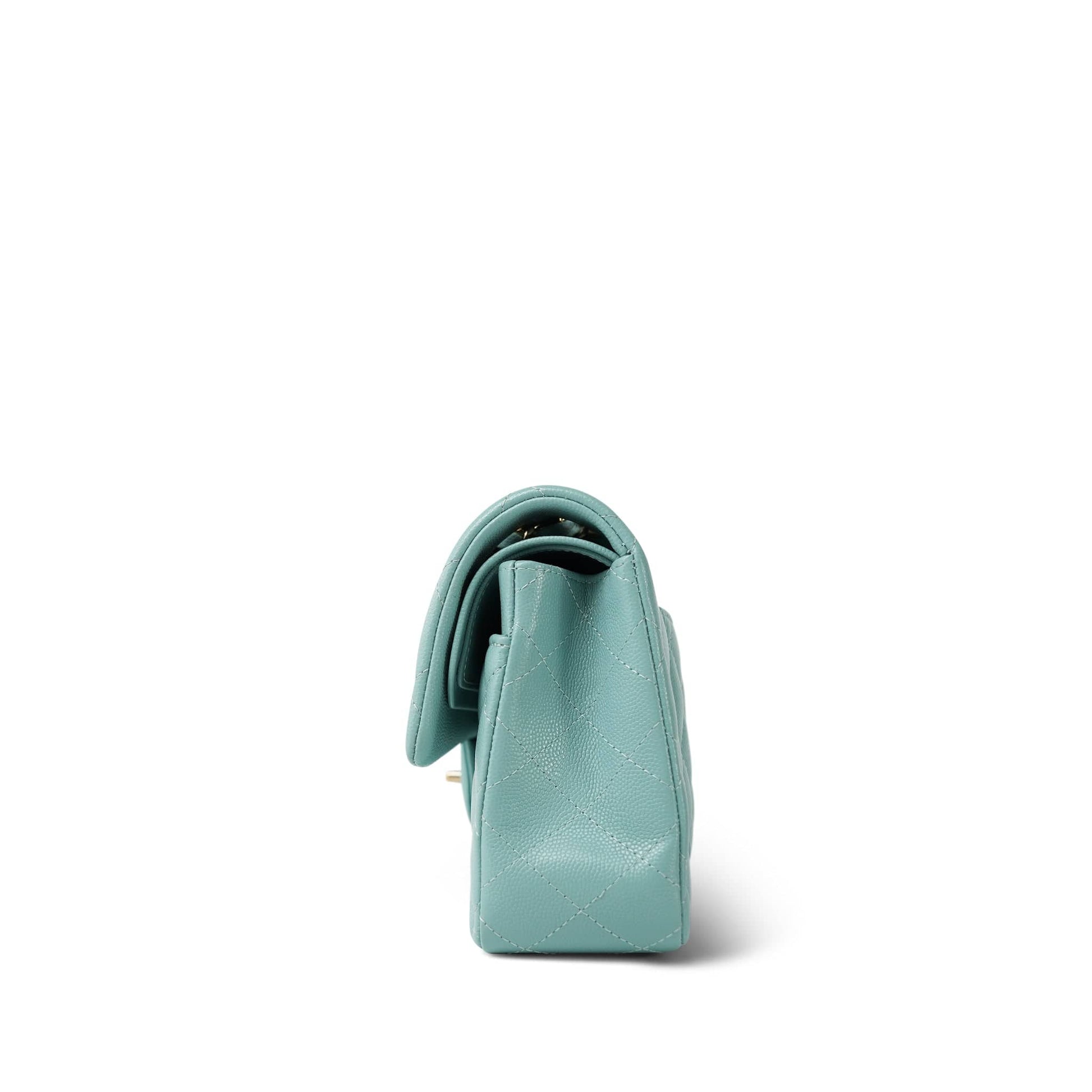 20C Tiffany Blue Caviar Quilted Classic Flap Small Light Gold Hardware