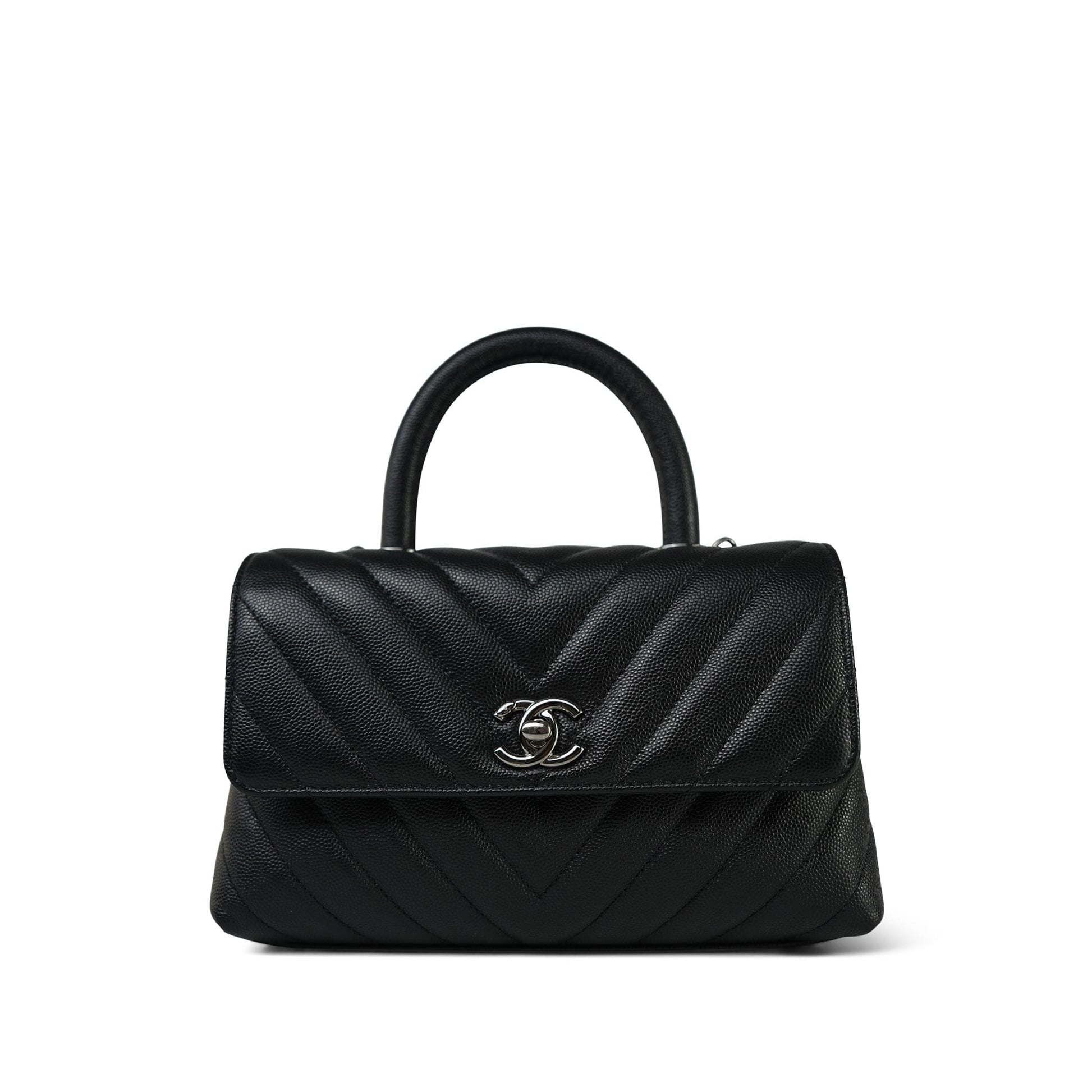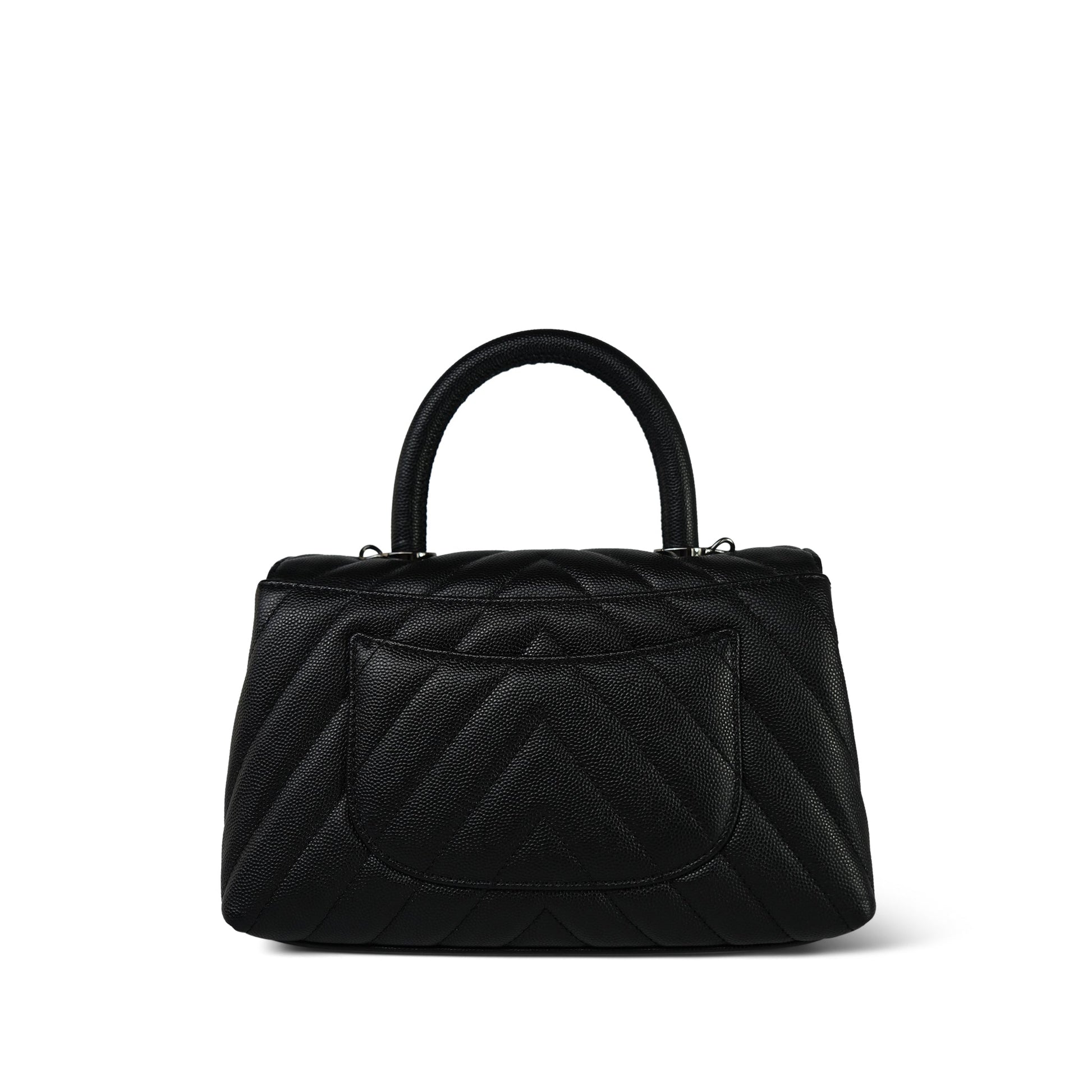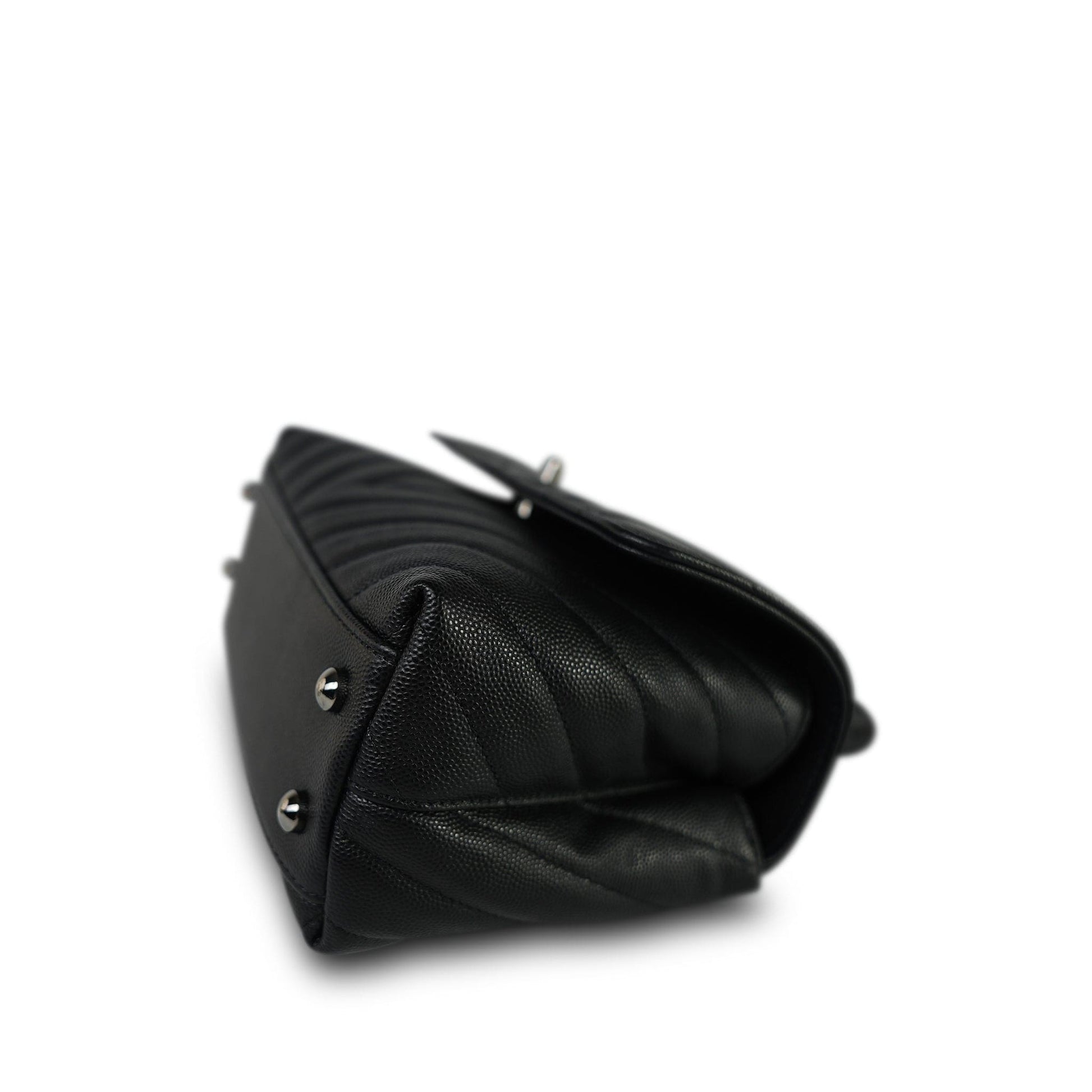 19K Black Caviar Chevron Quilted Small Coco Handle Ruthenium Hardware