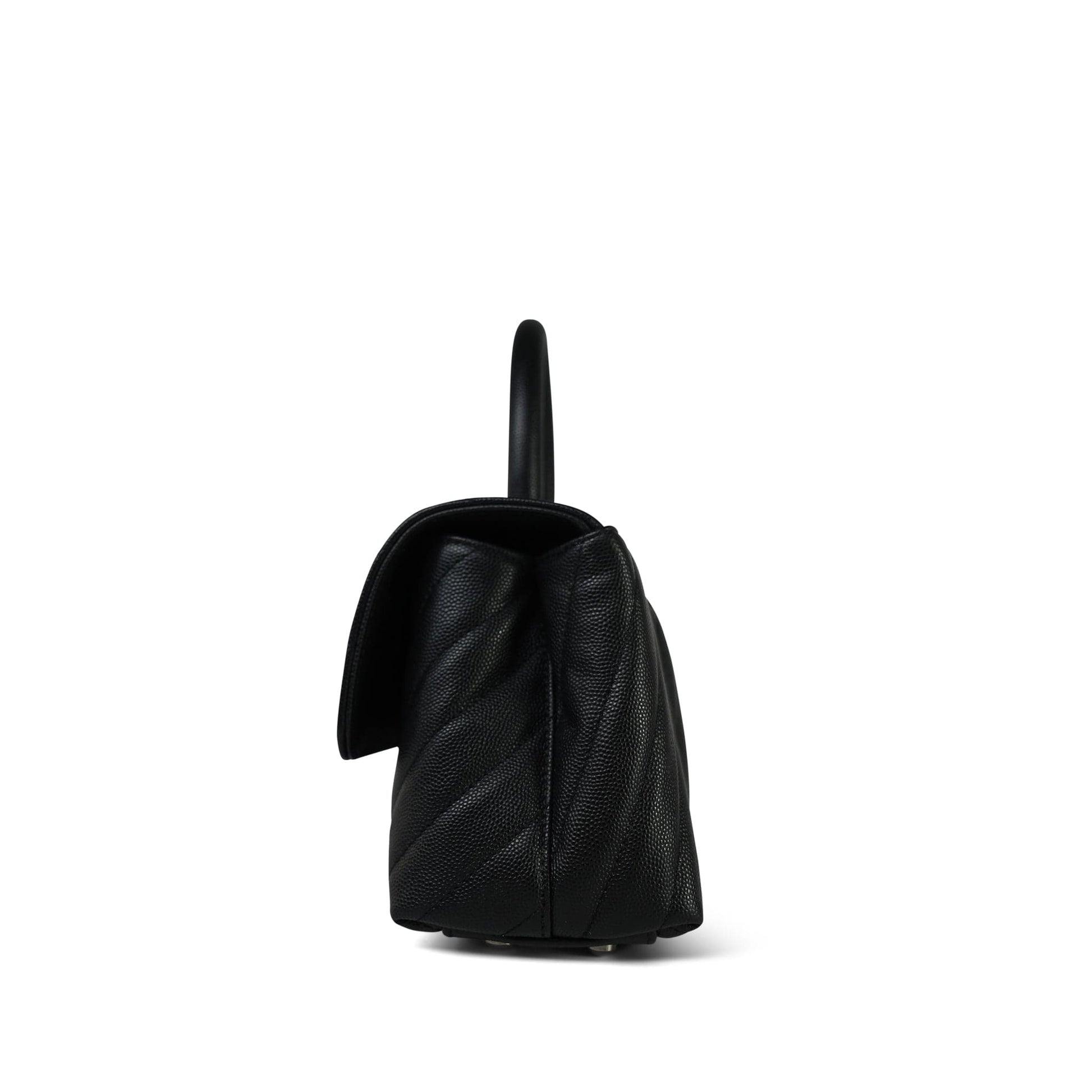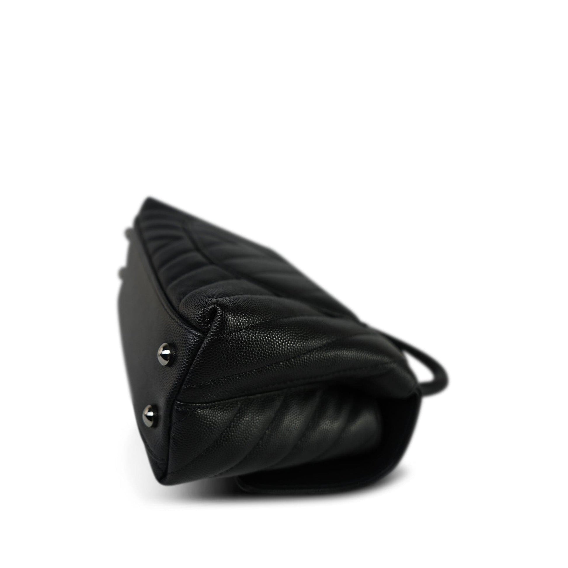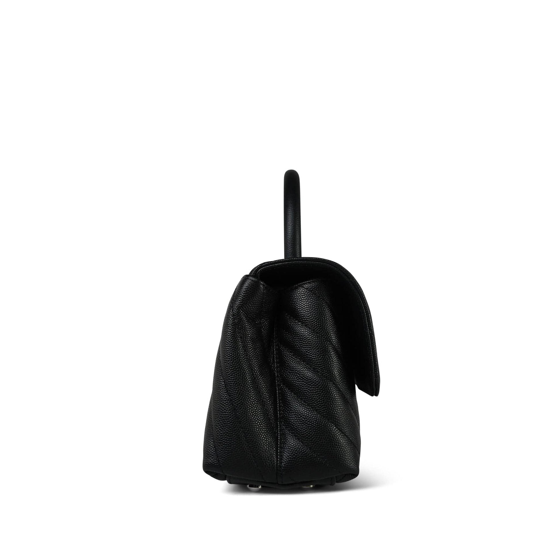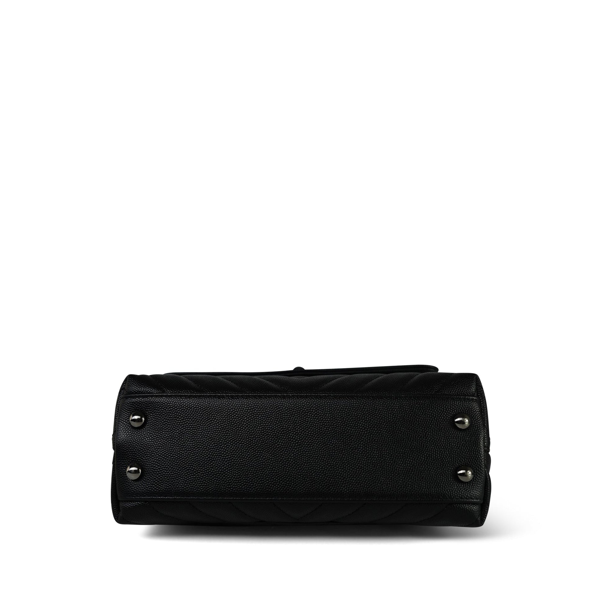 19K Black Caviar Chevron Quilted Small Coco Handle Ruthenium Hardware