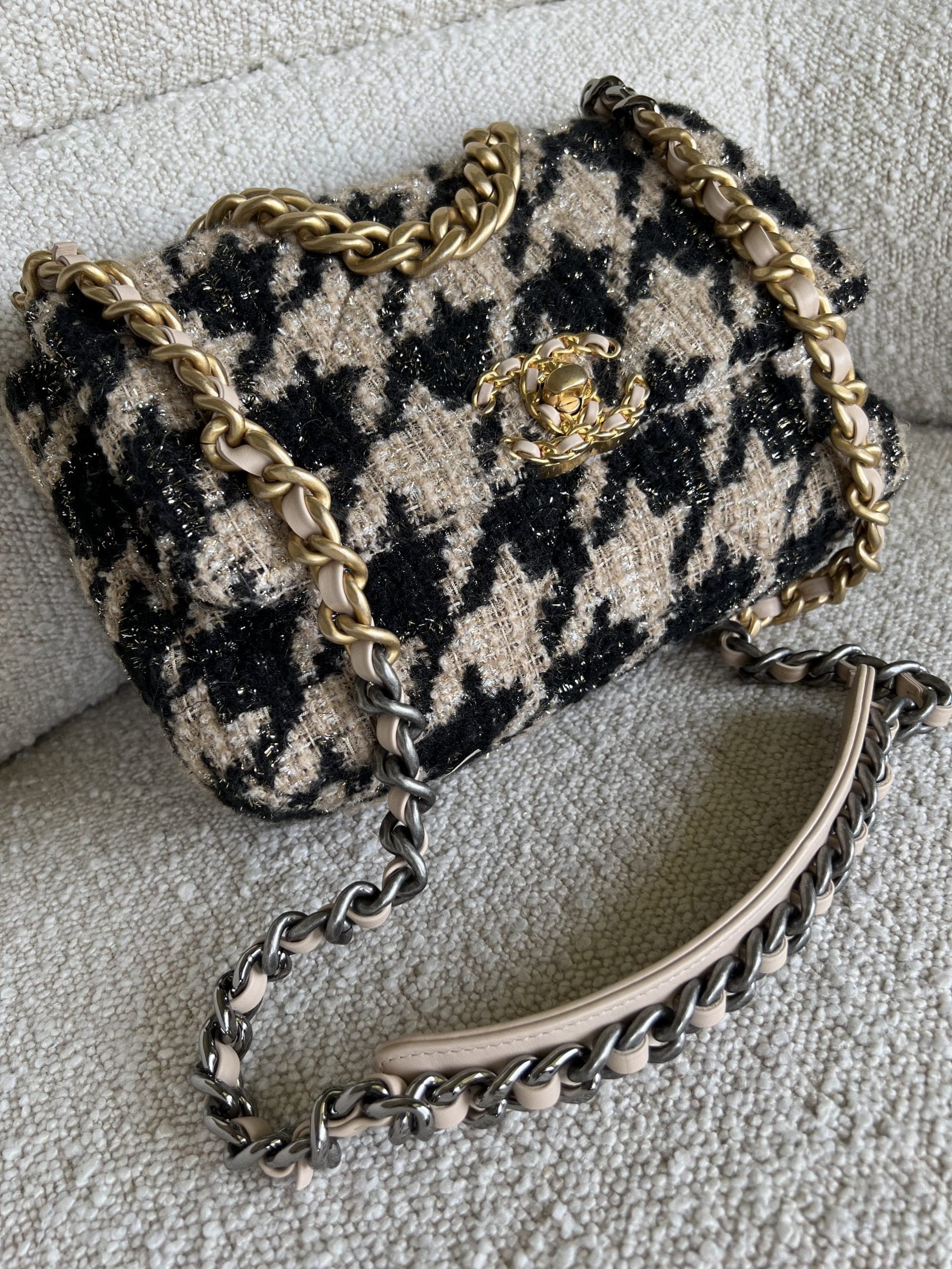 19K Houndstooth 19 Flap Beige/Black Small MHW