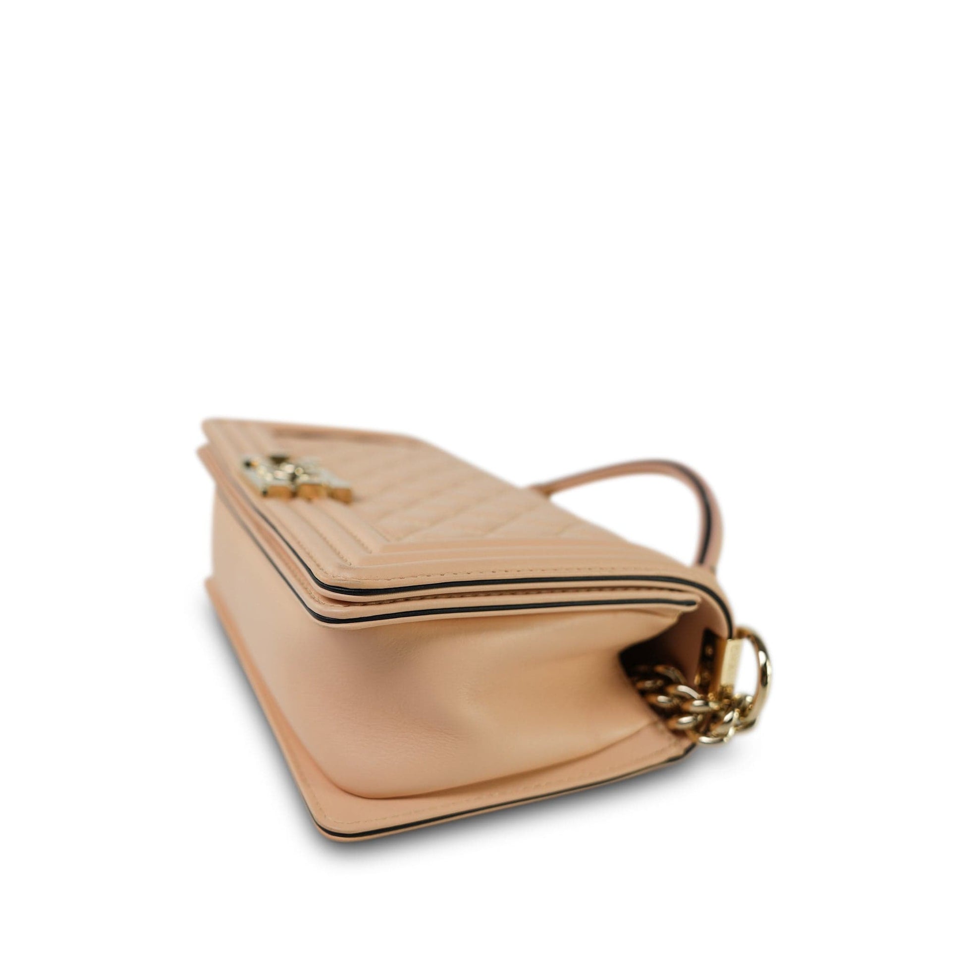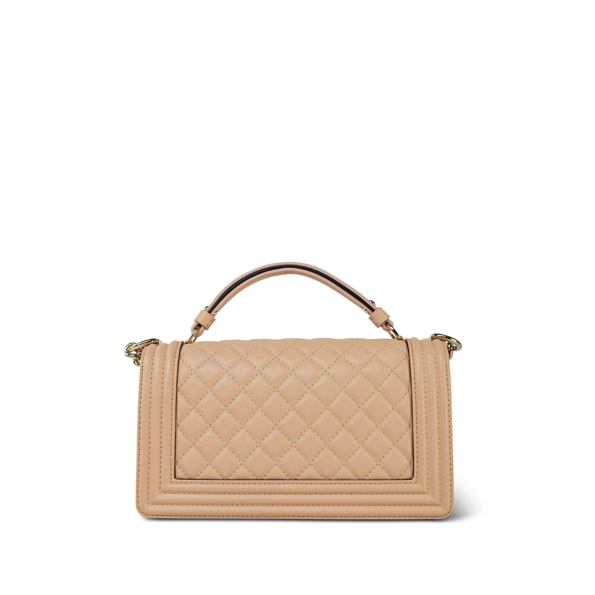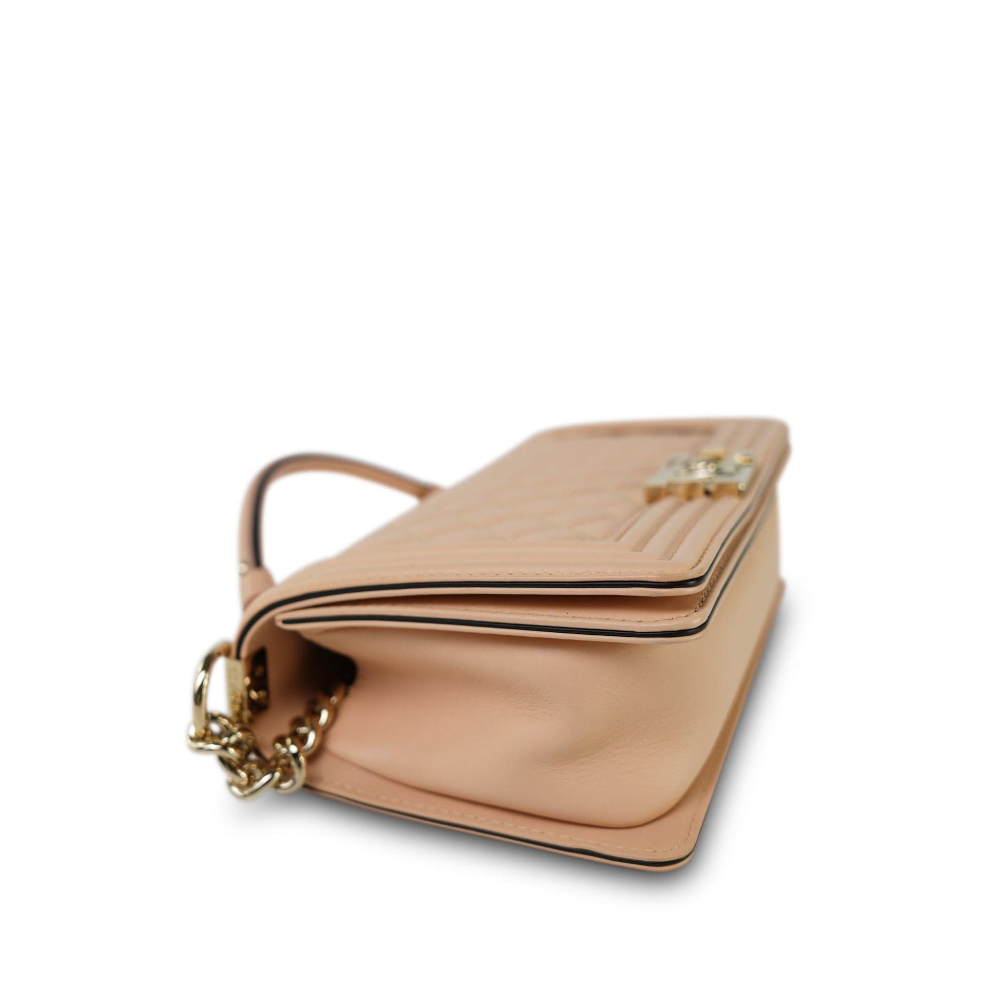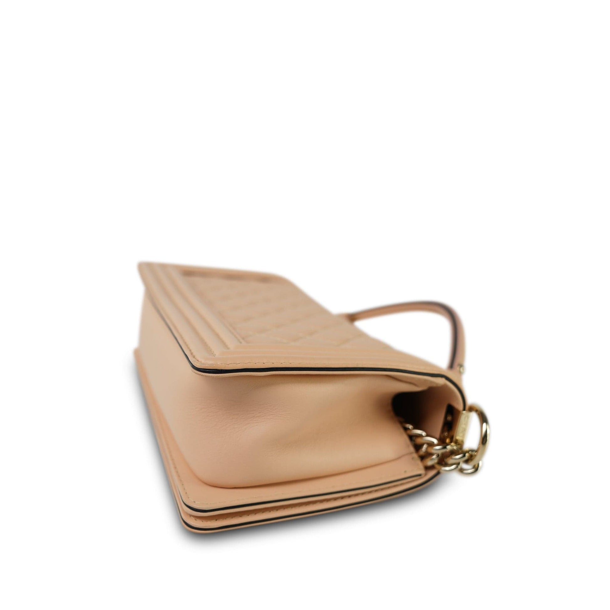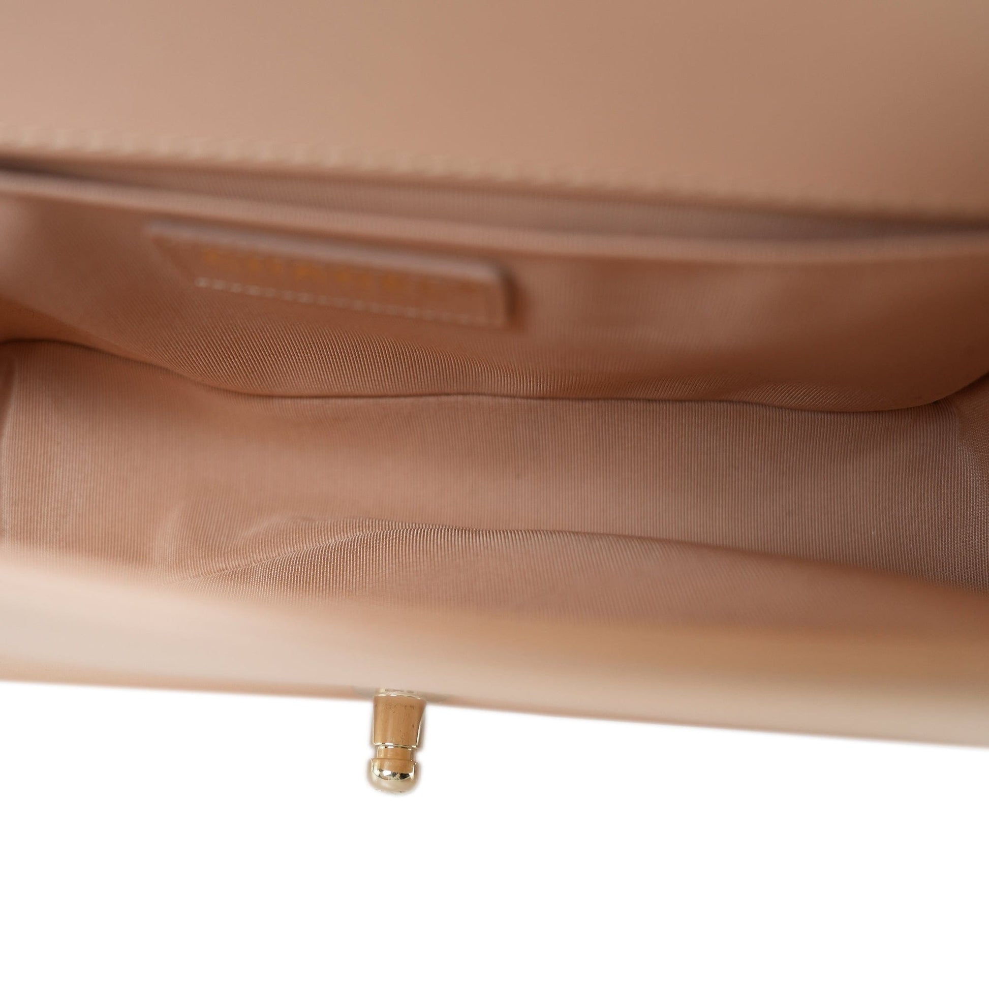 19S Beige Calfskin Quilted Top Handle Boy Bag Old Medium Light Gold Hardware