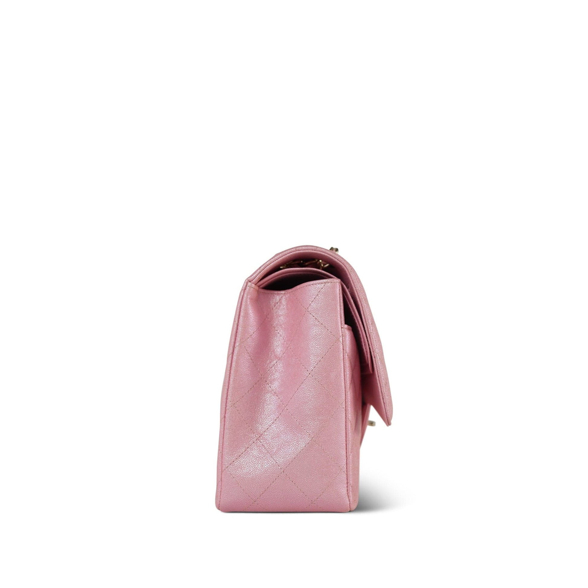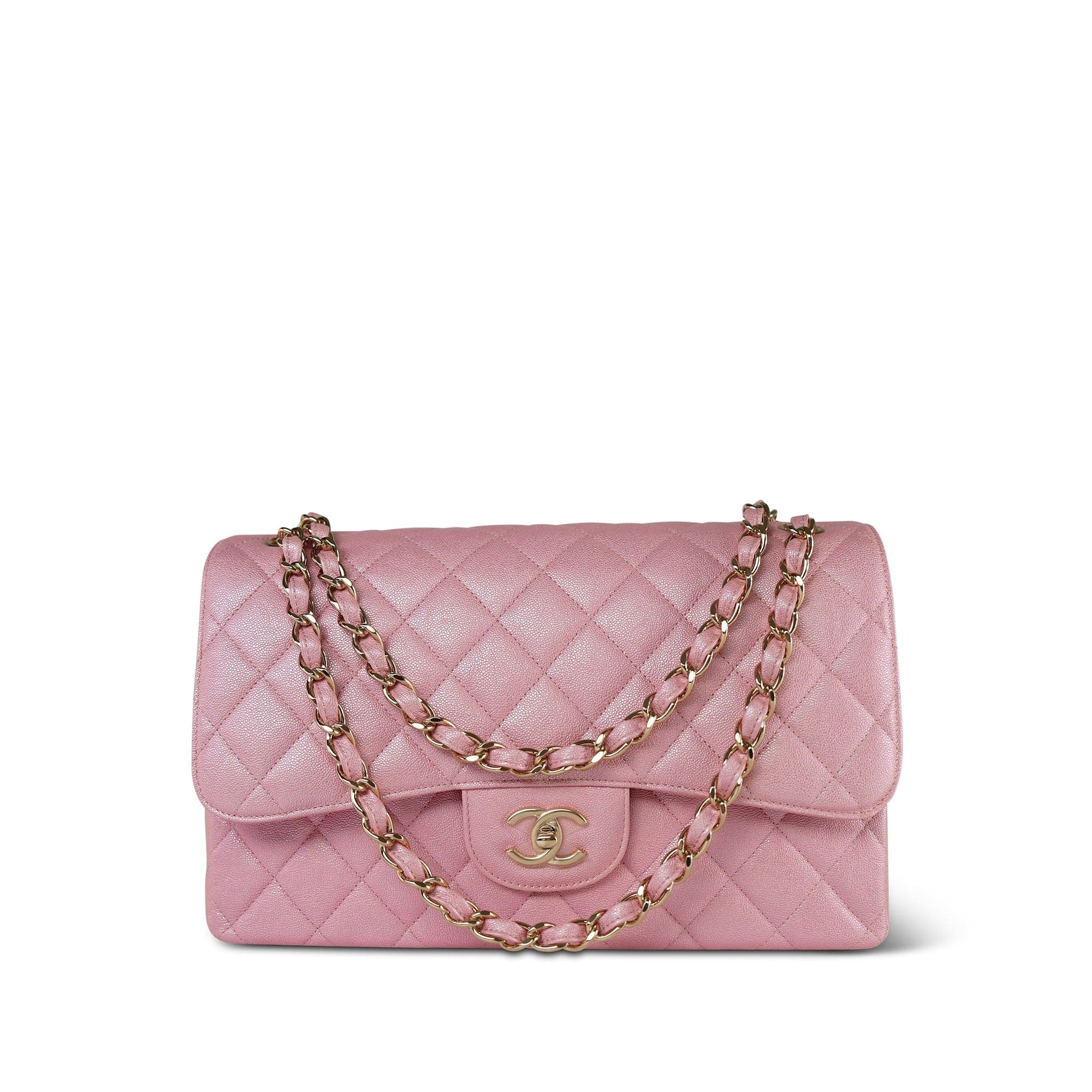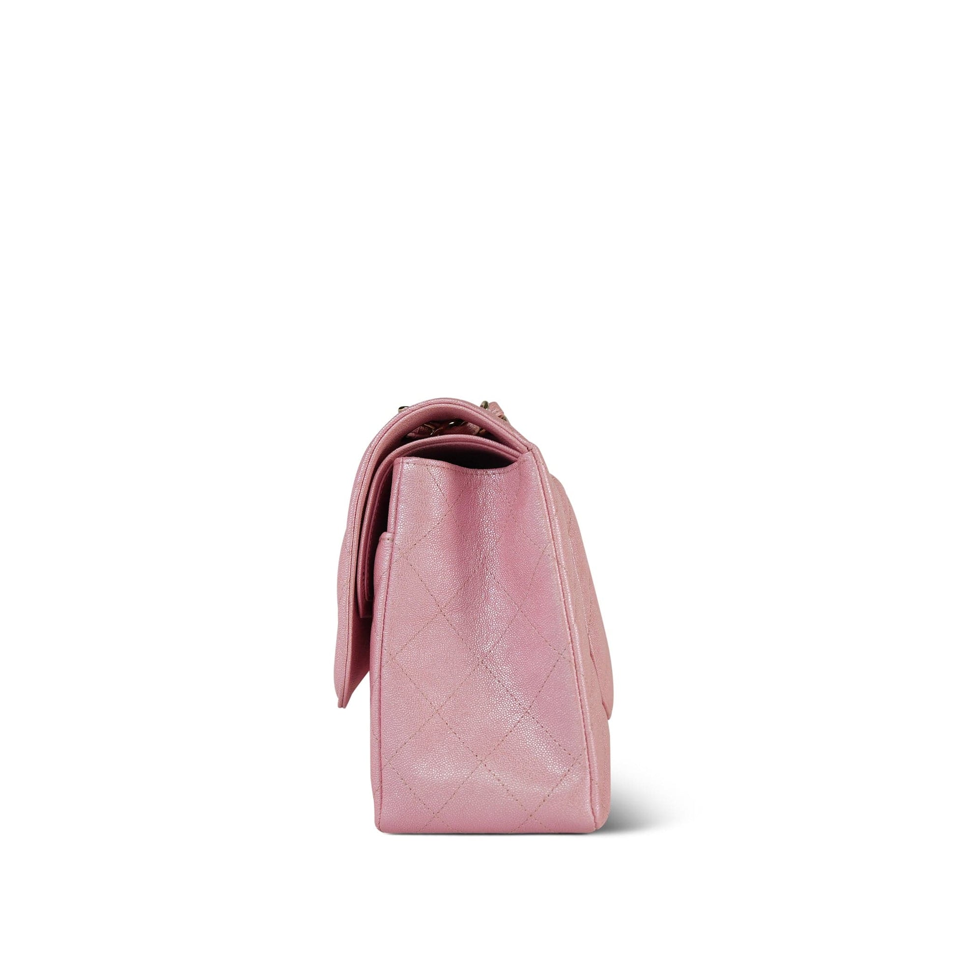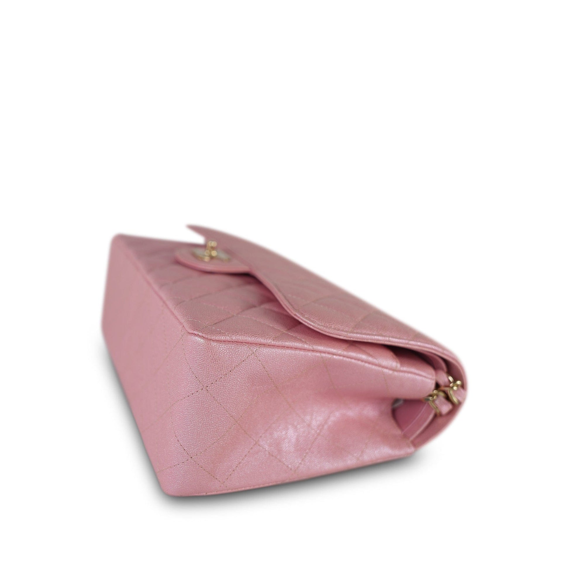 19S Iridescent Pink Caviar Quilted Jumbo Classic Flap Light Gold Hardware