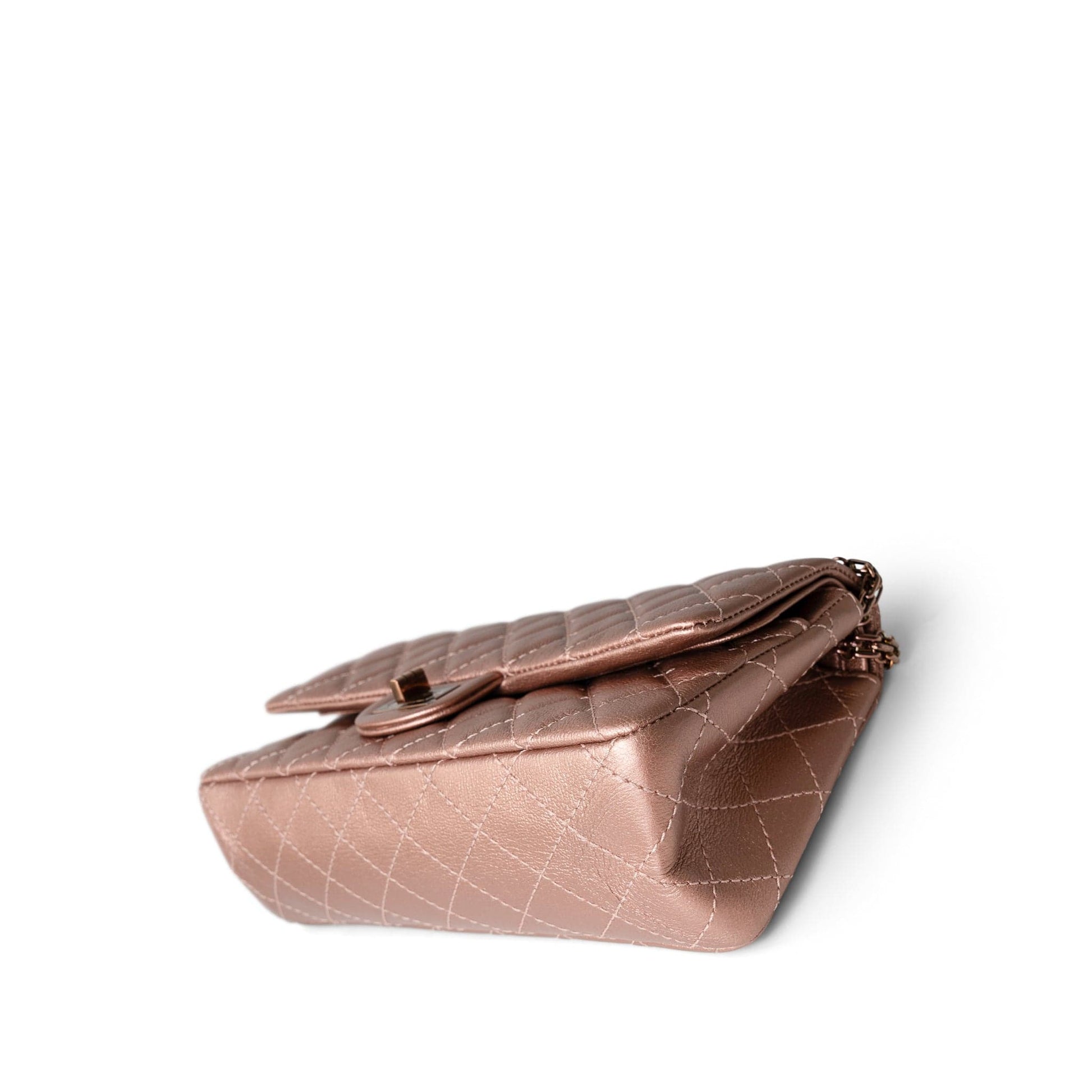2.55 Rose Gold Grained Calfskin Quilted Medium Double Flap