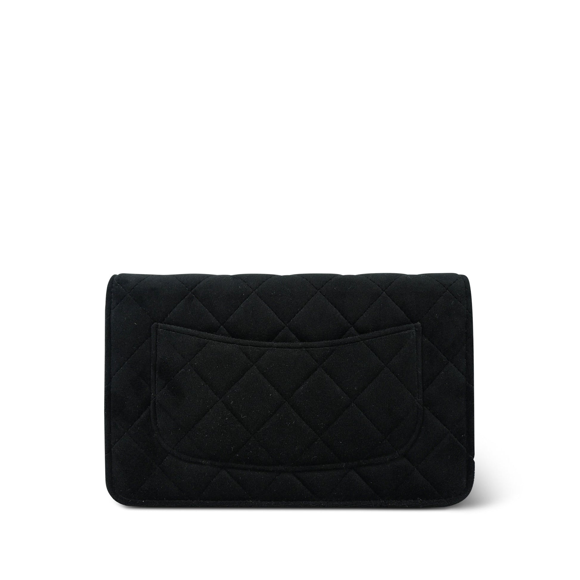 20A Black Velvet Quilted Crystal Pearl Crush Wallet On Chain WOC LGHW