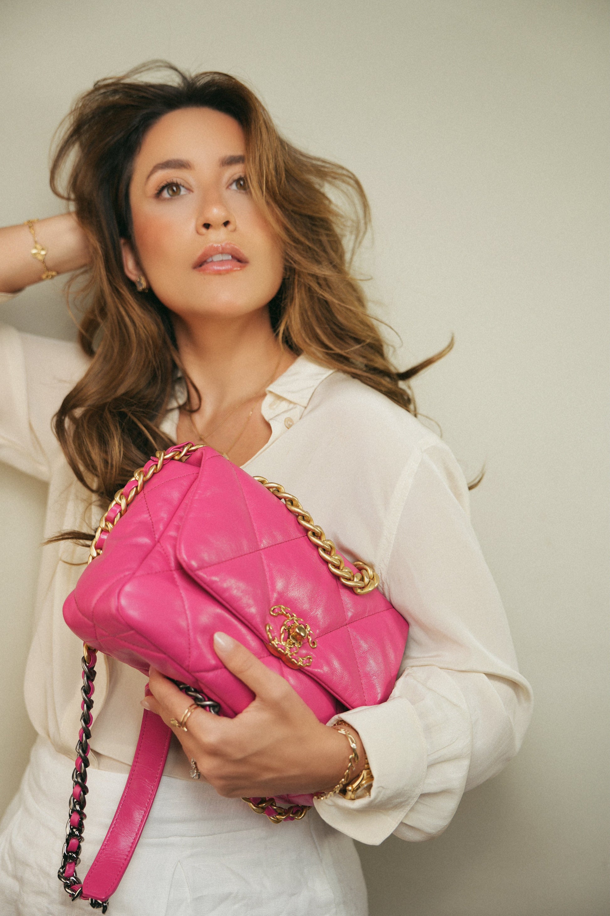 20A Pink Goatskin Quilted 19 Flap Small Mixed Hardware