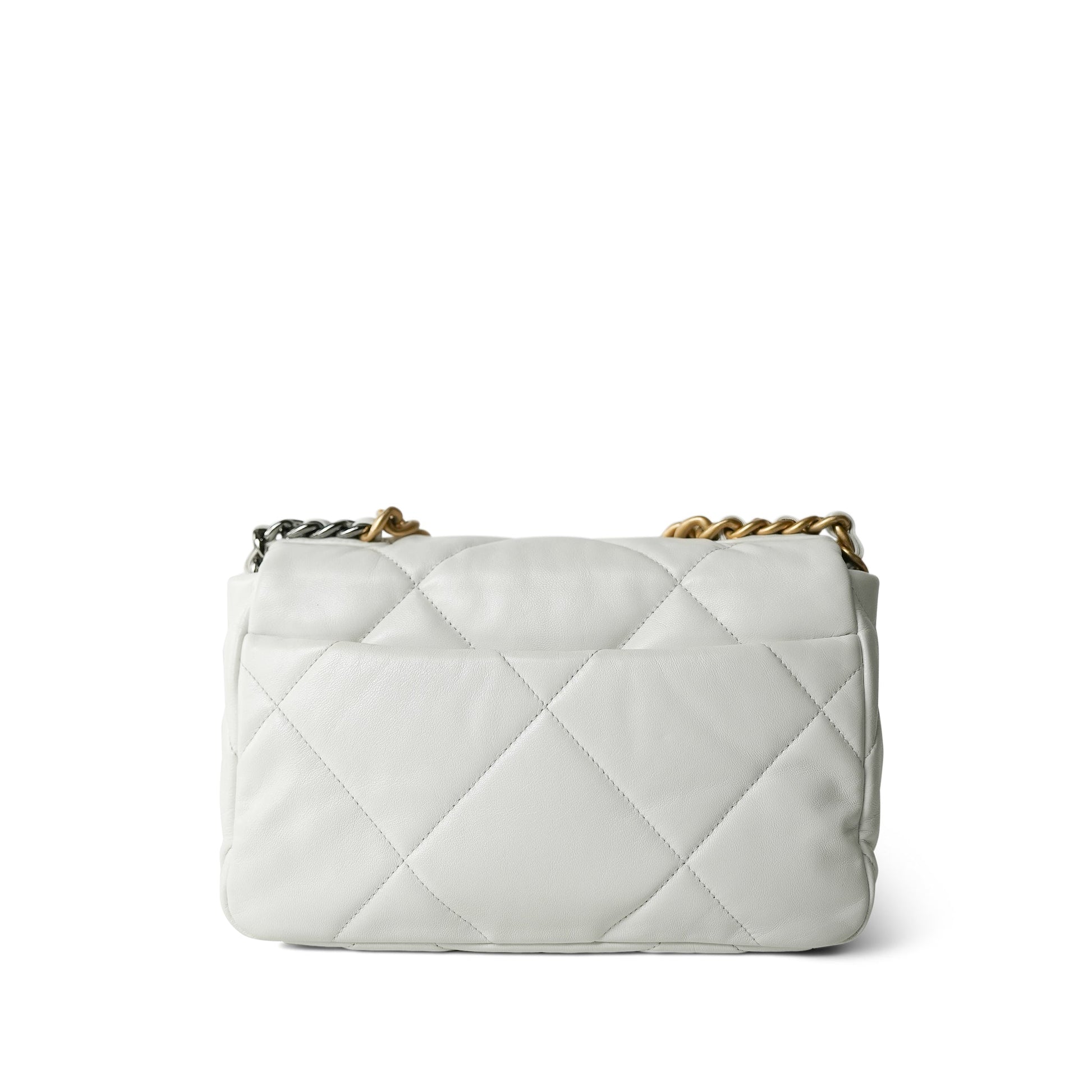 20A White Goatskin Quilted 19 Flap Small Mixed Hardware