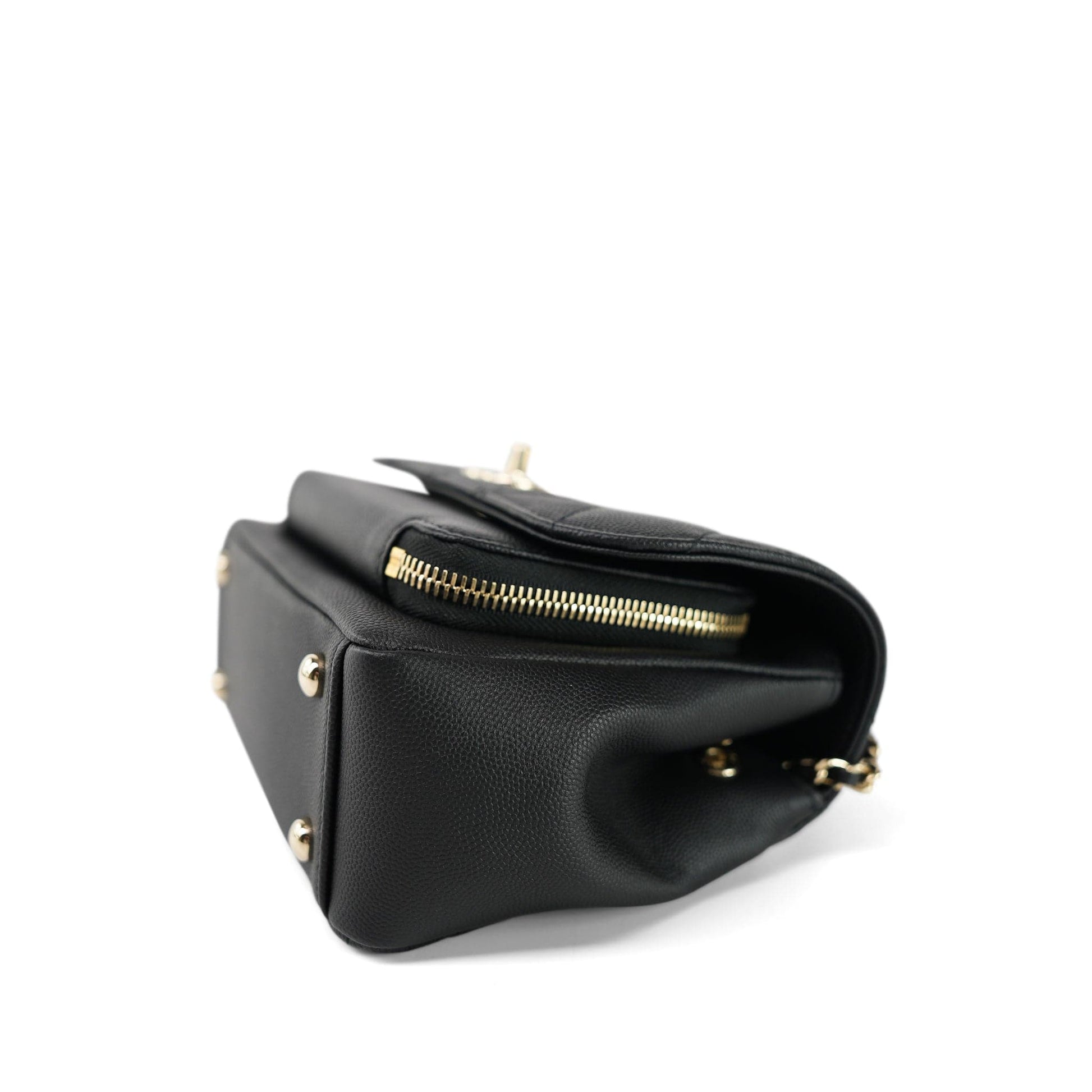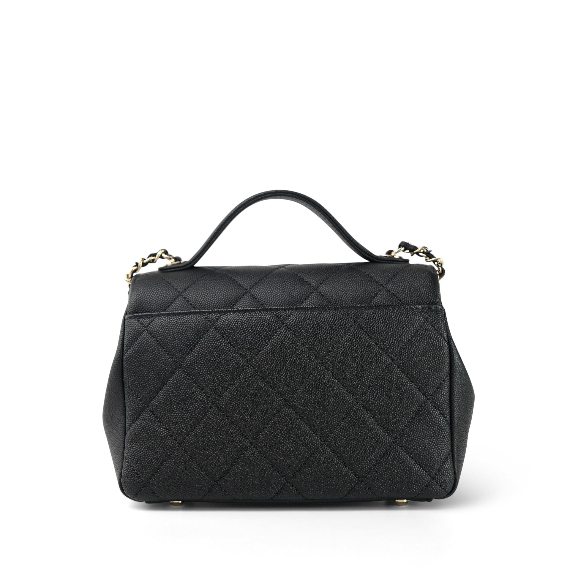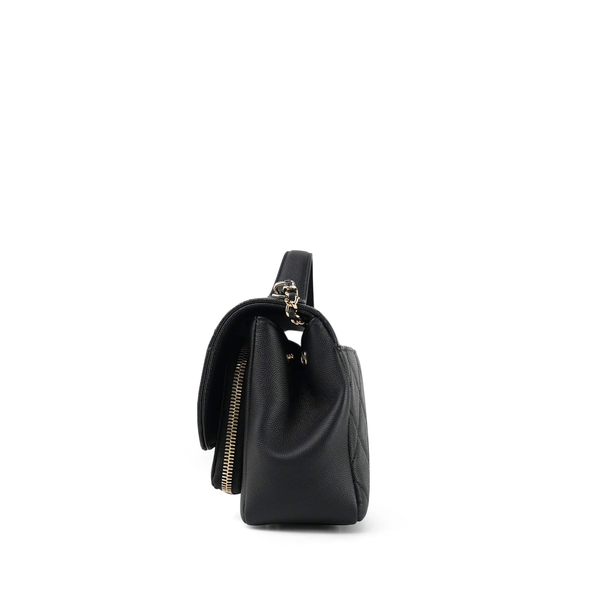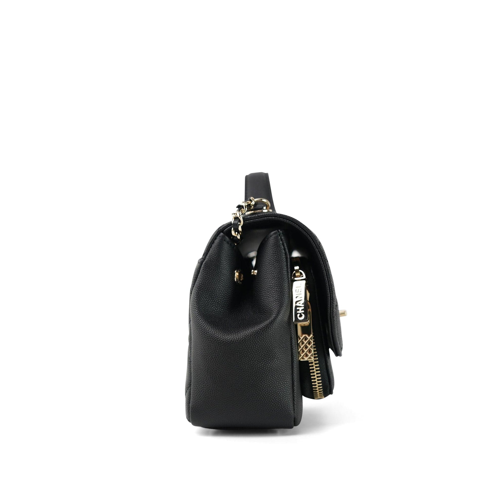 20B Black Caviar Quilted Business Affinity Flap Small Light Gold Hardware