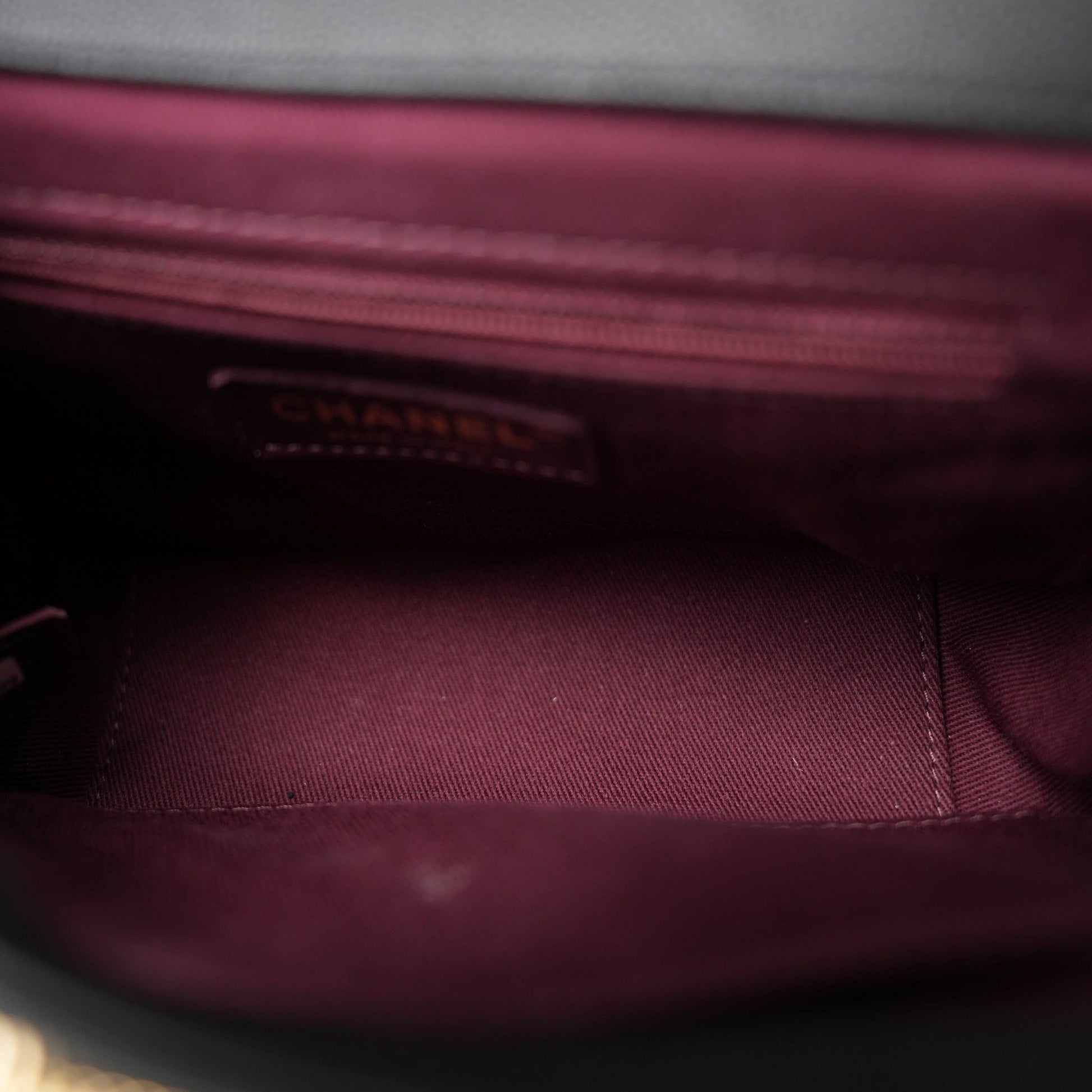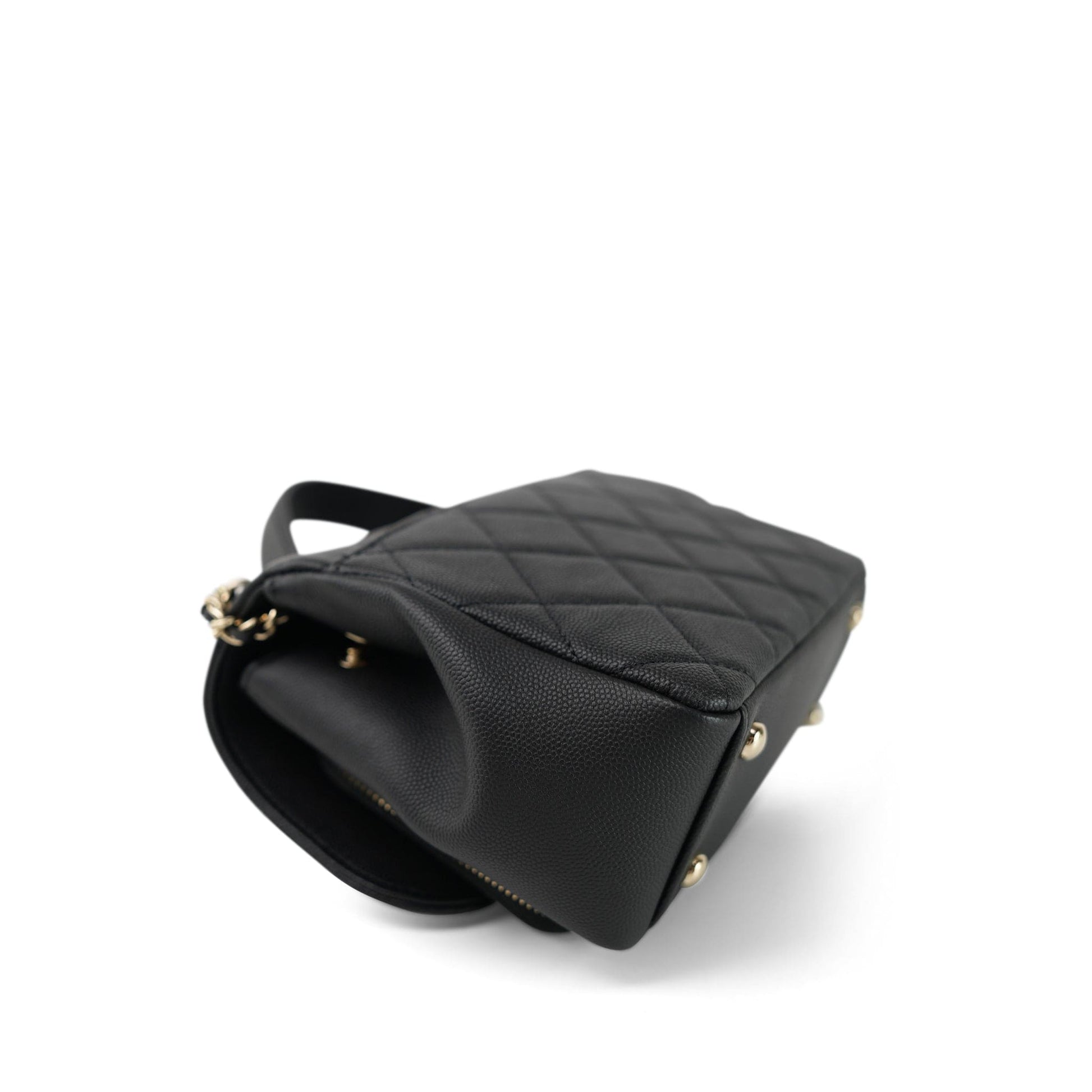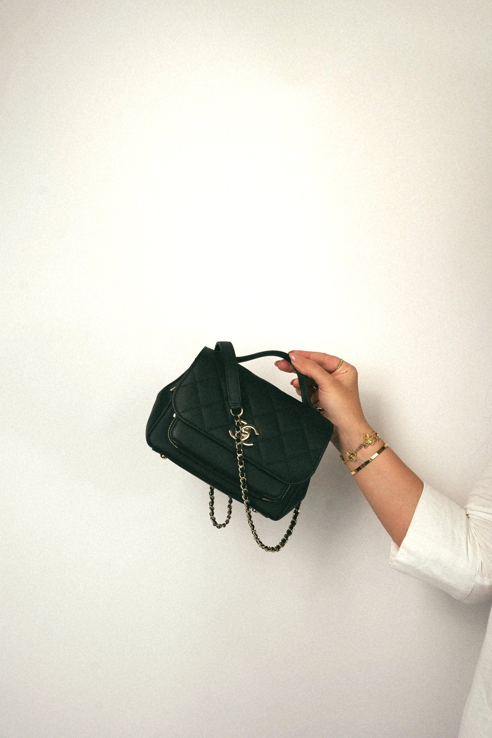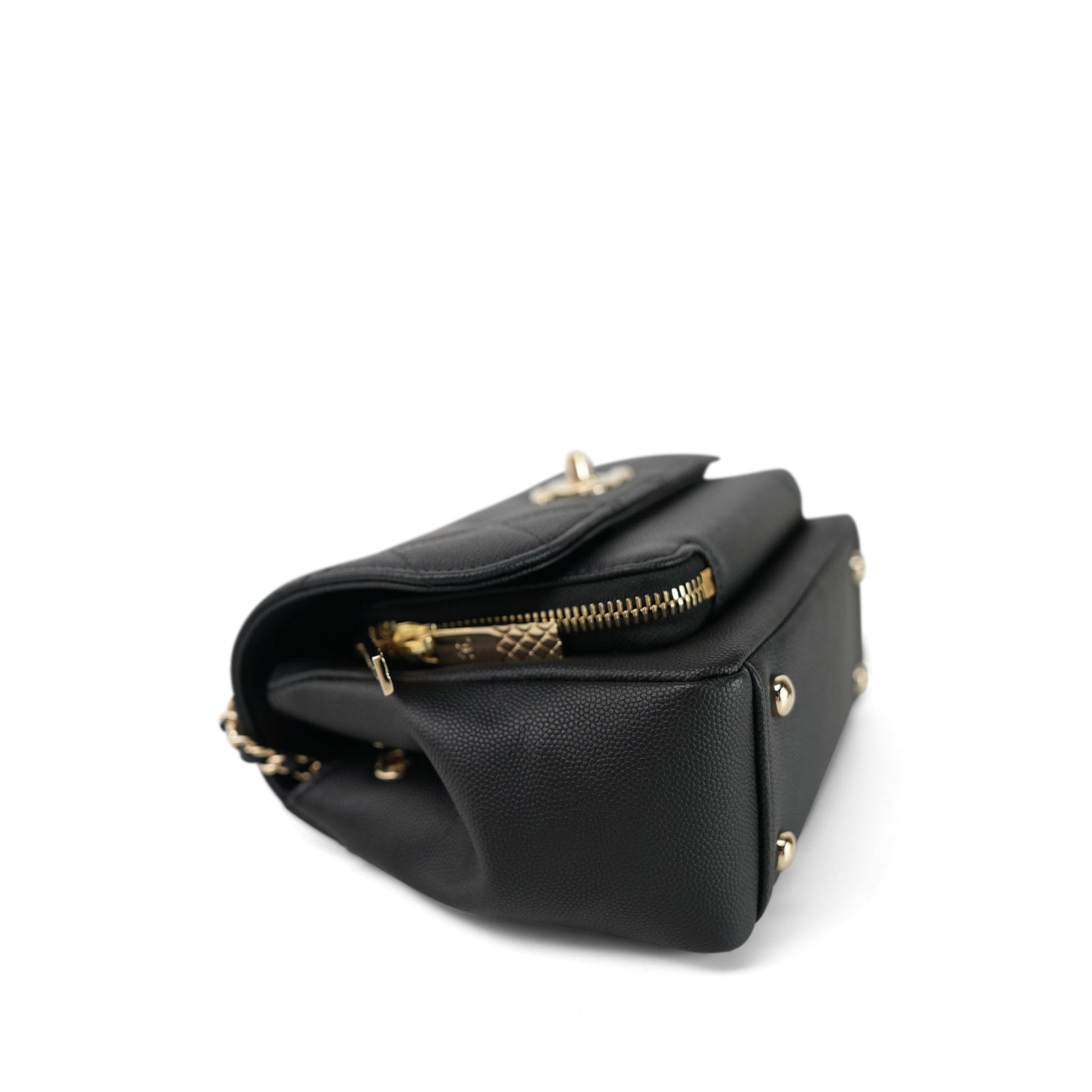 20B Black Caviar Quilted Business Affinity Flap Small Light Gold Hardware