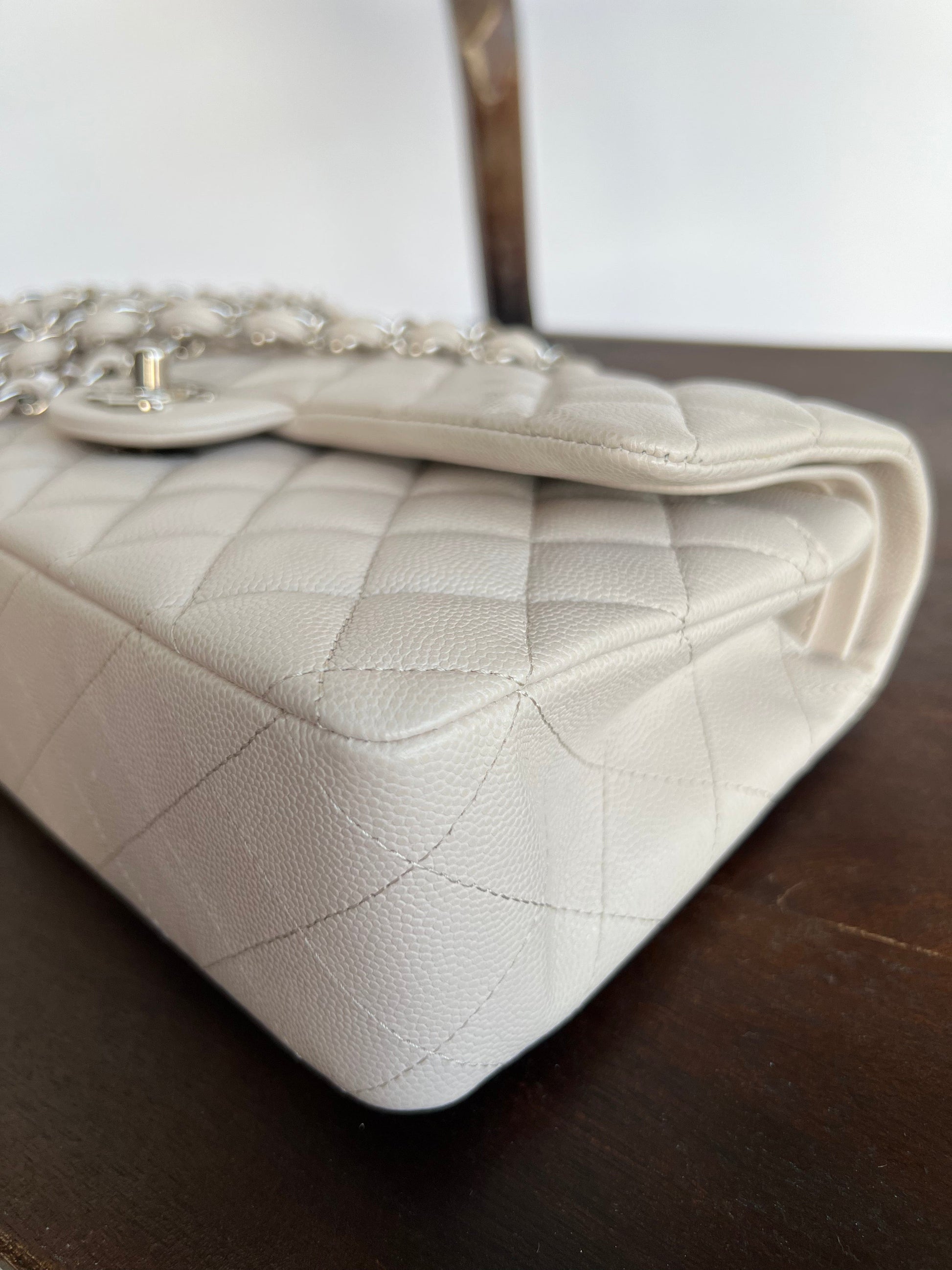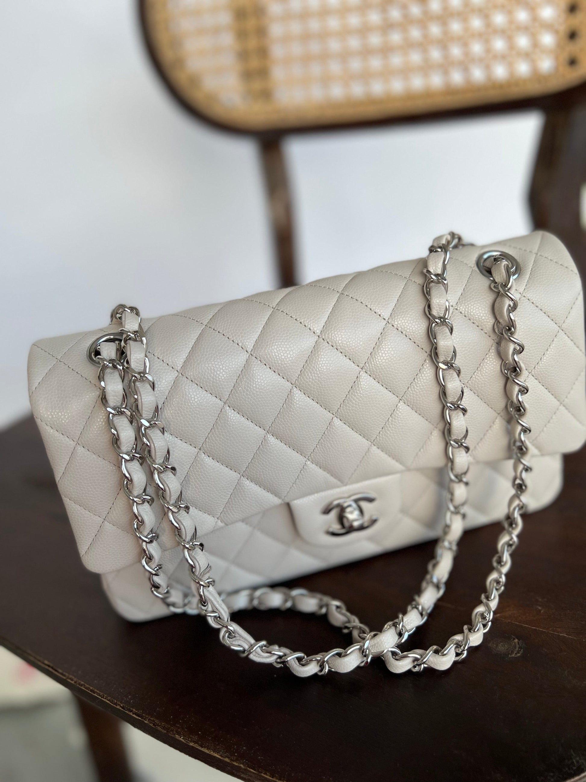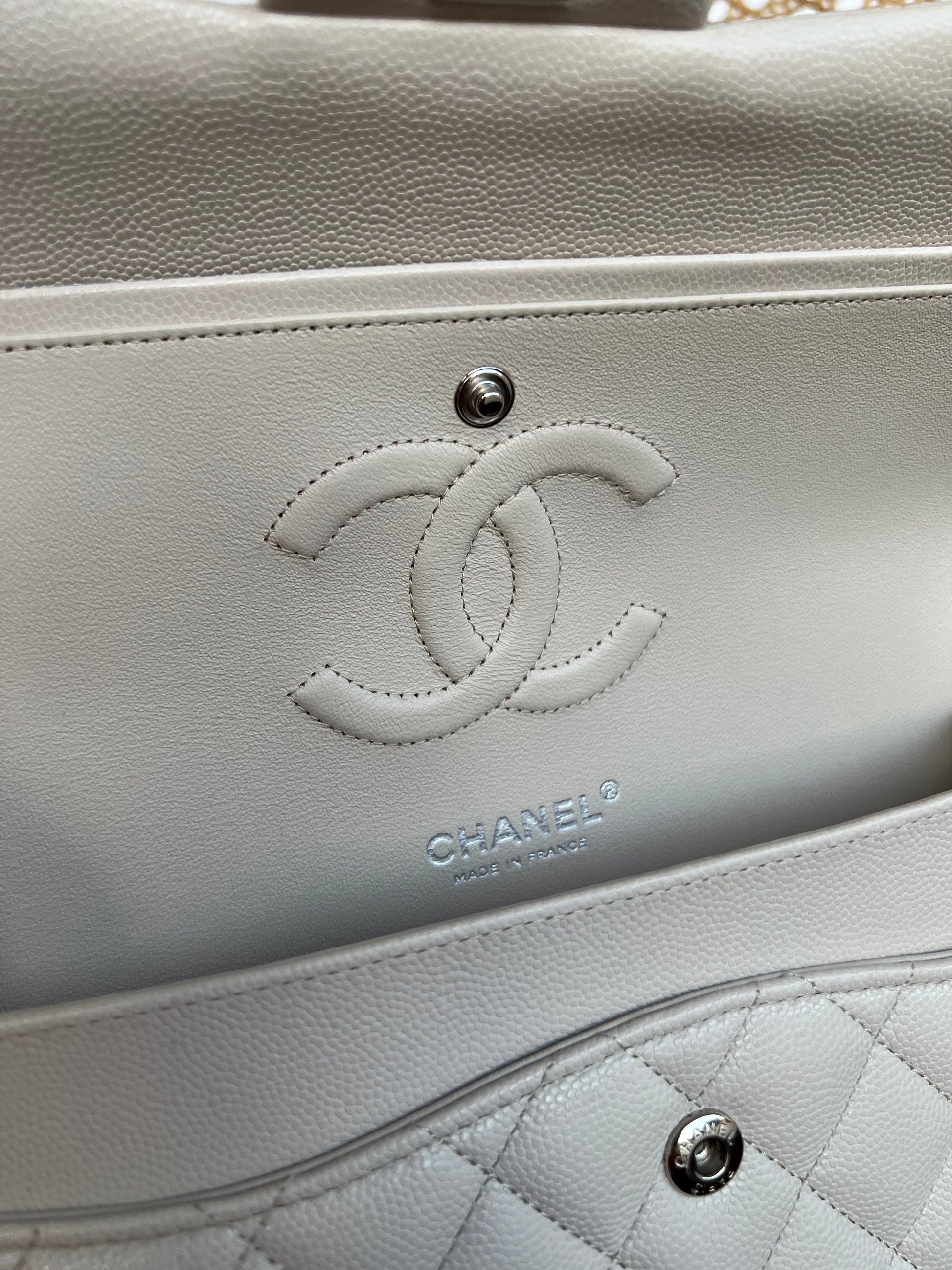 20B Ivory Caviar Quilted Classic Flap Medium Silver Hardware