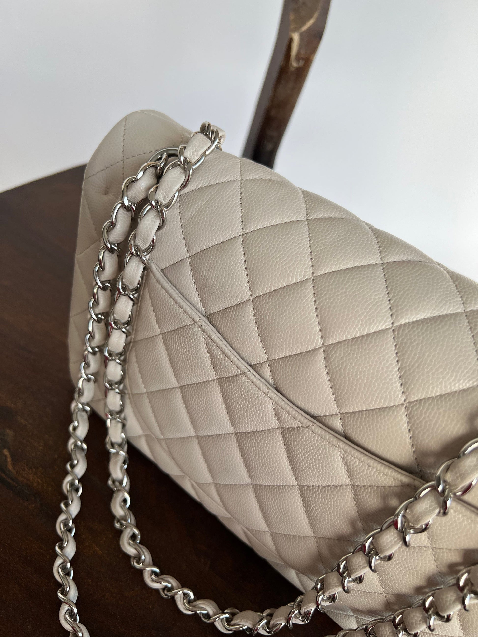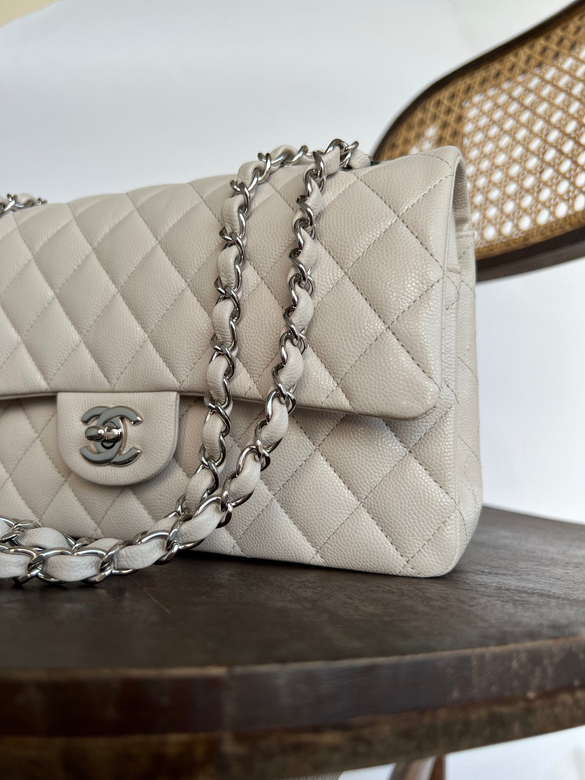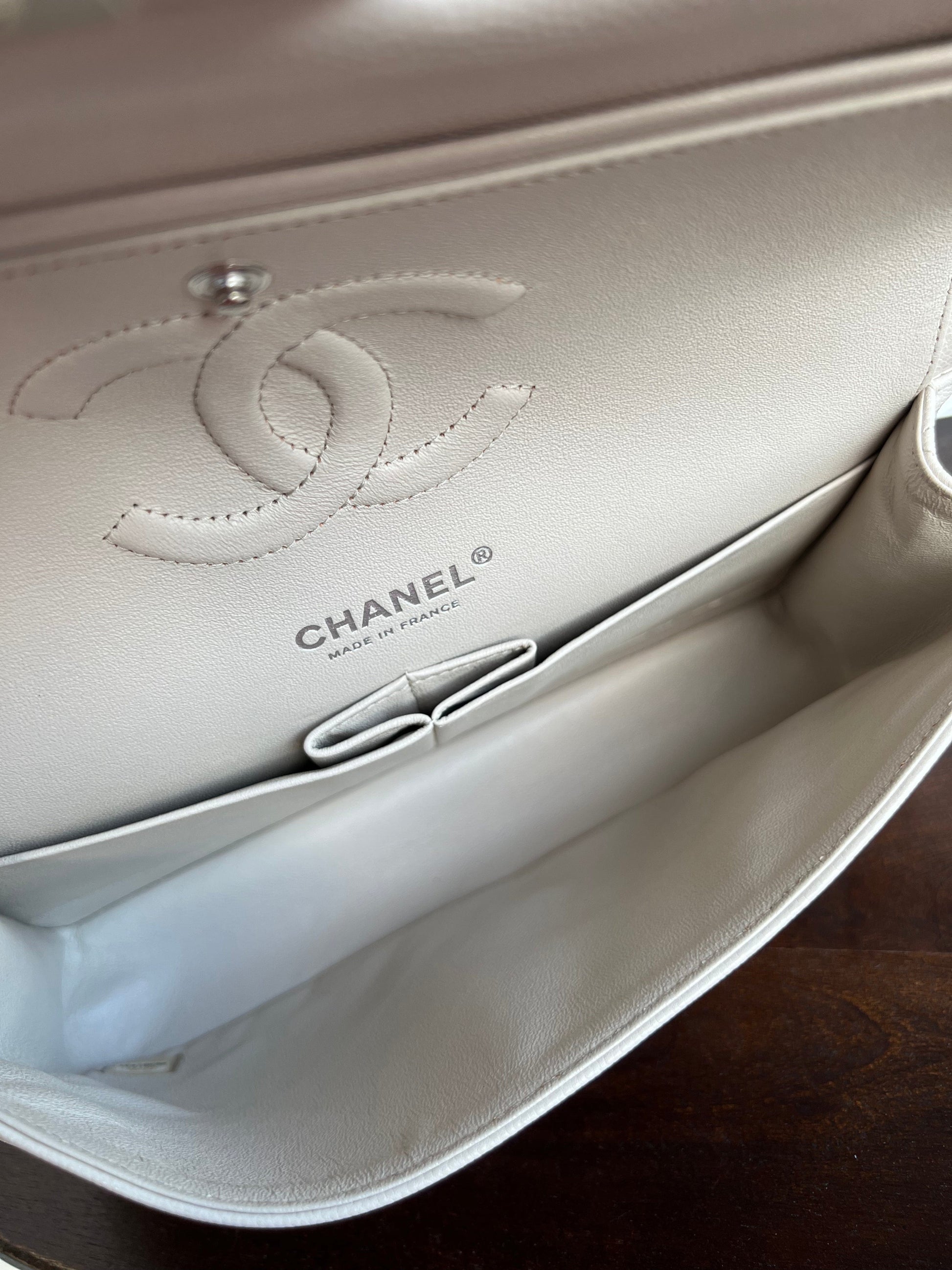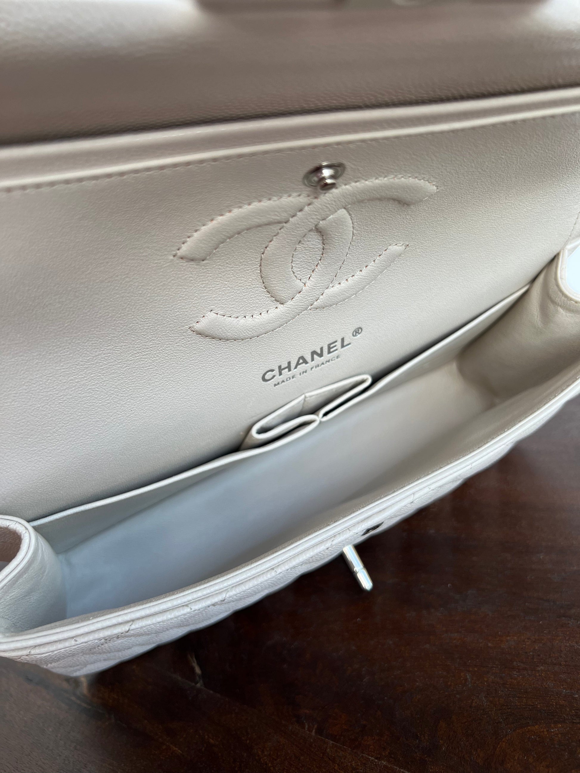 20B Ivory Caviar Quilted Classic Flap Medium Silver Hardware