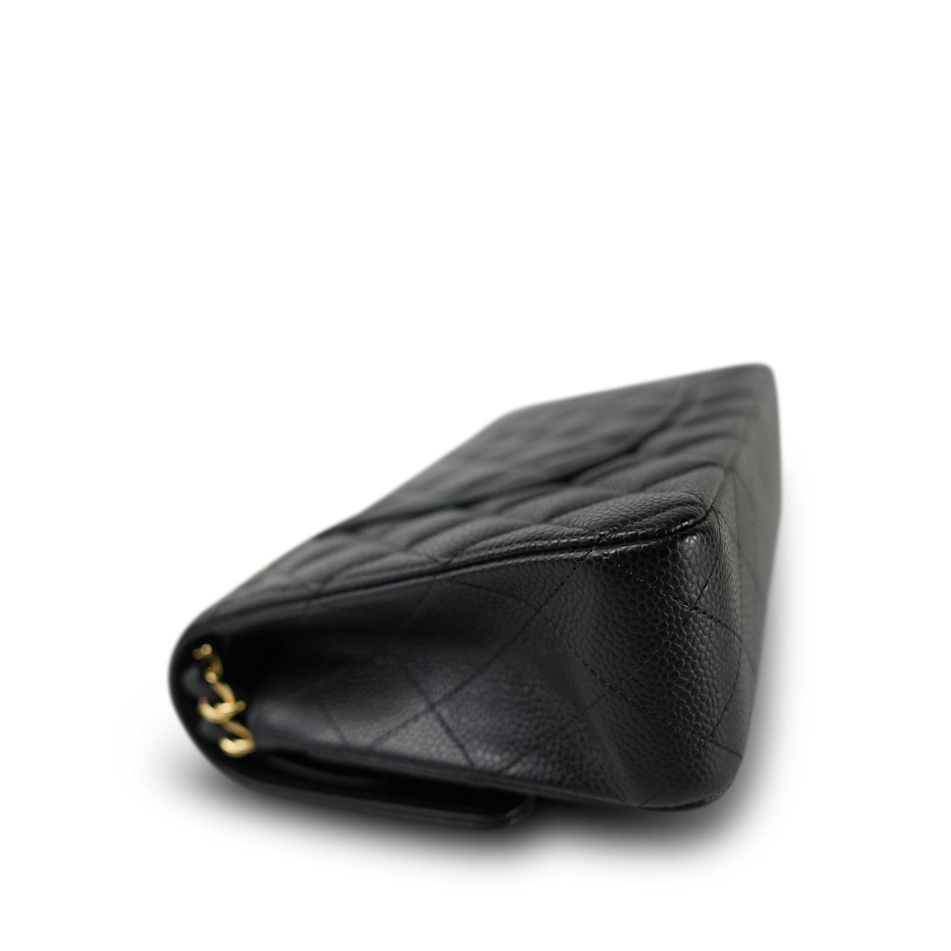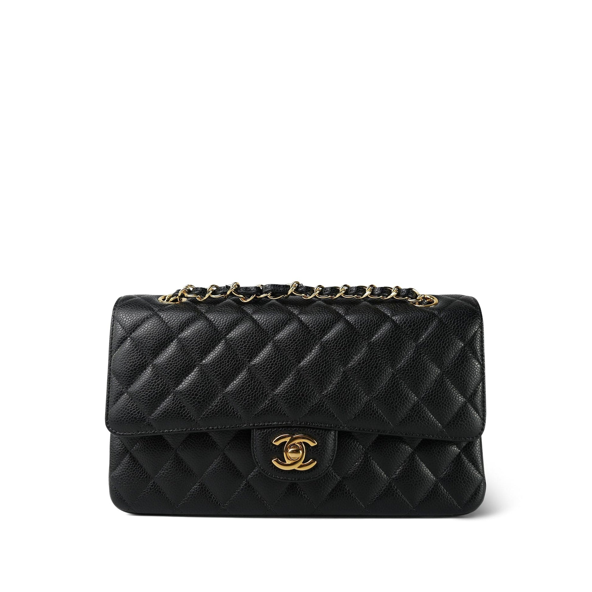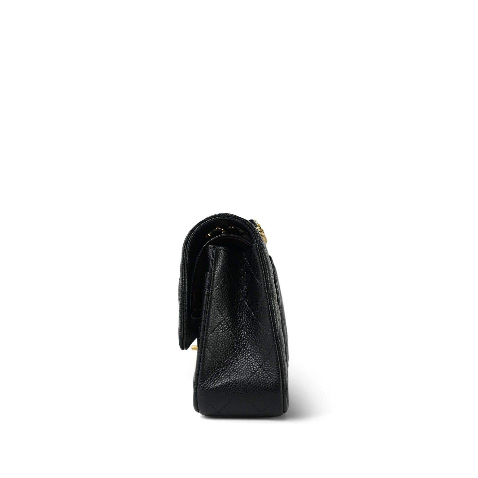20C Black Caviar Quilted Classic Flap Medium Gold Hardware