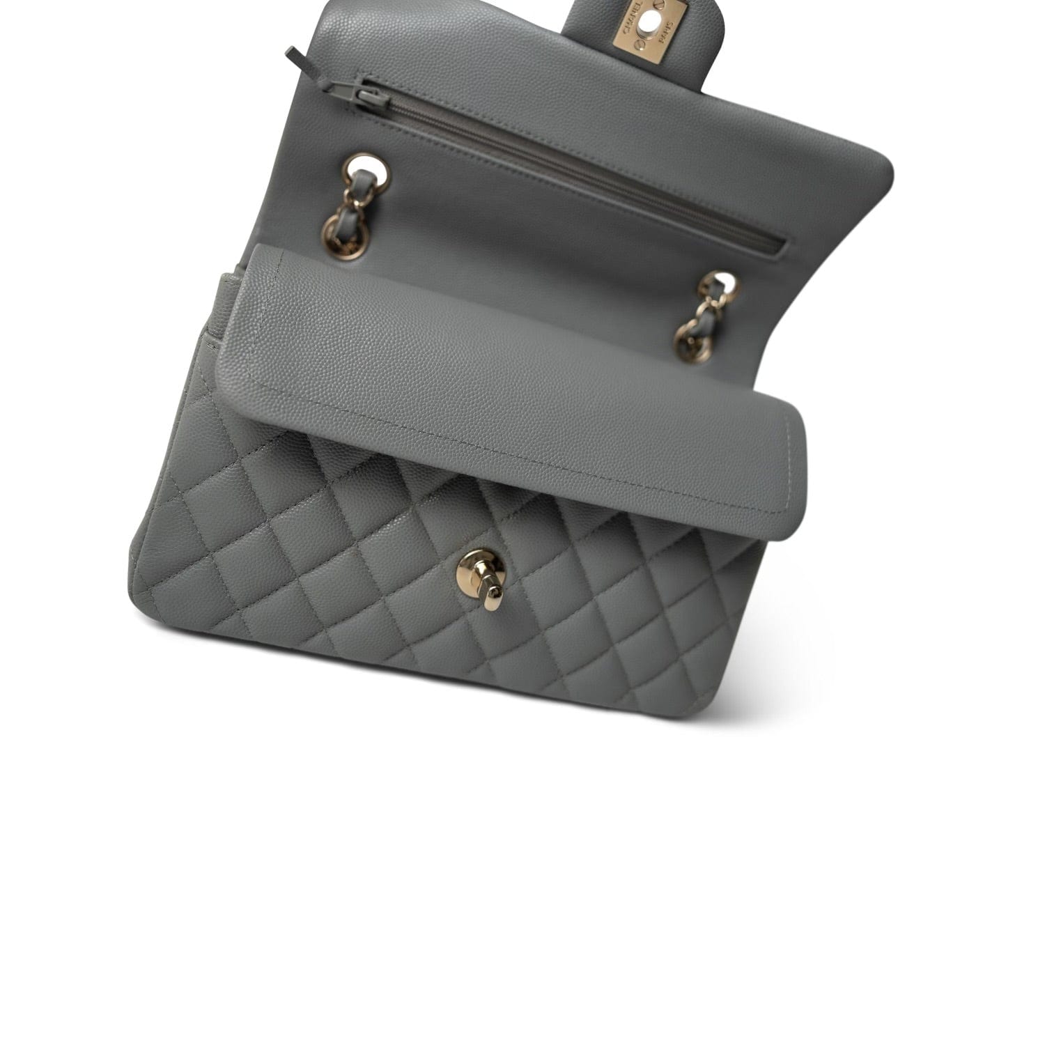 20C Grey Caviar Quilted Classic Flap Small LGHW