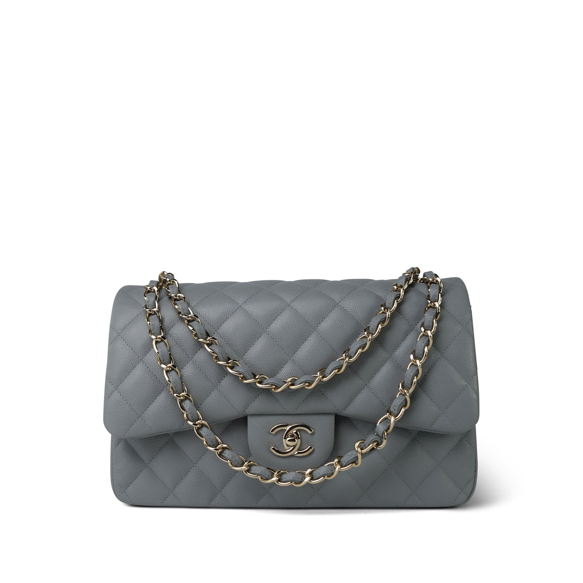20C Grey Caviar Quilted Jumbo Classic Flap Light Gold Hardware