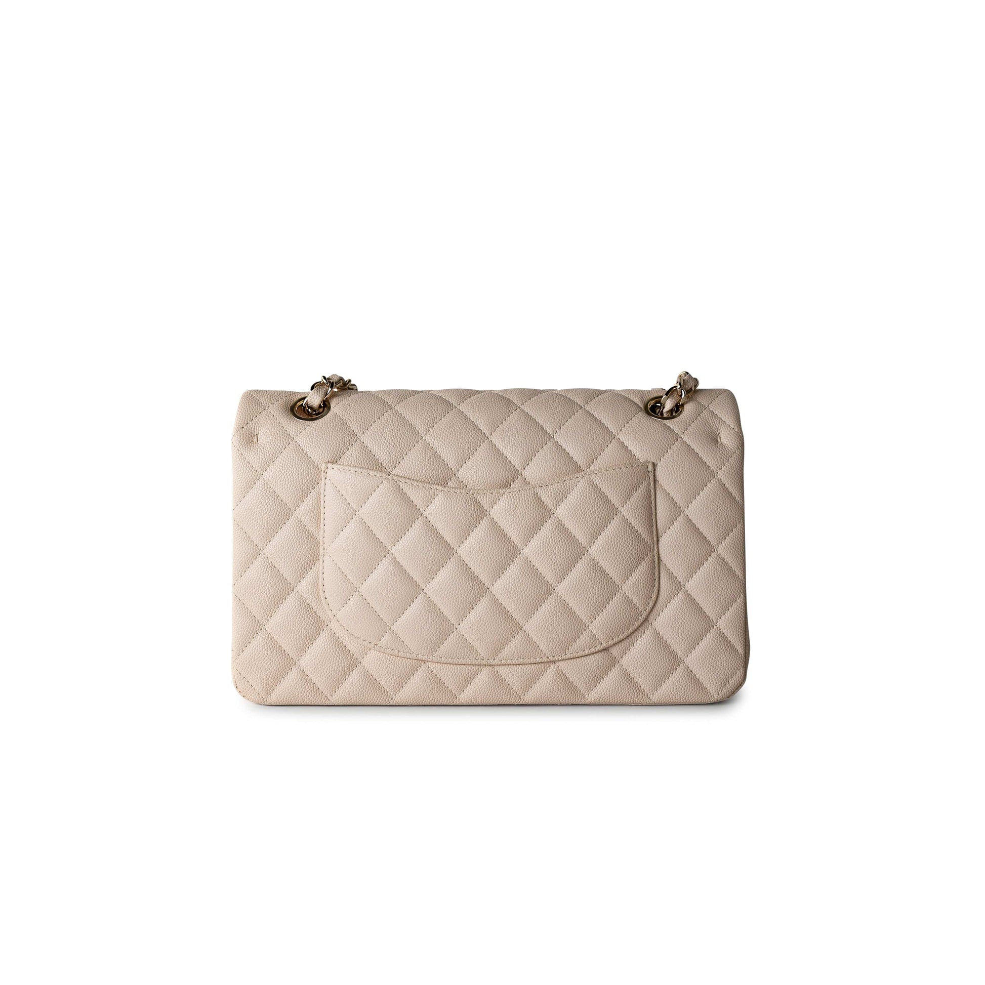20C Light Beige Caviar Quilted Classic Flap Medium Light Gold Hardware