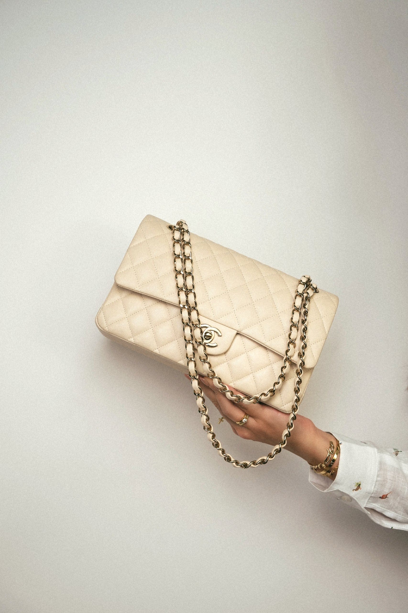 20C Light Beige Caviar Quilted Classic Flap Medium Light Gold Hardware