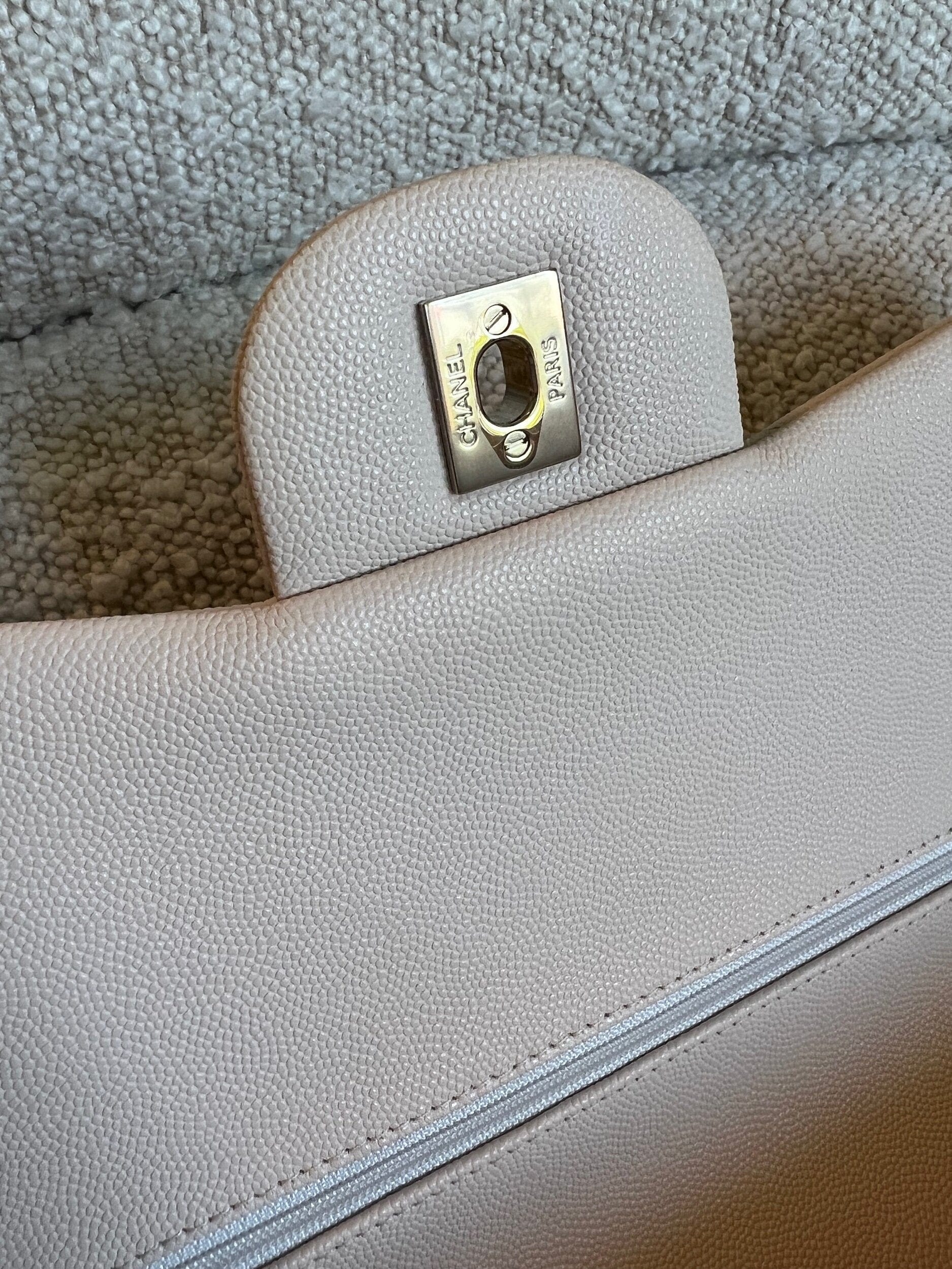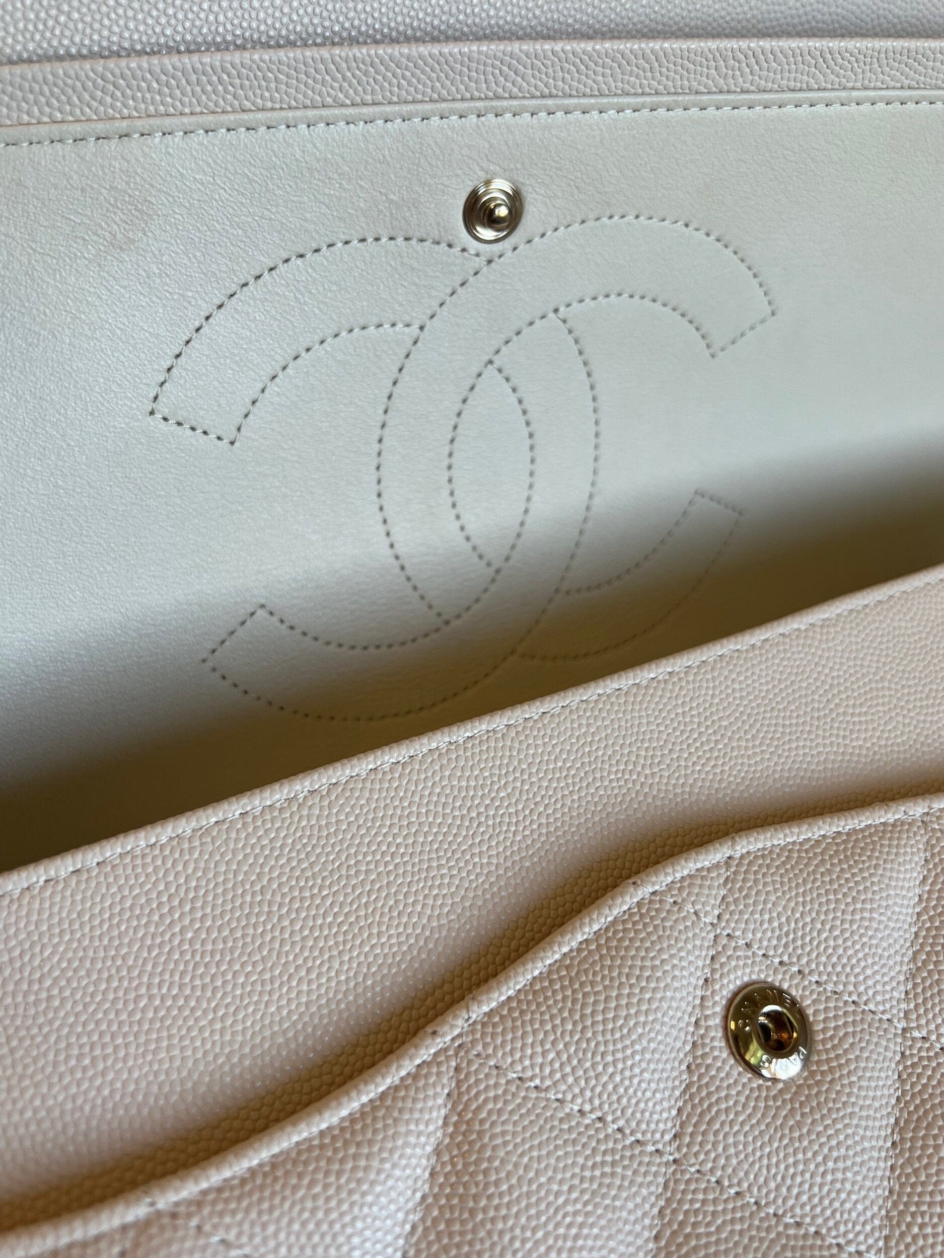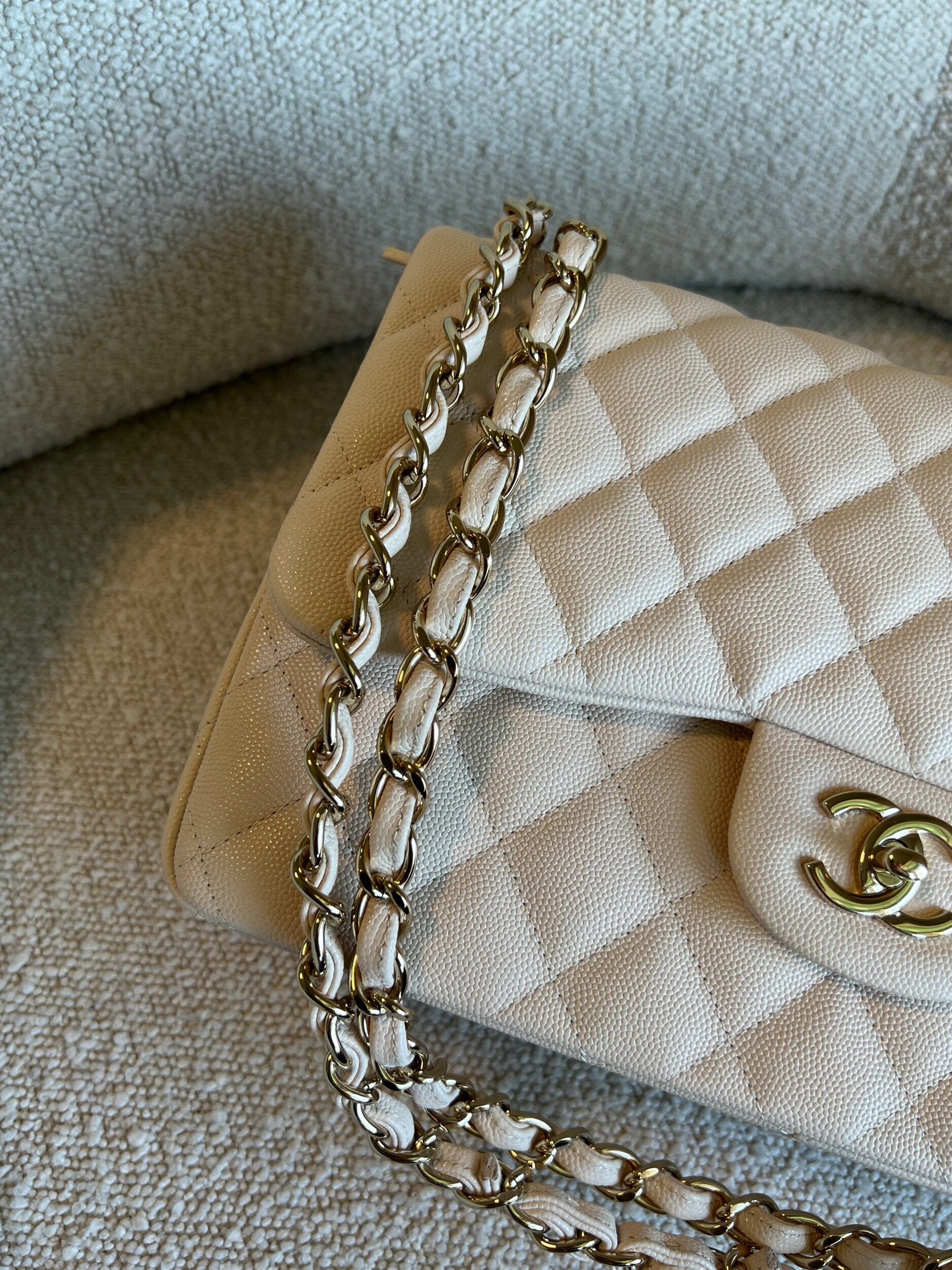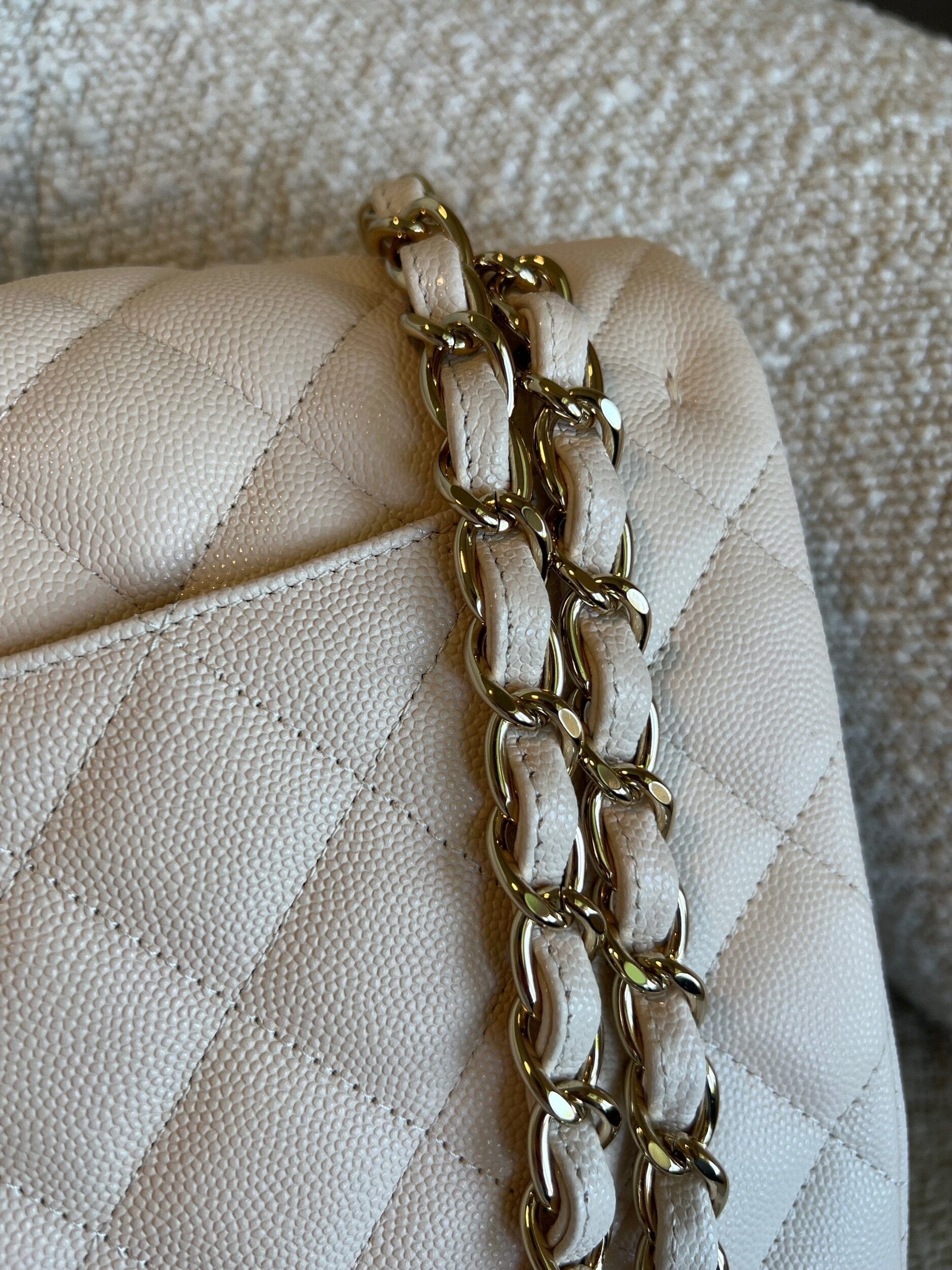 20C Light Beige Caviar Quilted Jumbo Classic Flap LGHW
