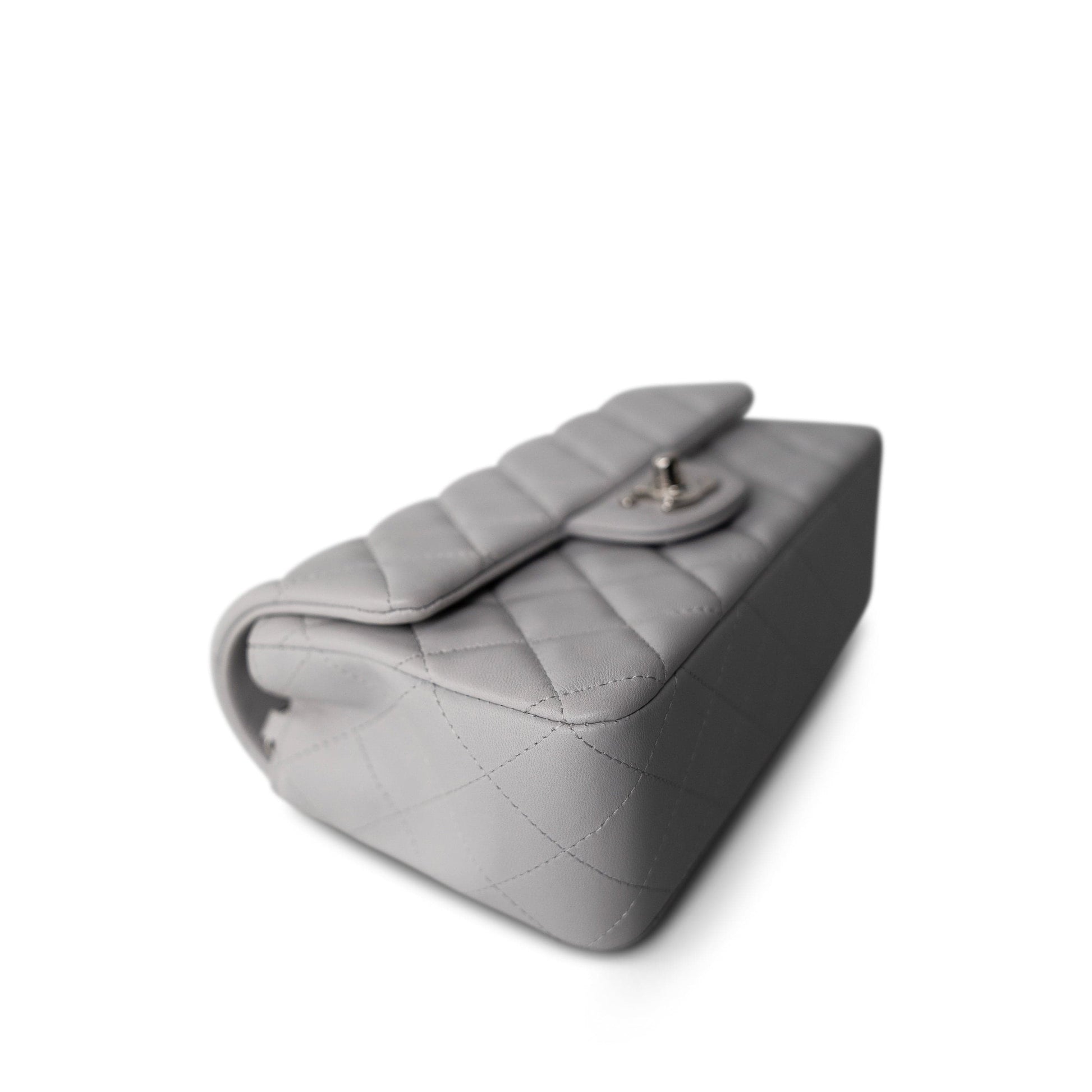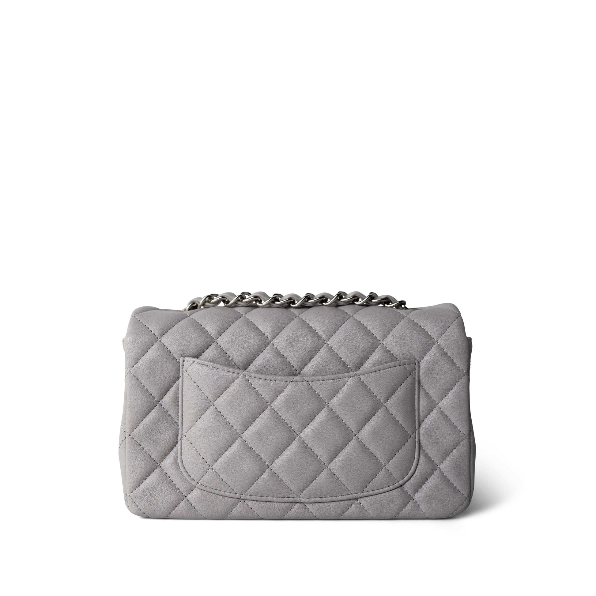 20C Light Grey Lambskin Quilted Mini Rectangular Flap Silver Hardware
