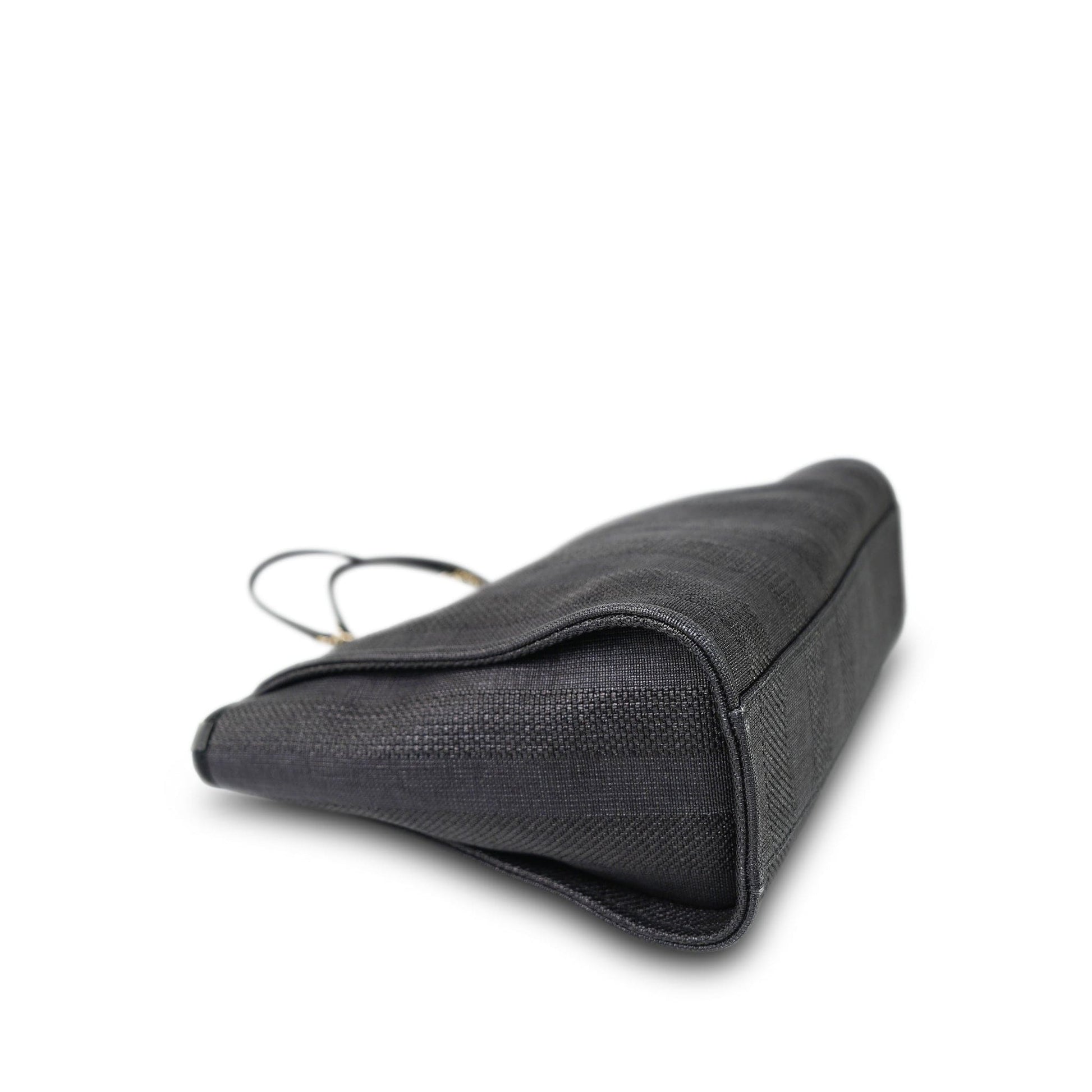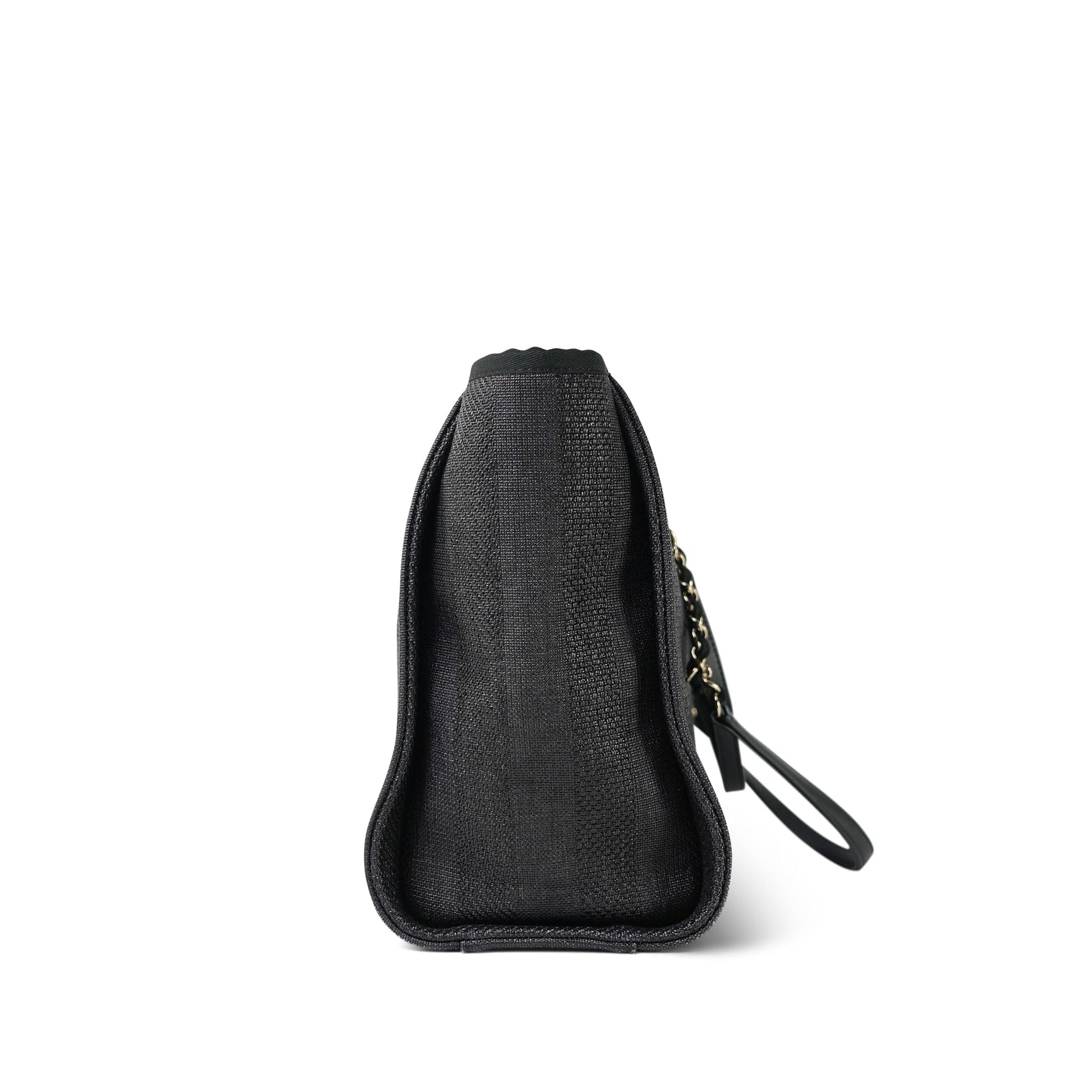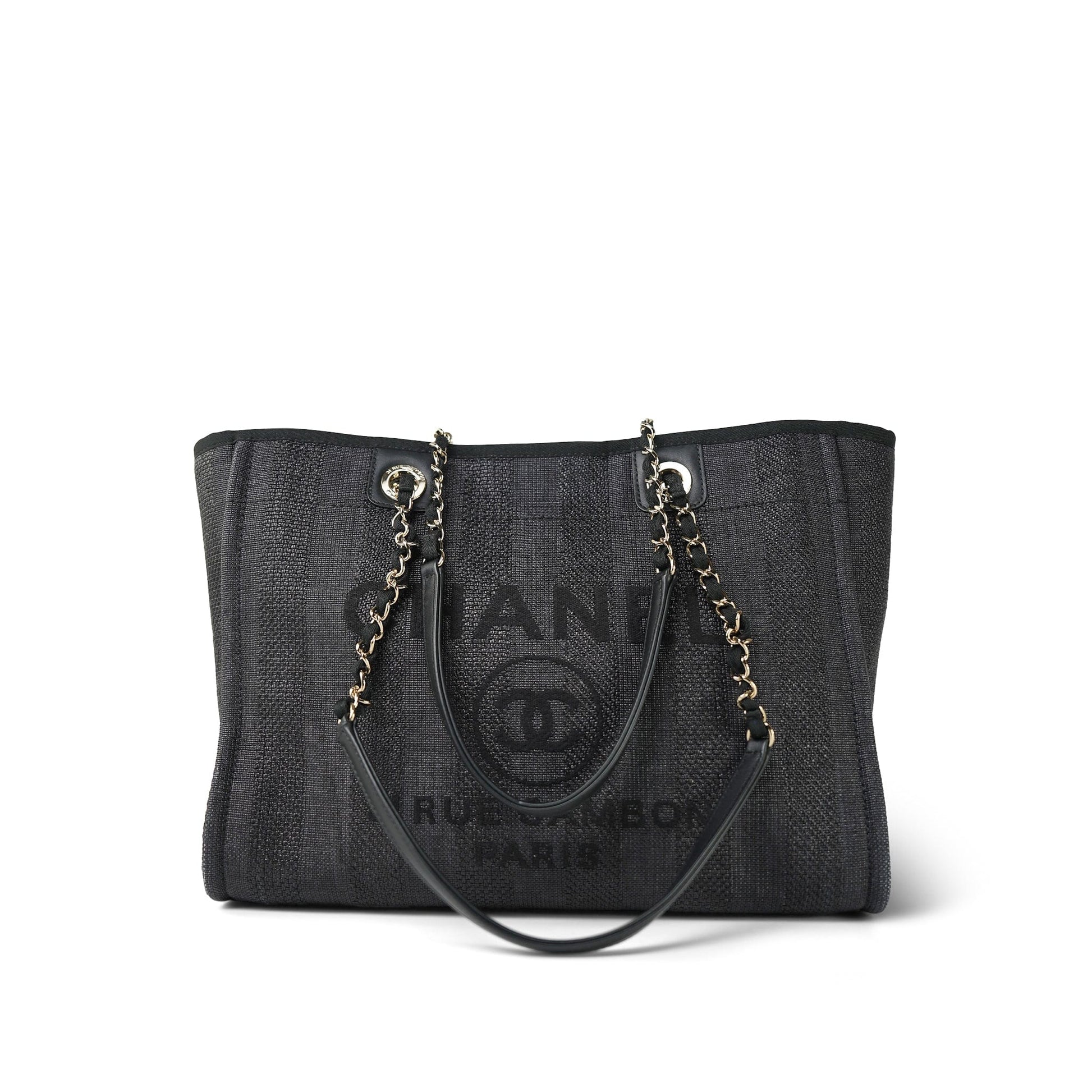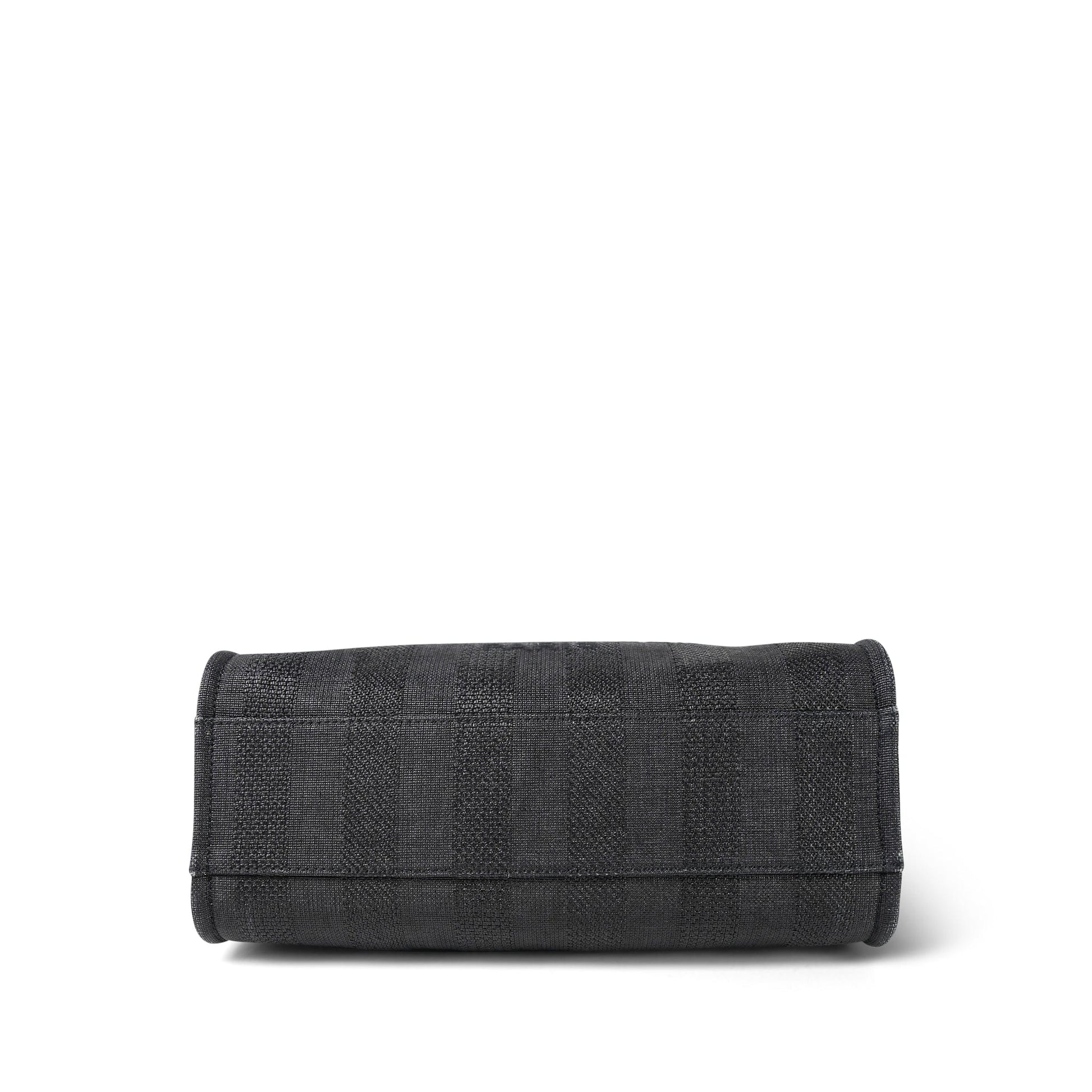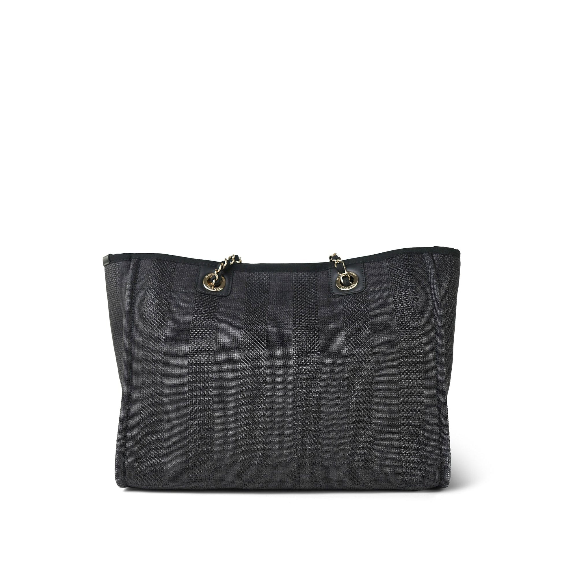 20P Black Stripe Raffia Deauville Shopping Tote Small Light Gold Hardware