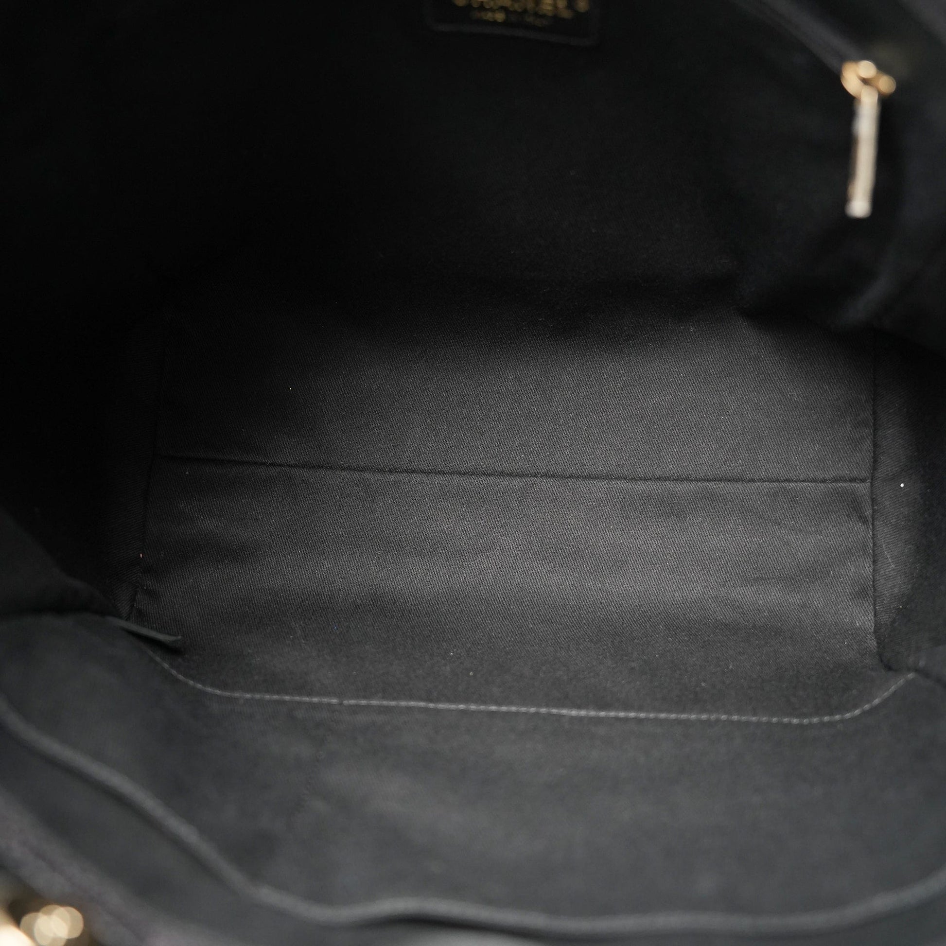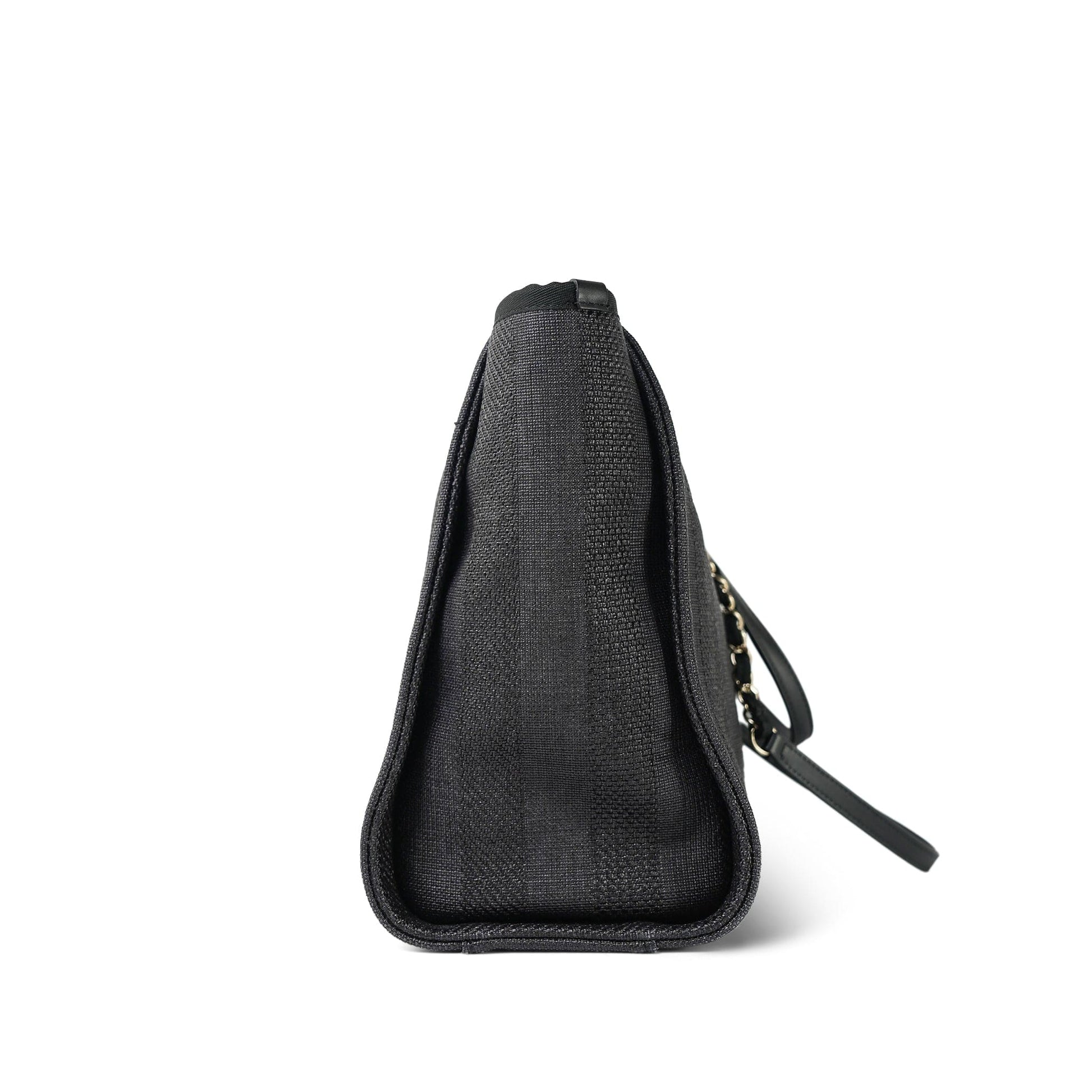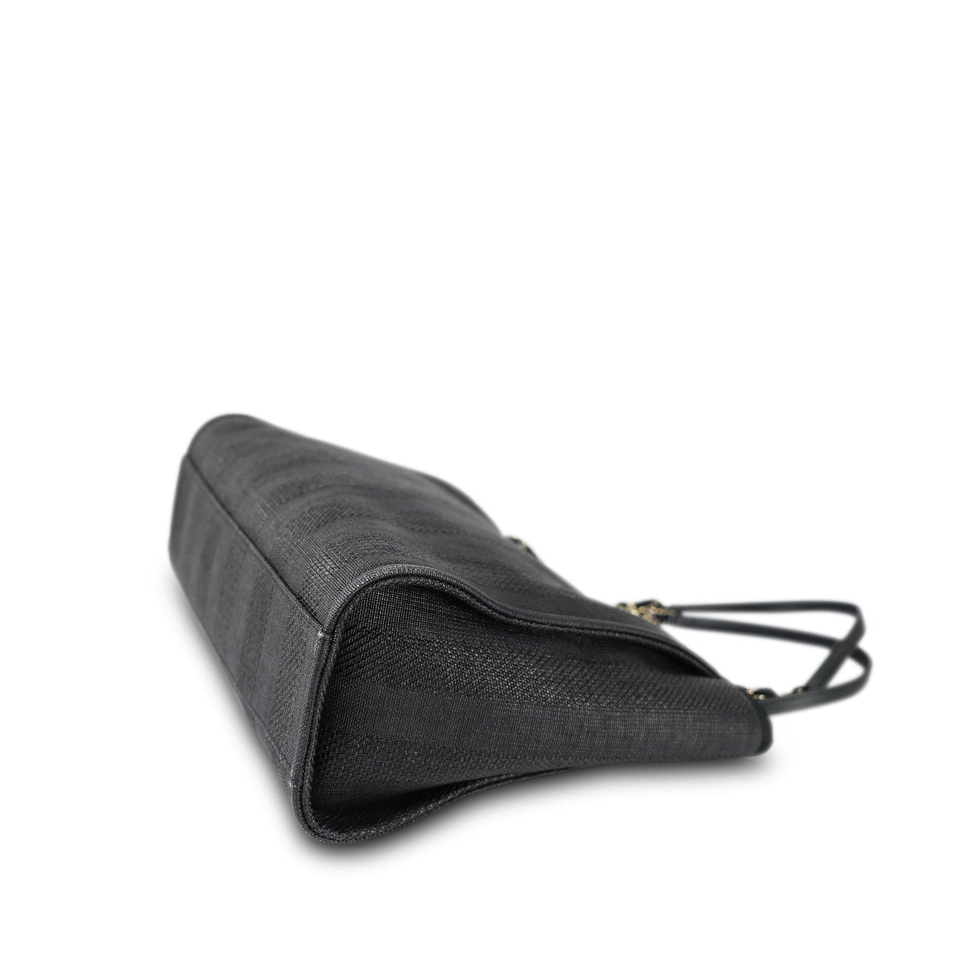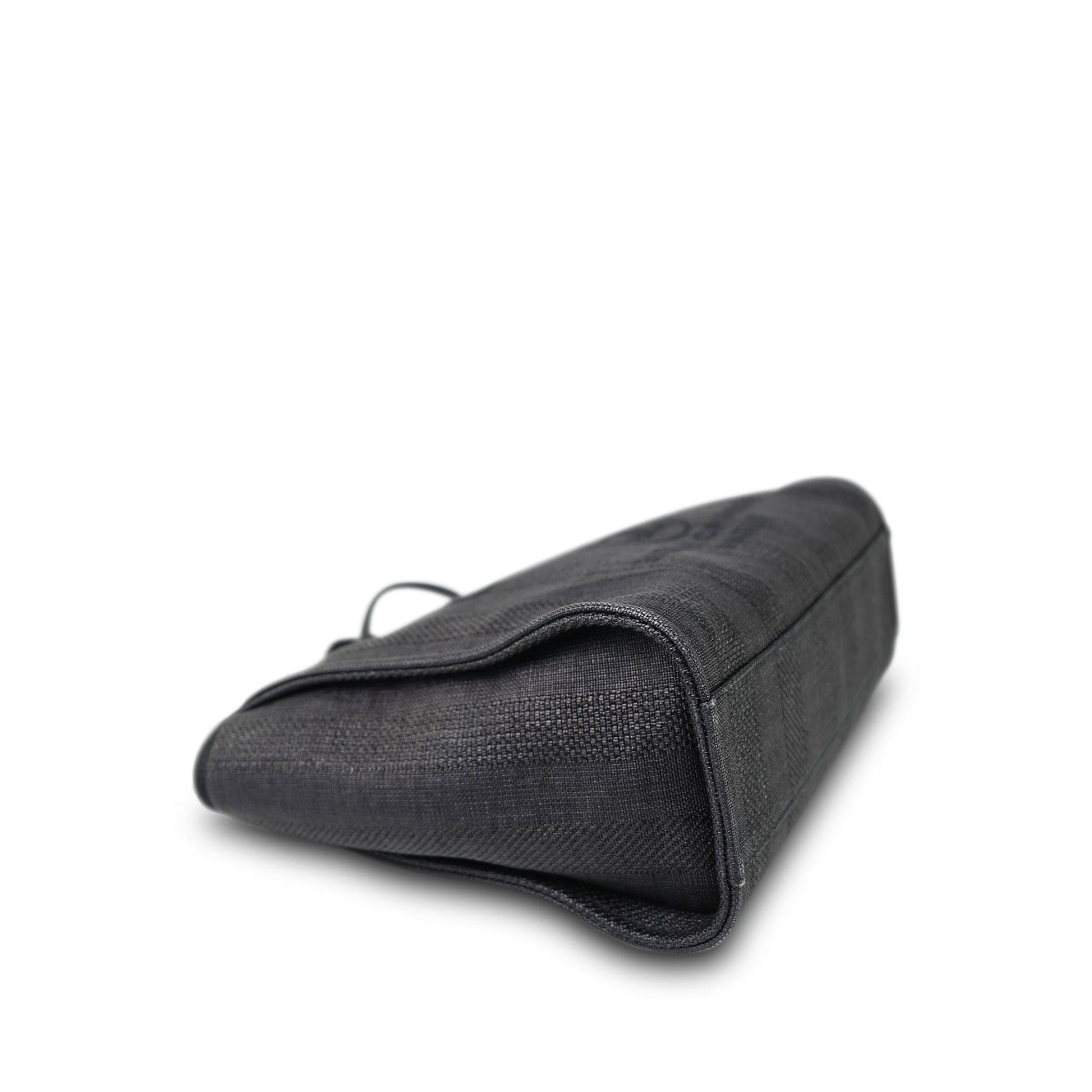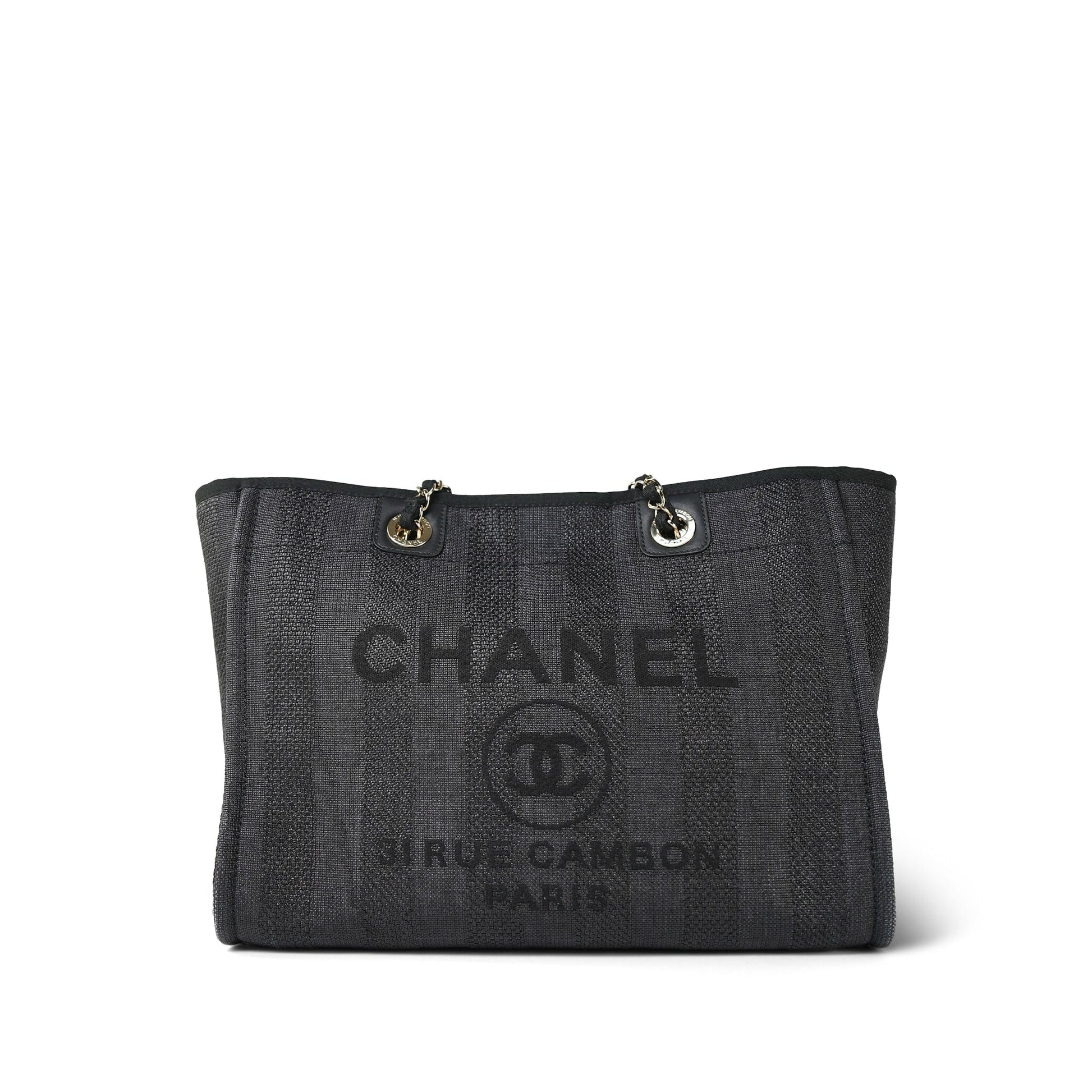 20P Black Stripe Raffia Deauville Shopping Tote Small Light Gold Hardware