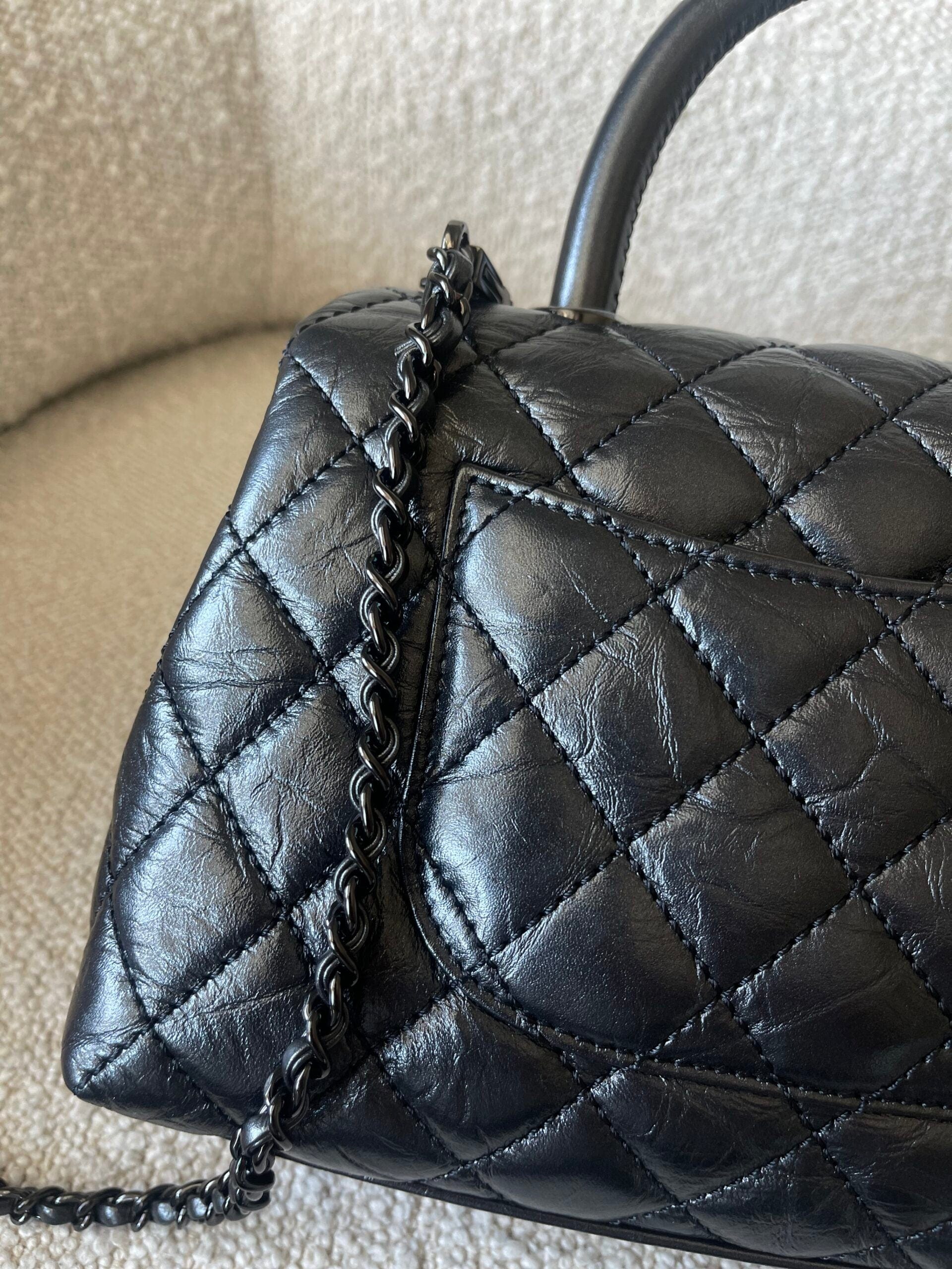 20P So Black Calfskin Quilted Coco Handle Small with Black Hardware