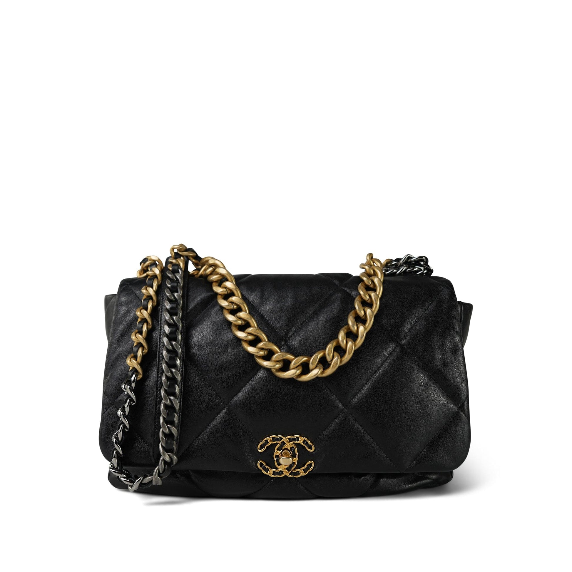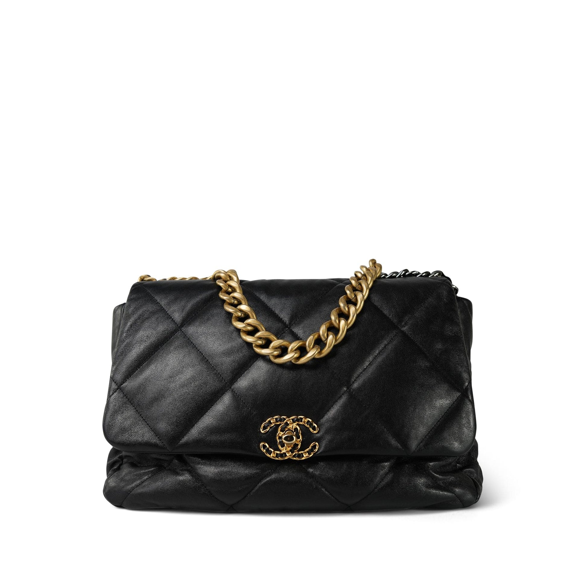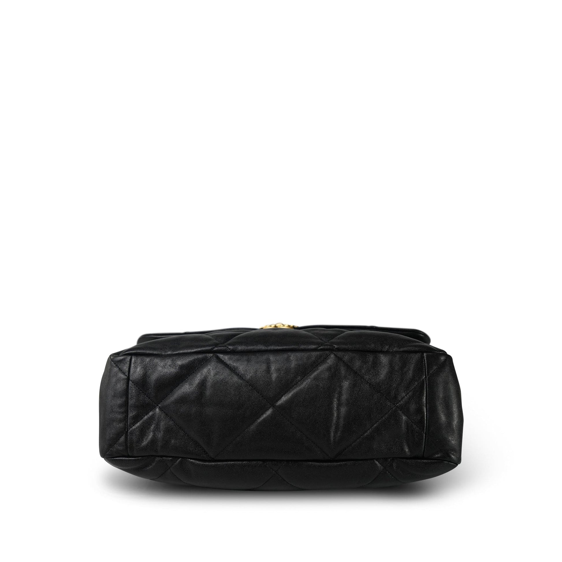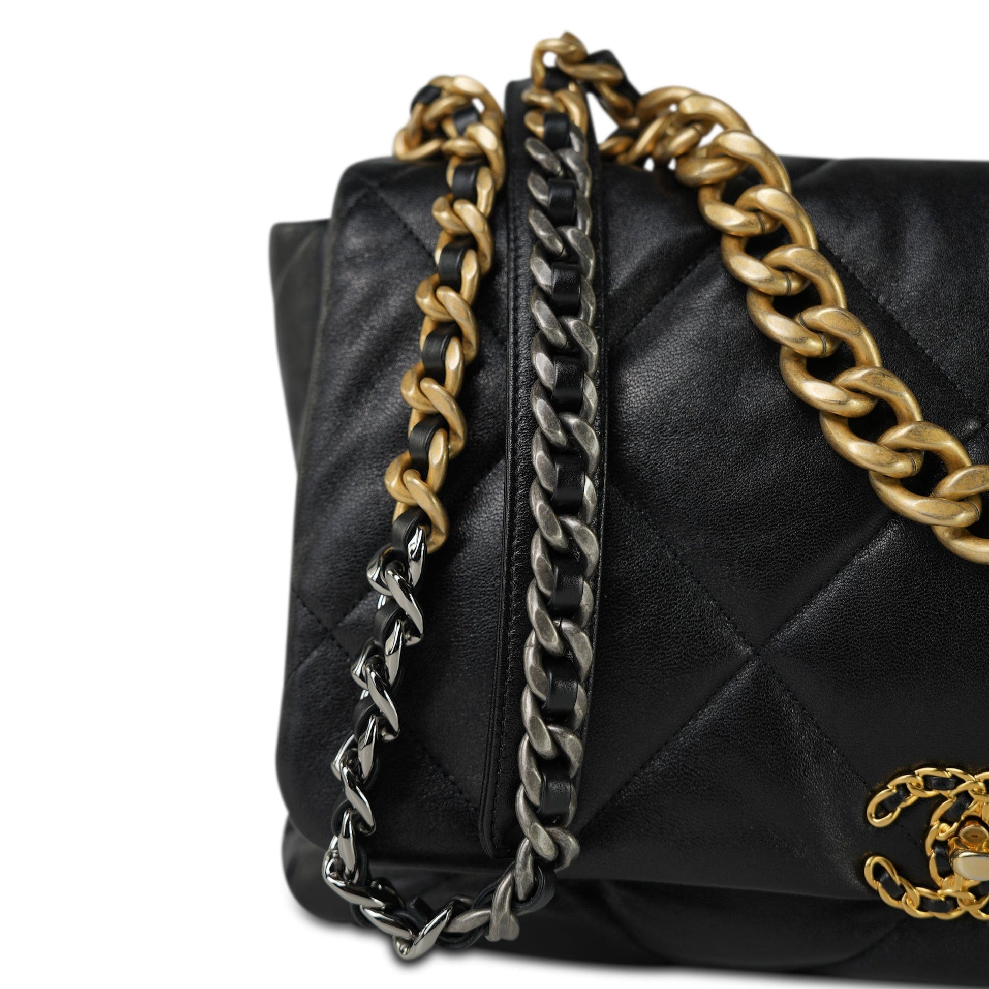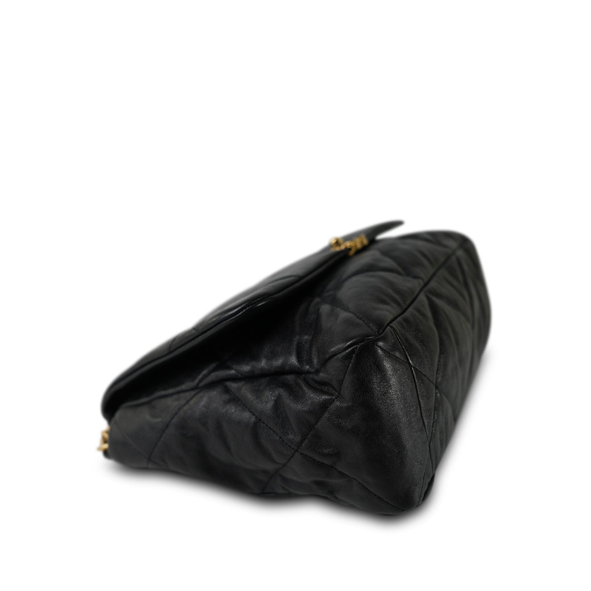 20S Black Goatskin Quilted Maxi 19 Flap Mixed Hardware