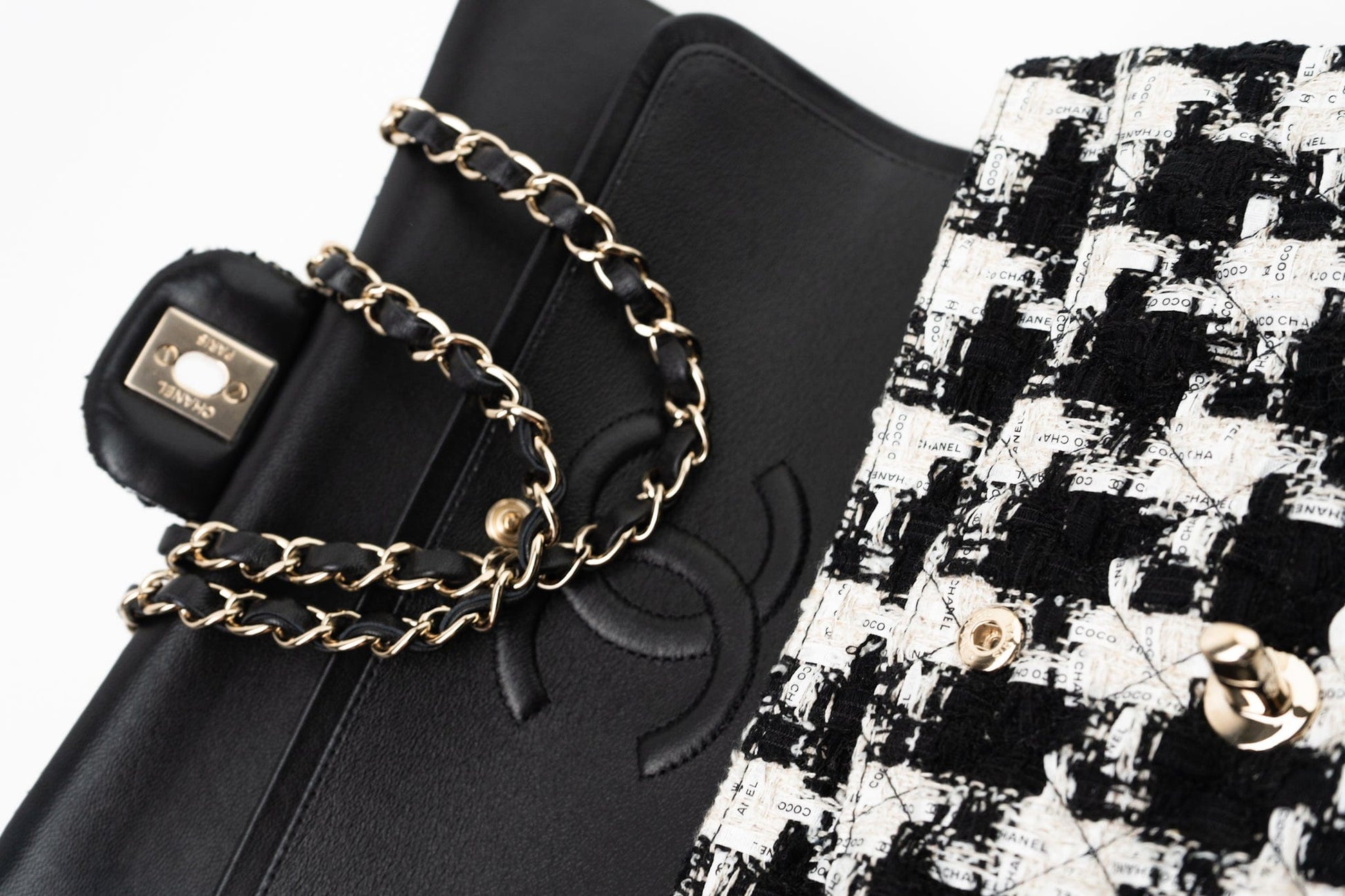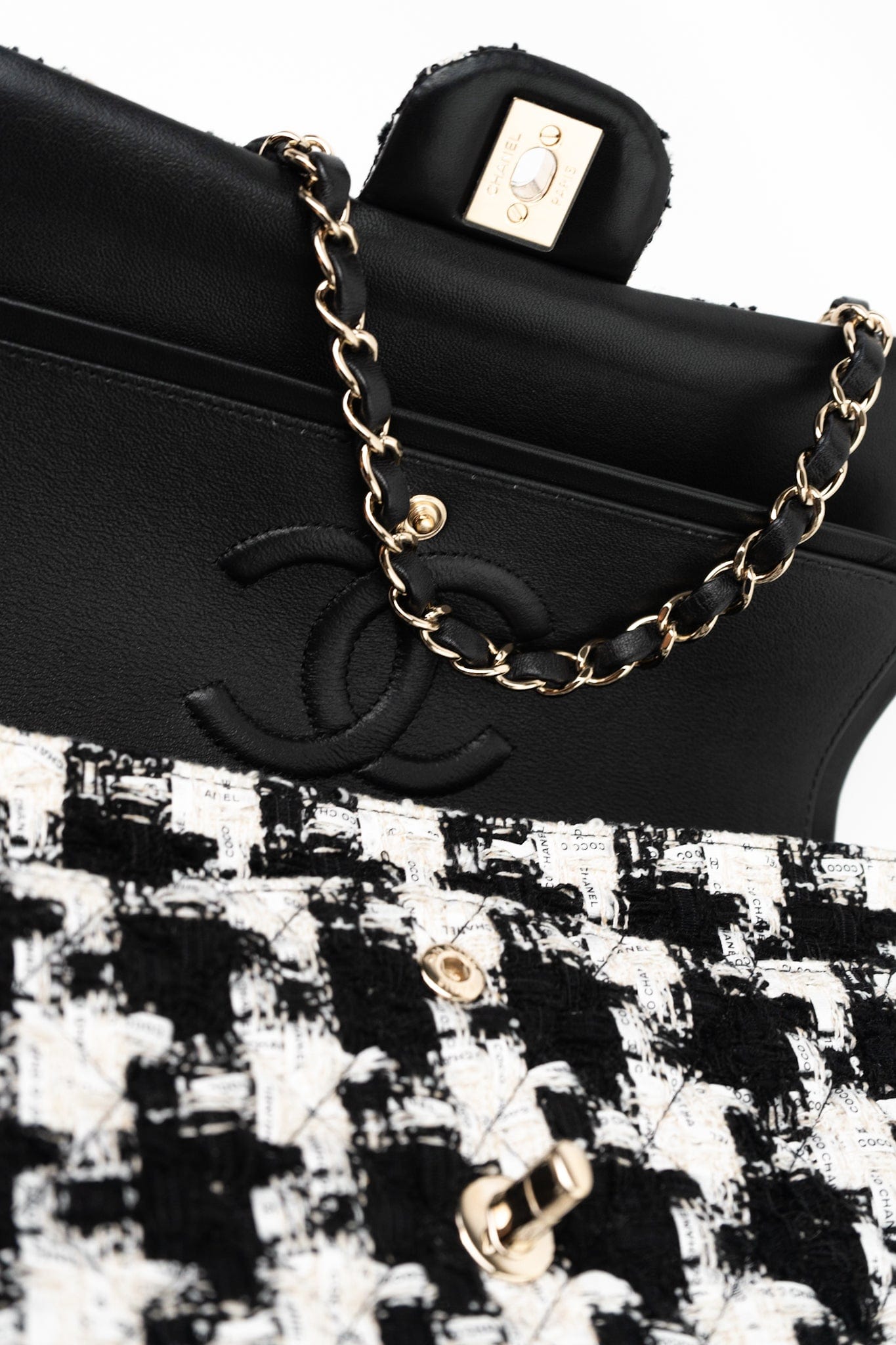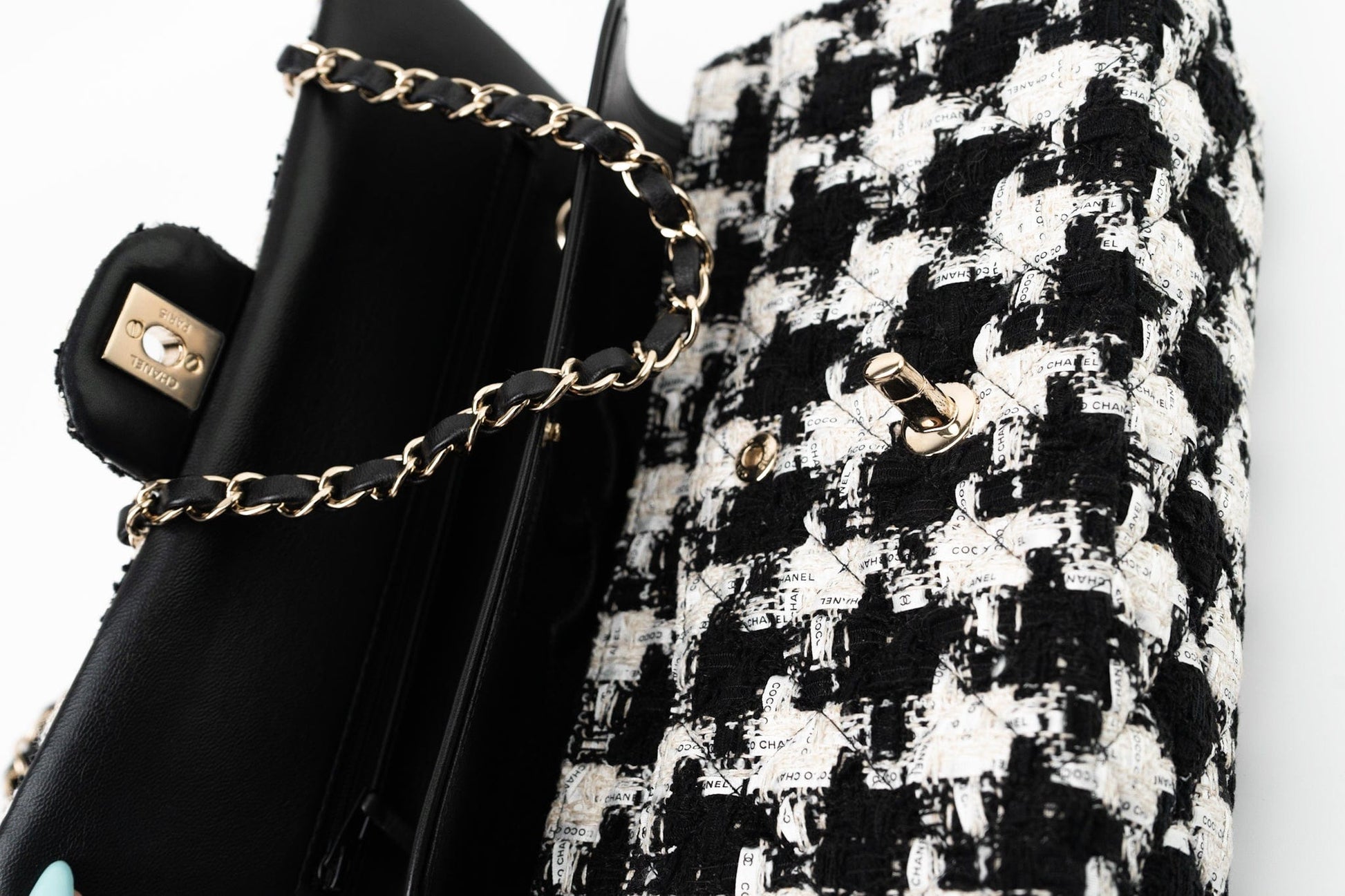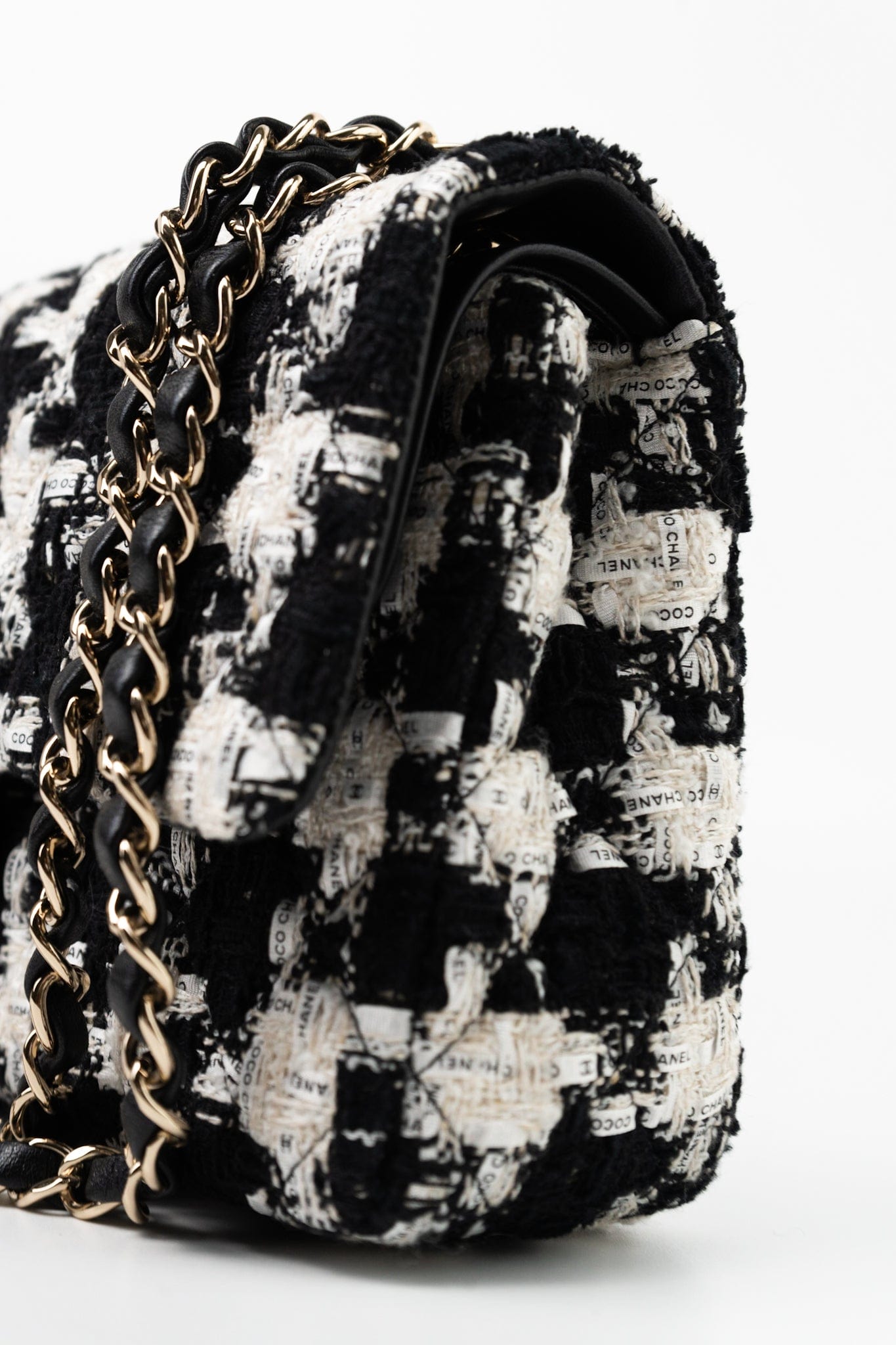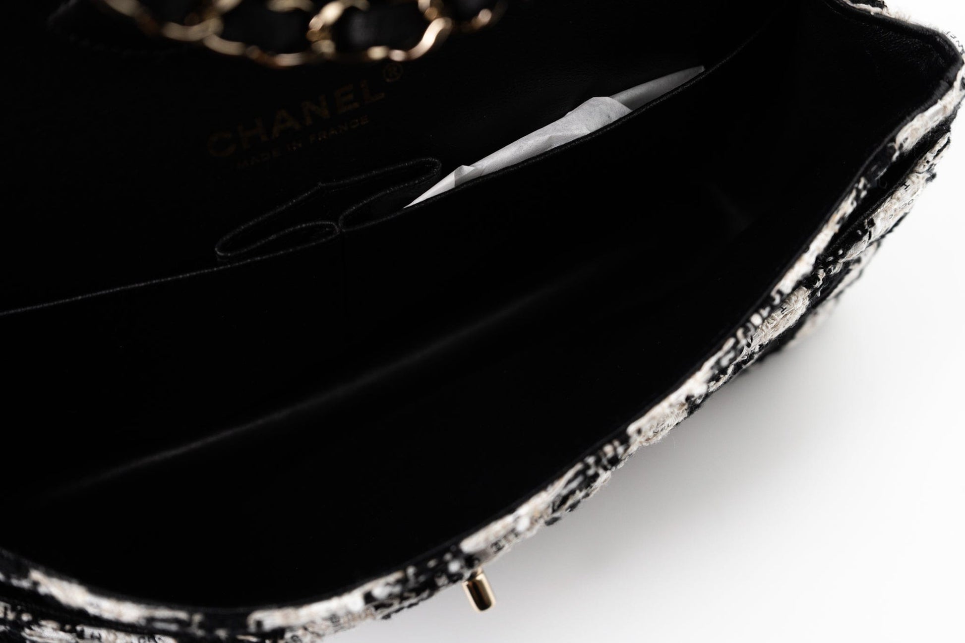 20S Ecru Black & White Tweed Quilted Medium Classic Flap LGHW