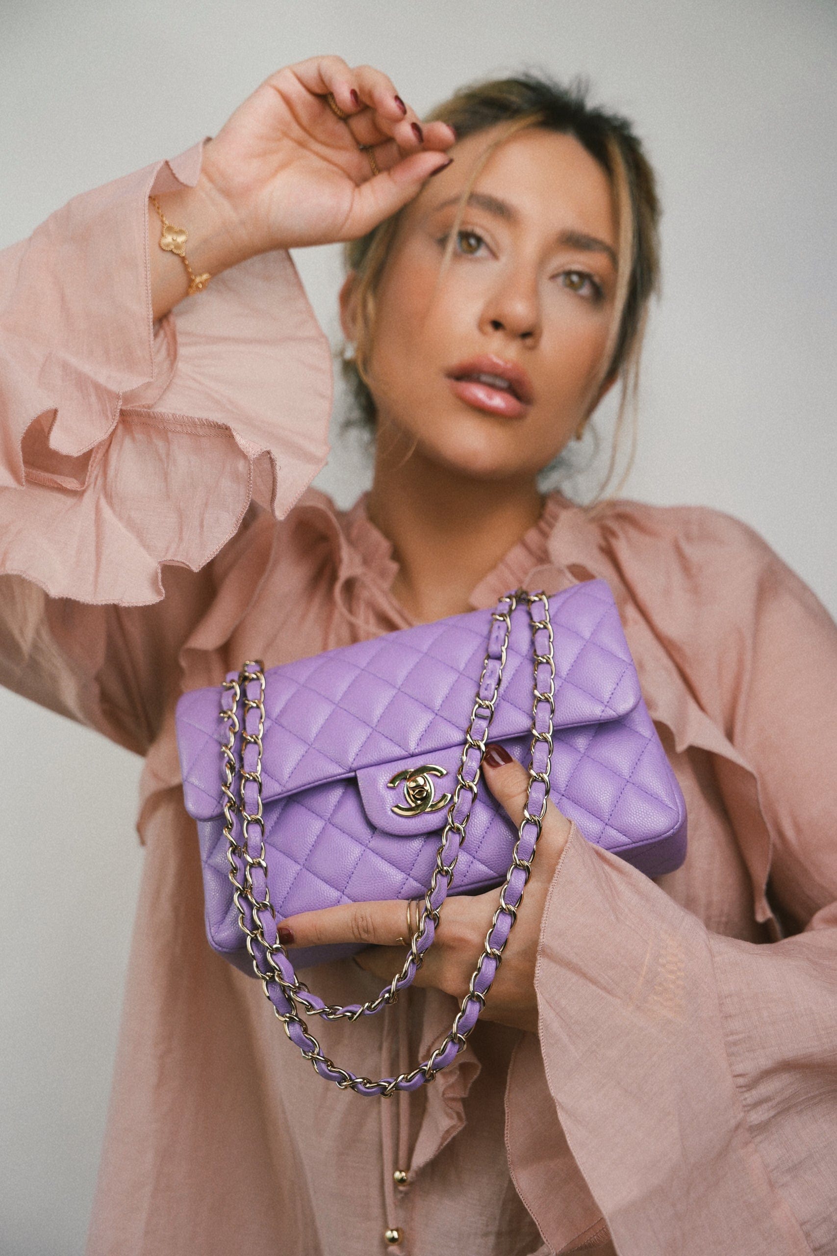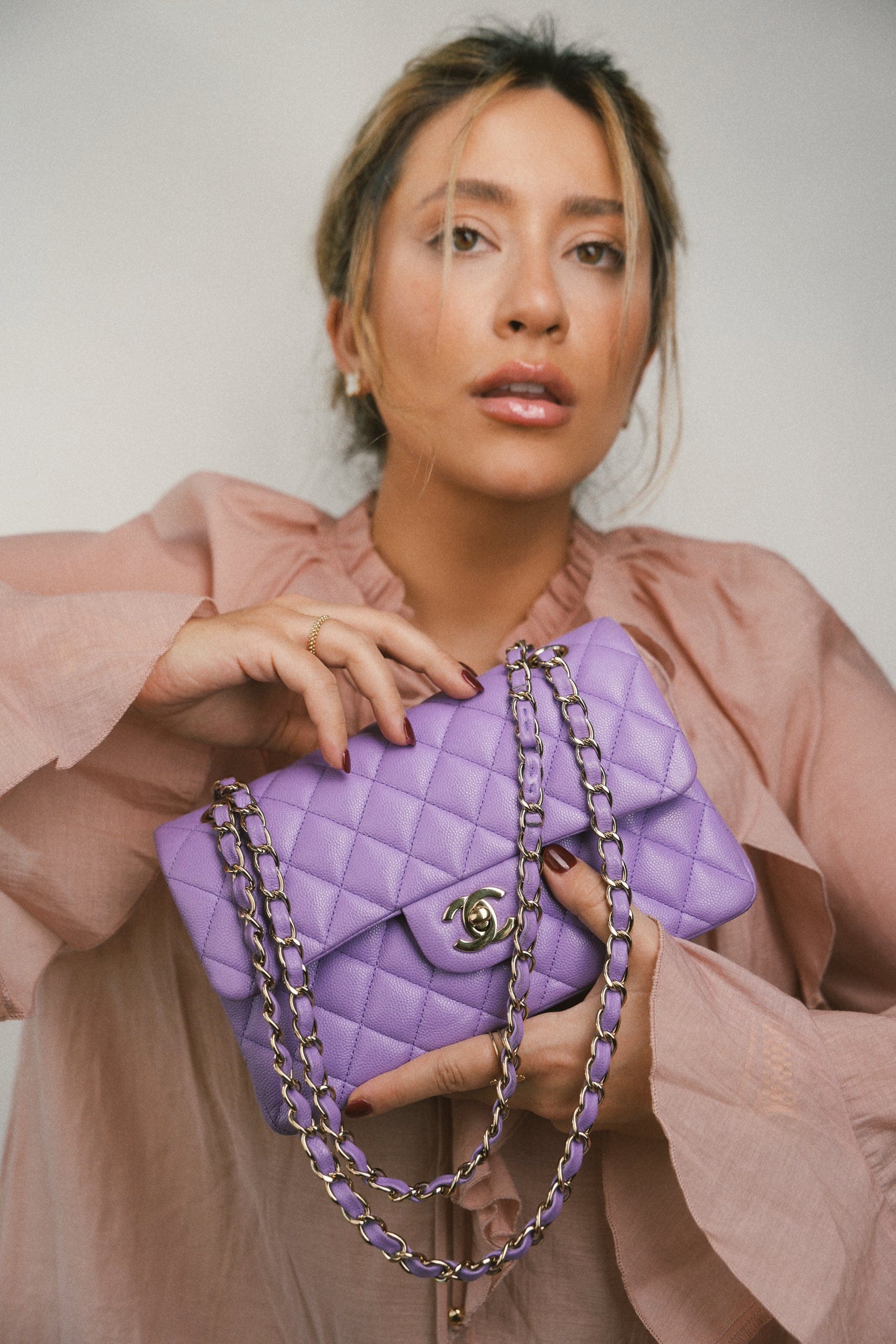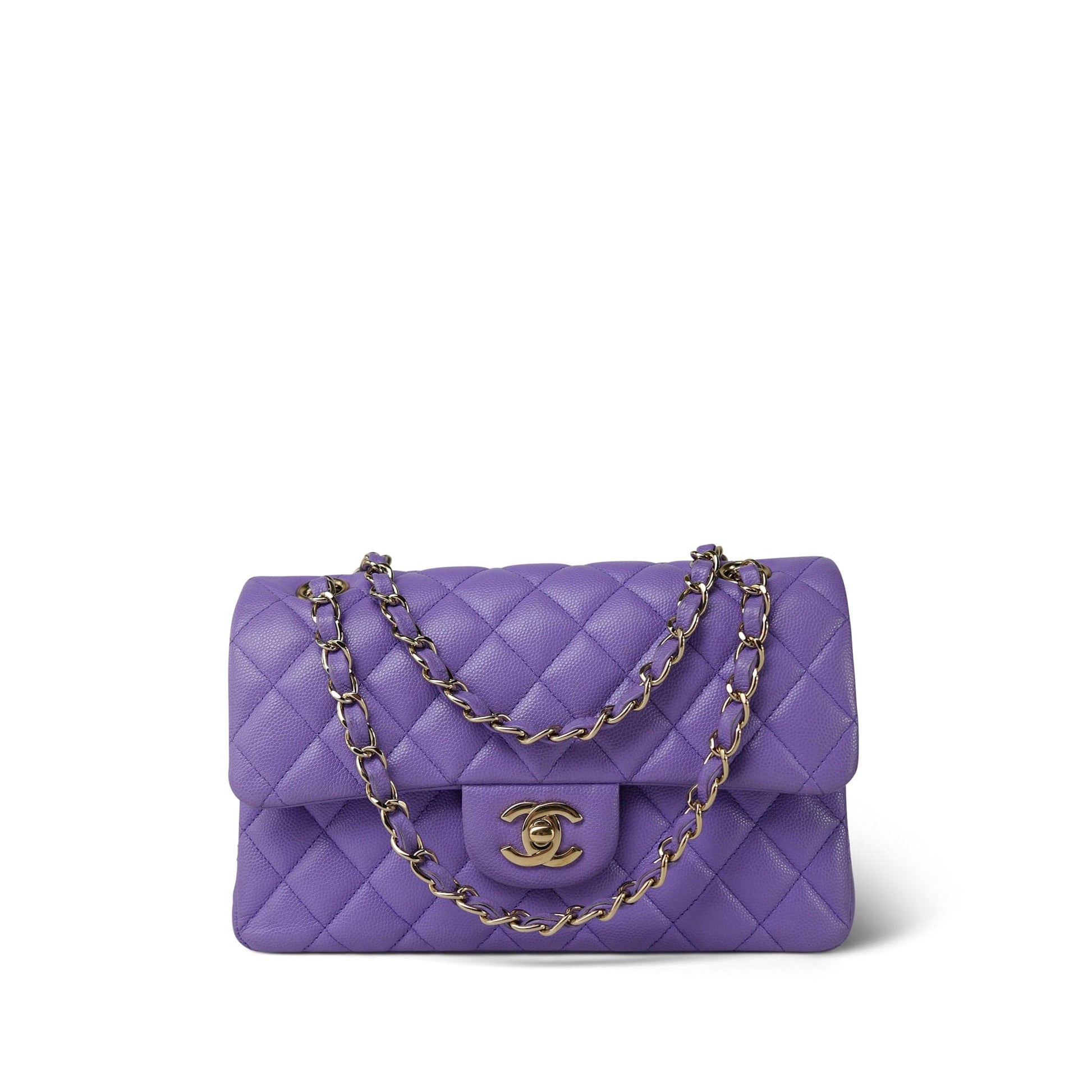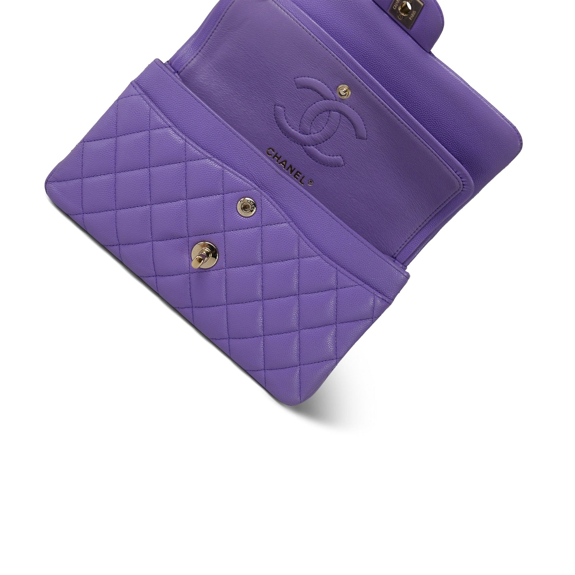 20S Purple Caviar Quilted Classic Flap Small Light Gold Hardware