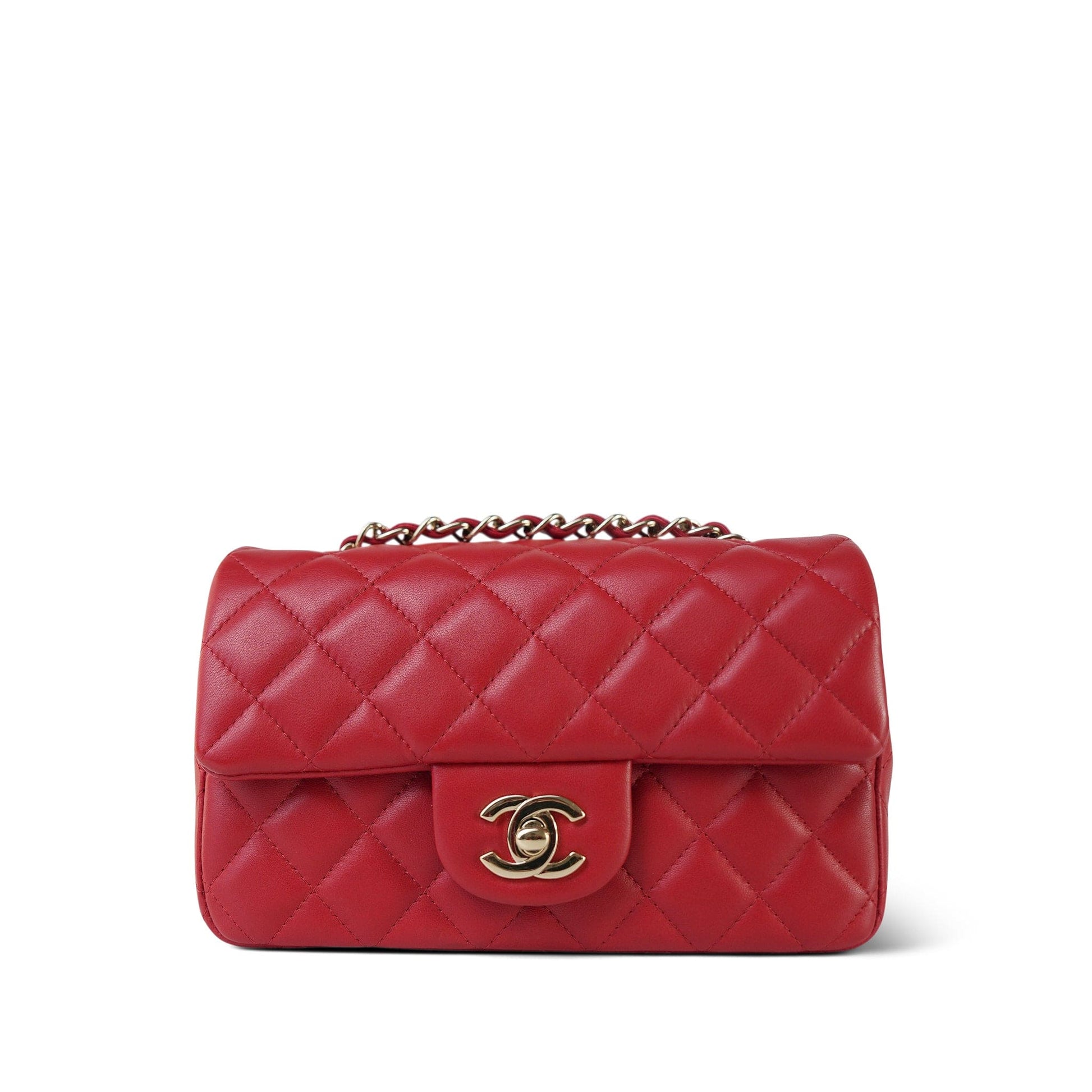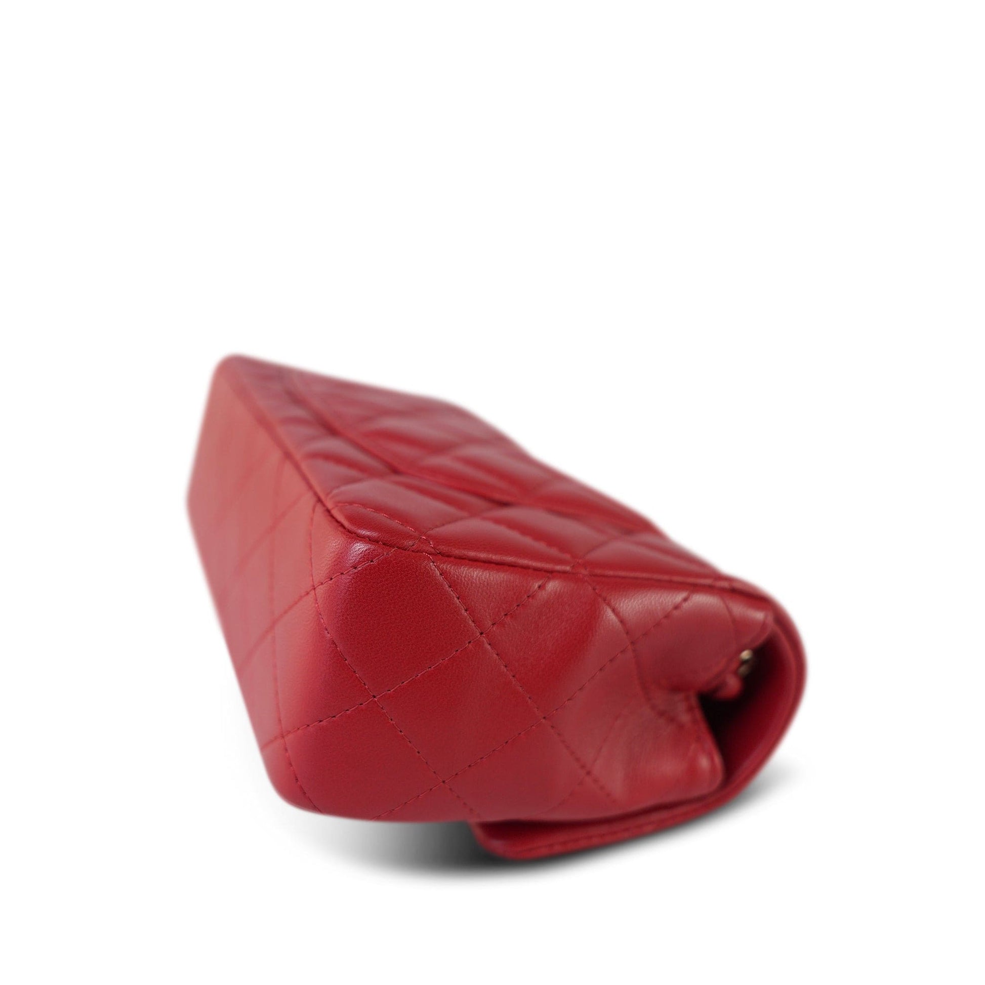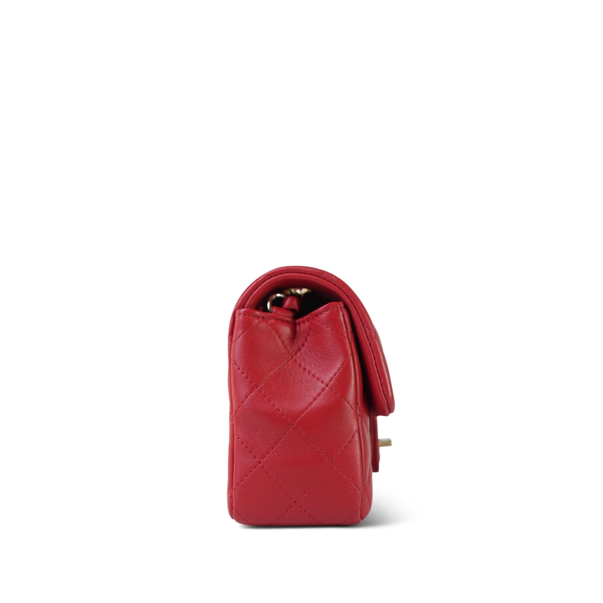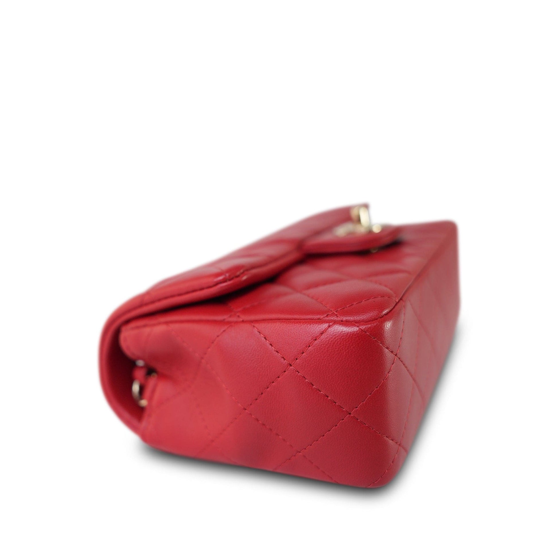 20S Red Lambskin Quilted Mini Rectangular Flap Light Gold Hardware