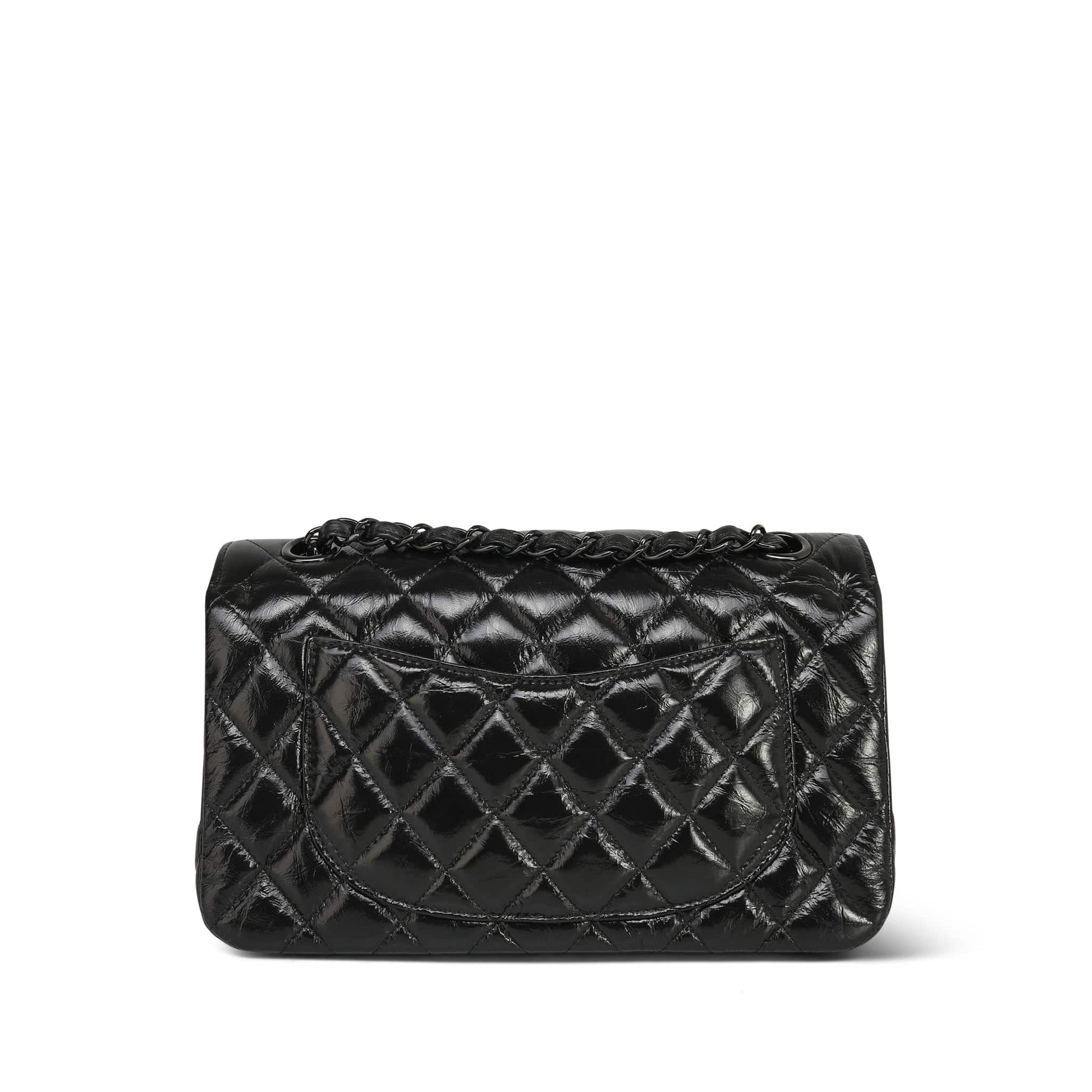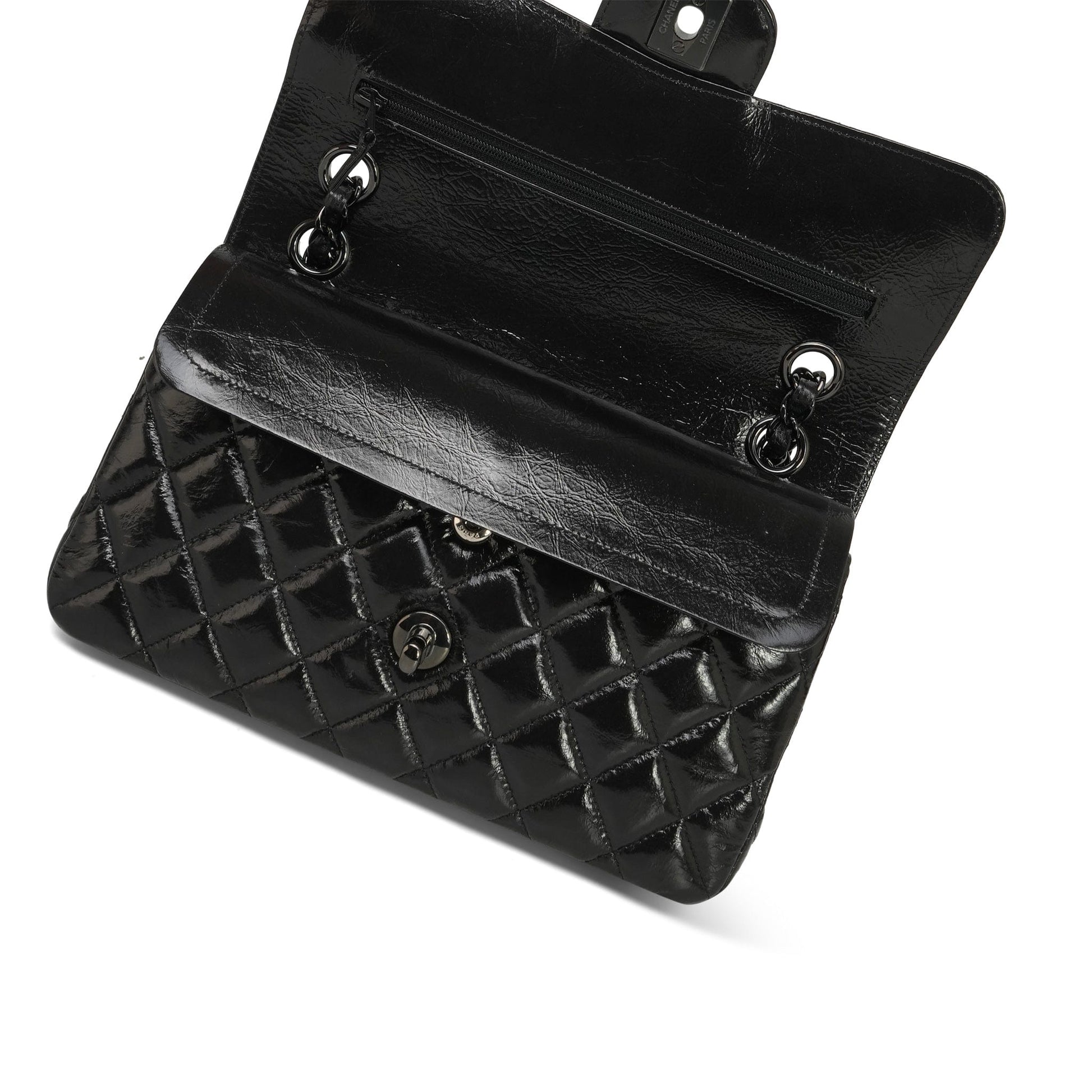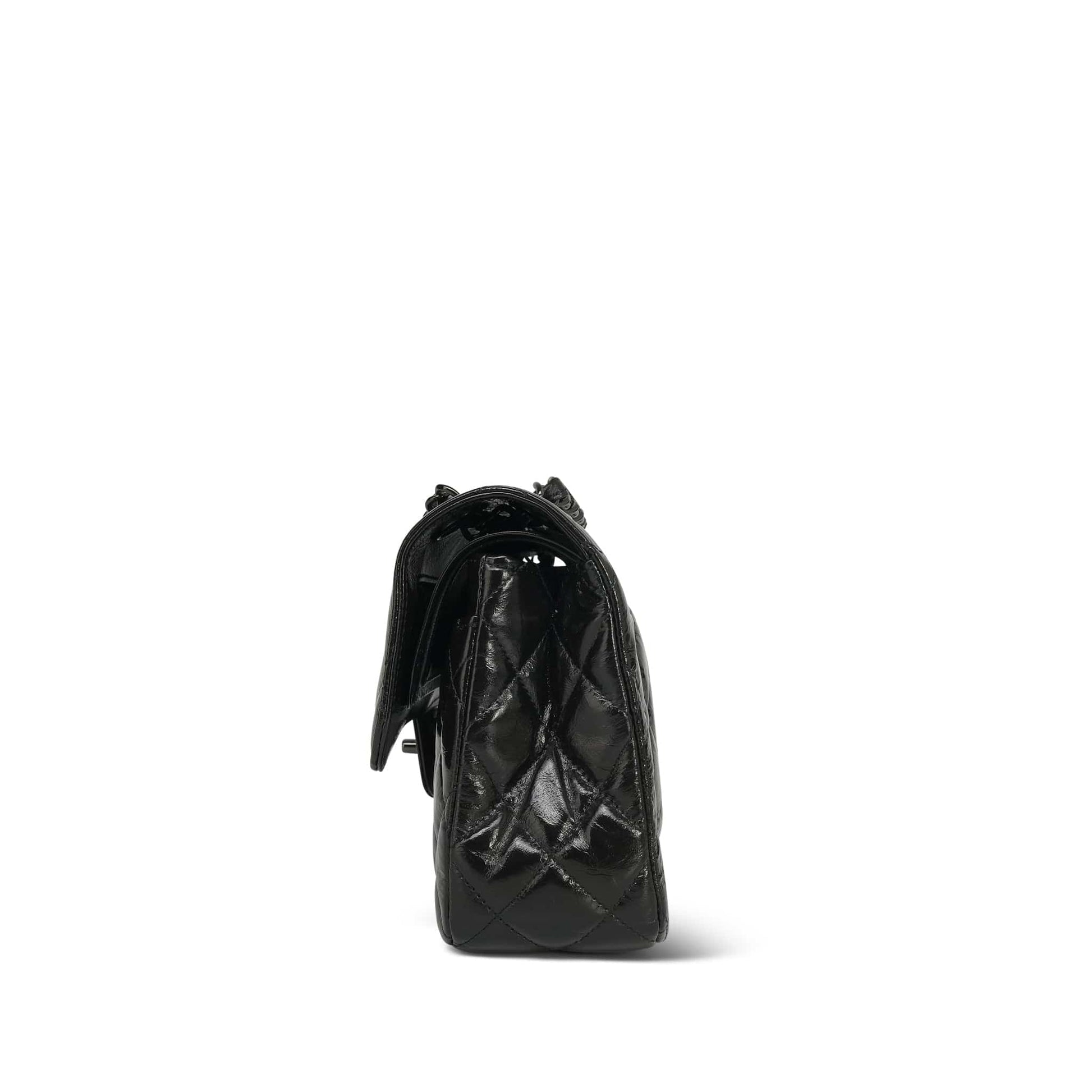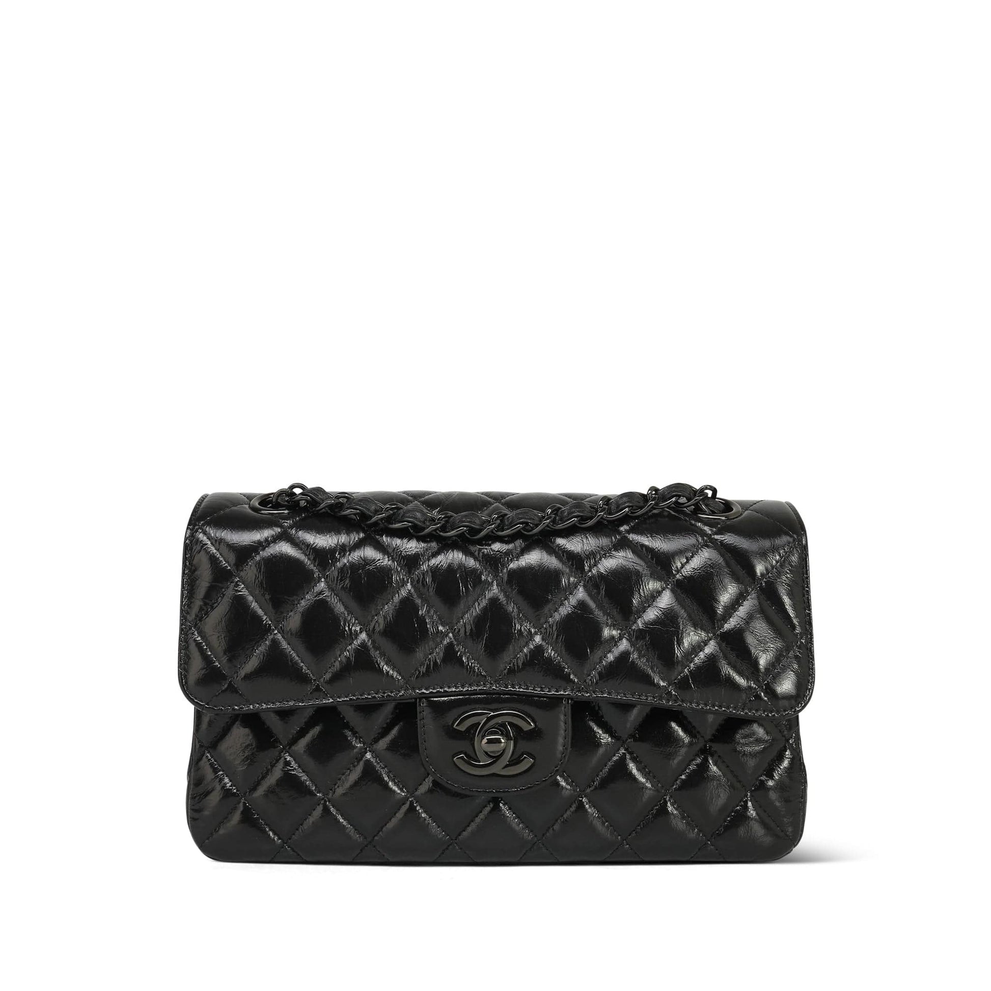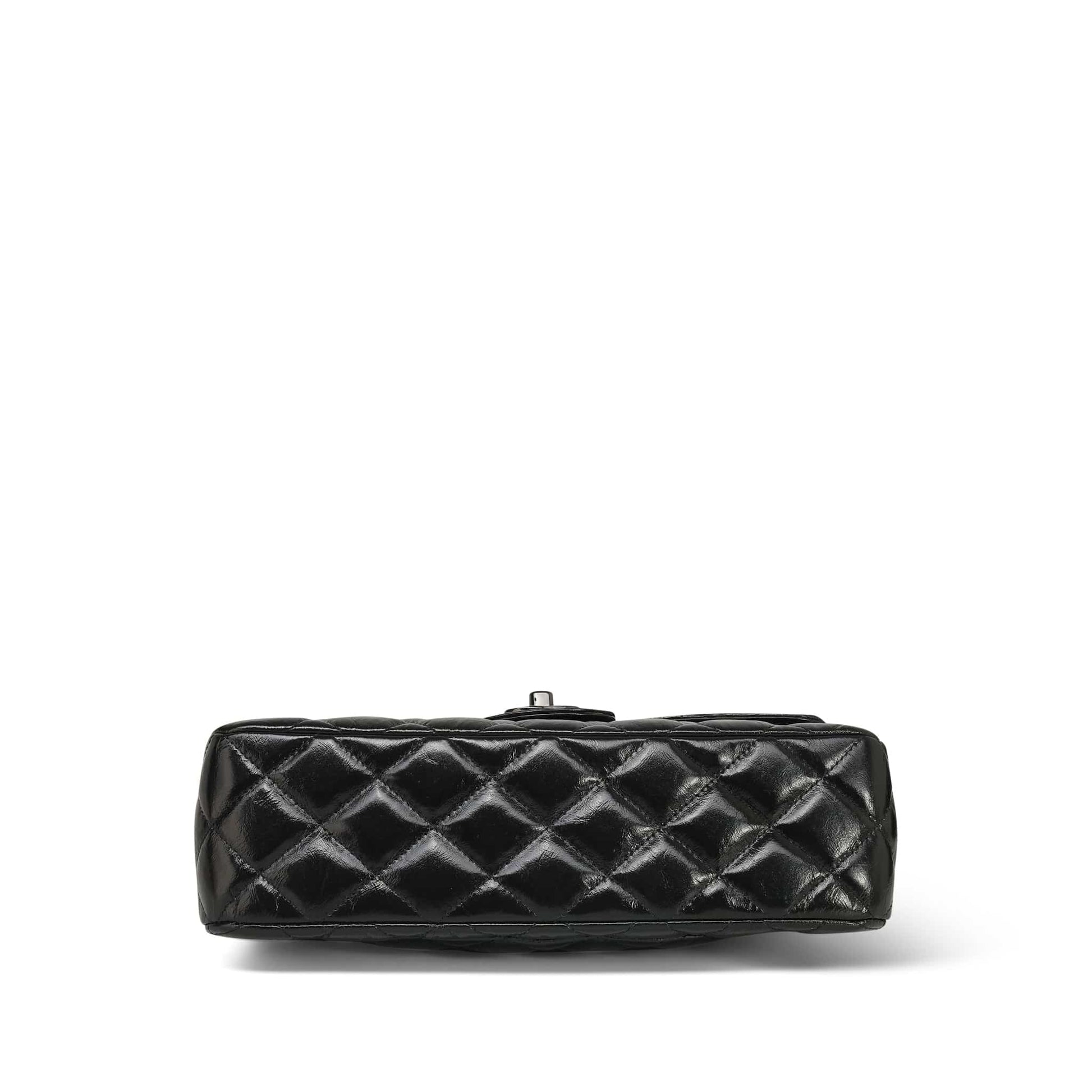 20S So Black Shiny Crumpled Calfskin Quilted Small Classic Flap