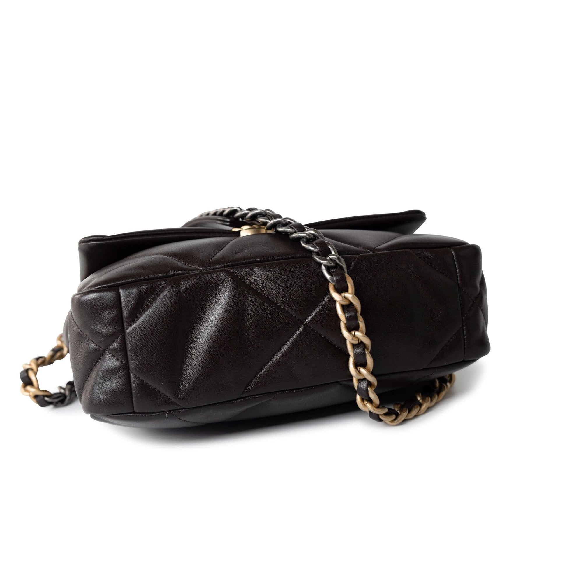 21A Dark Brown Lambskin Quilted 19 Flap Small MHW