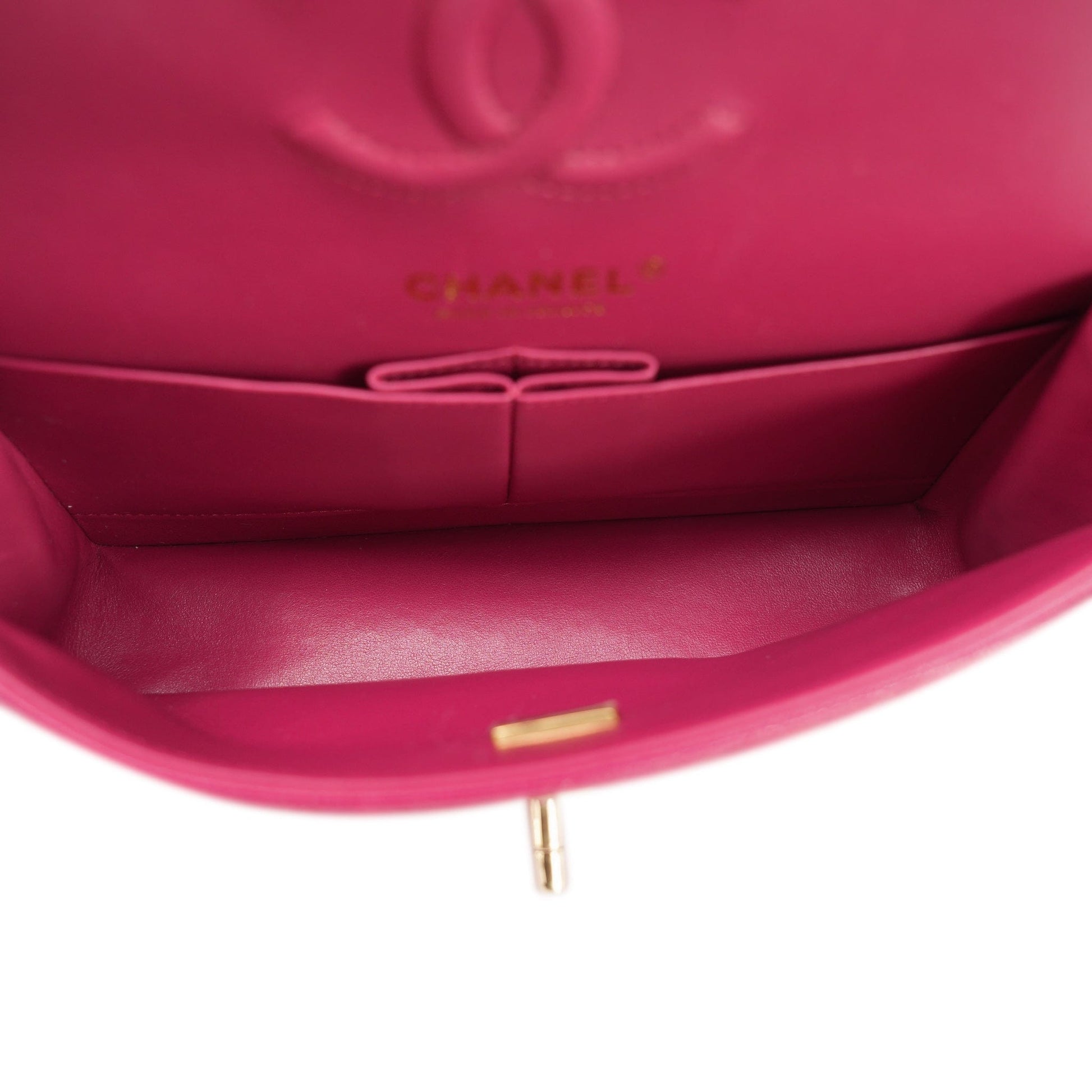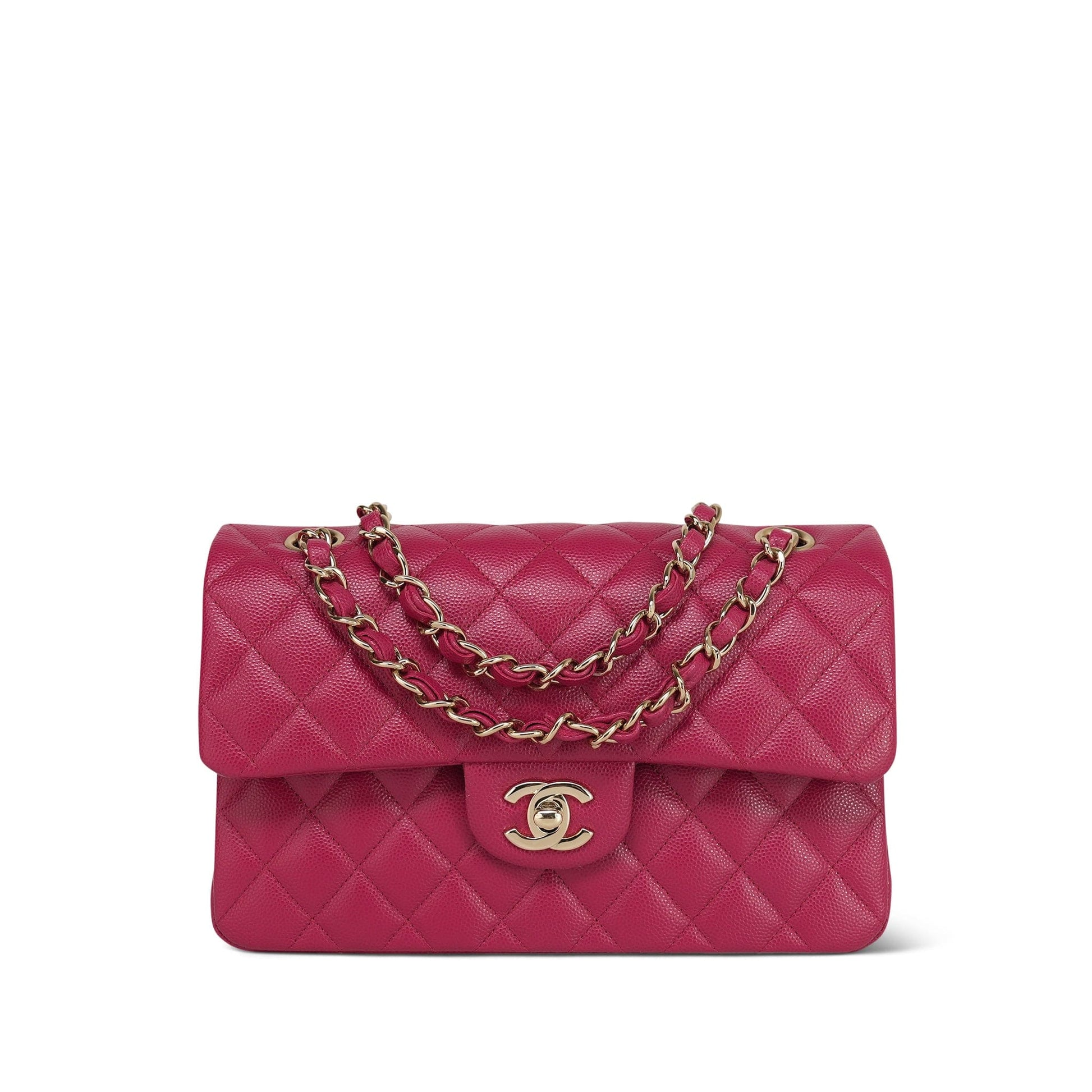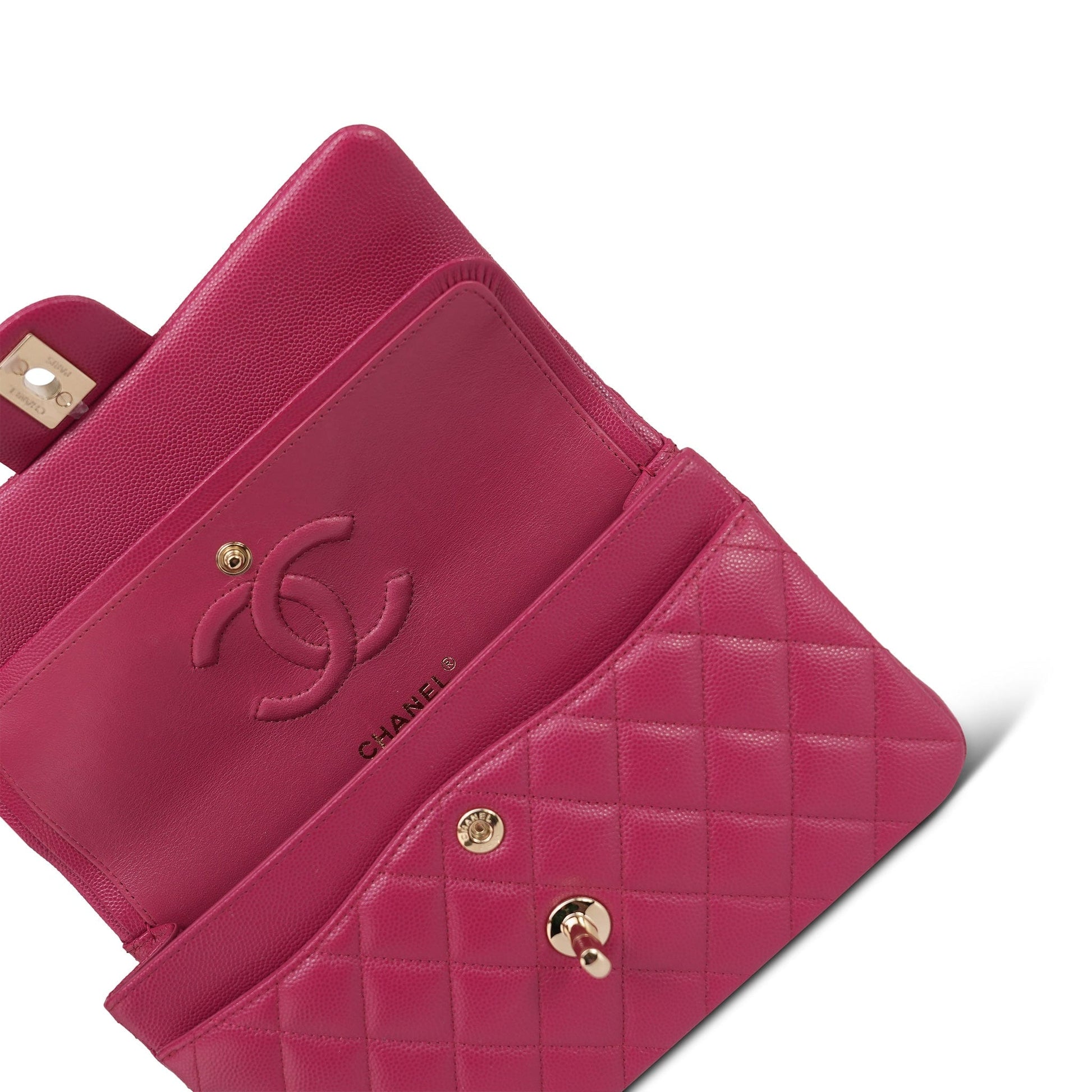 21A Dark Pink/Raspberry Caviar Quilted Classic Flap Small Light Gold Hardware
