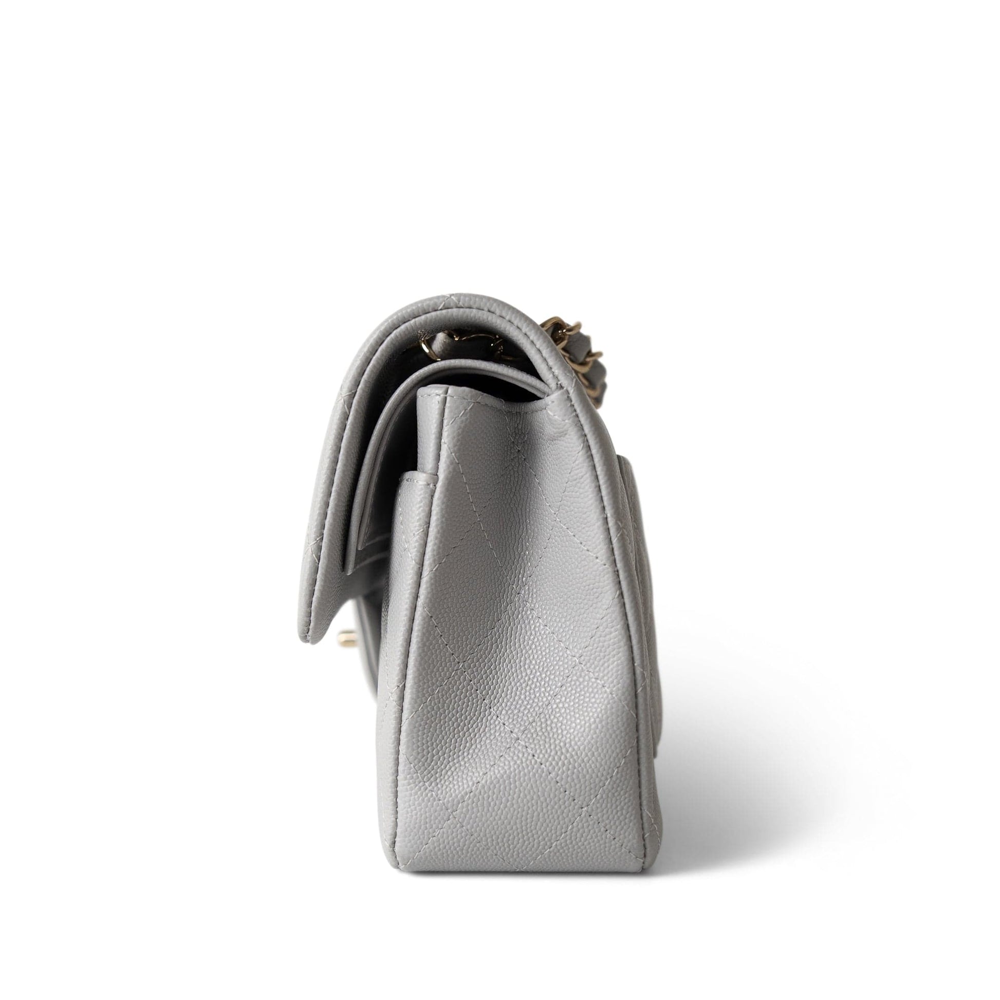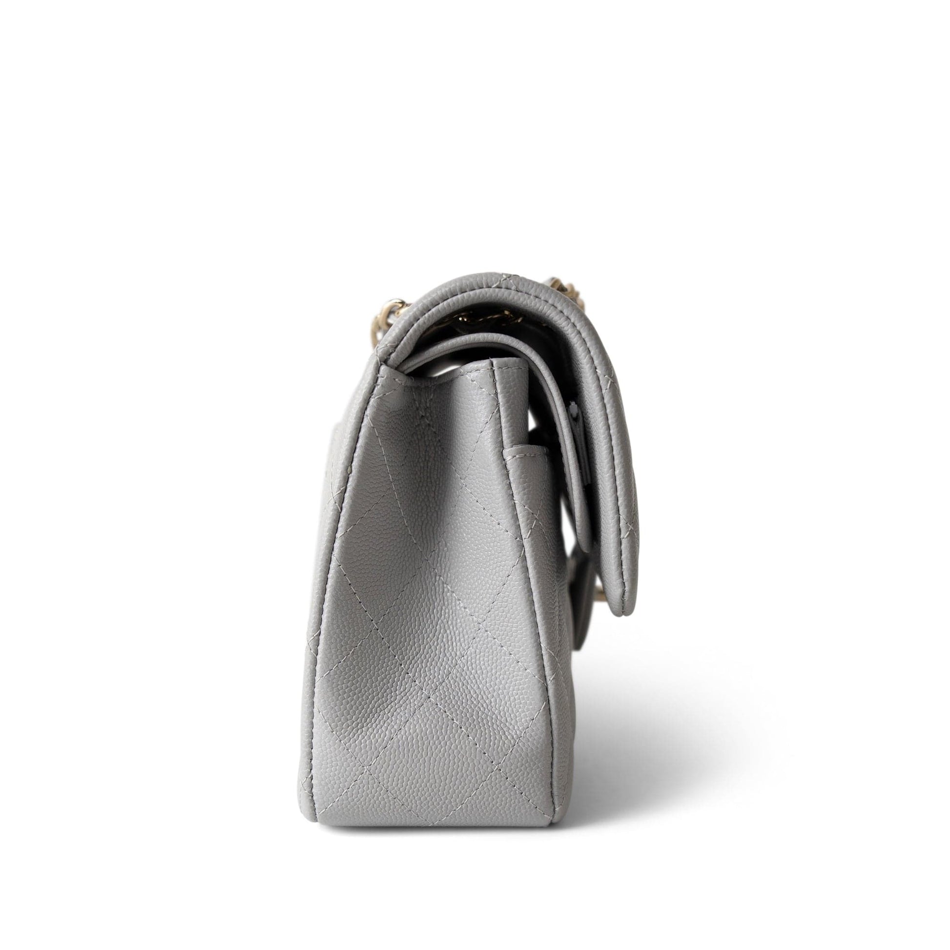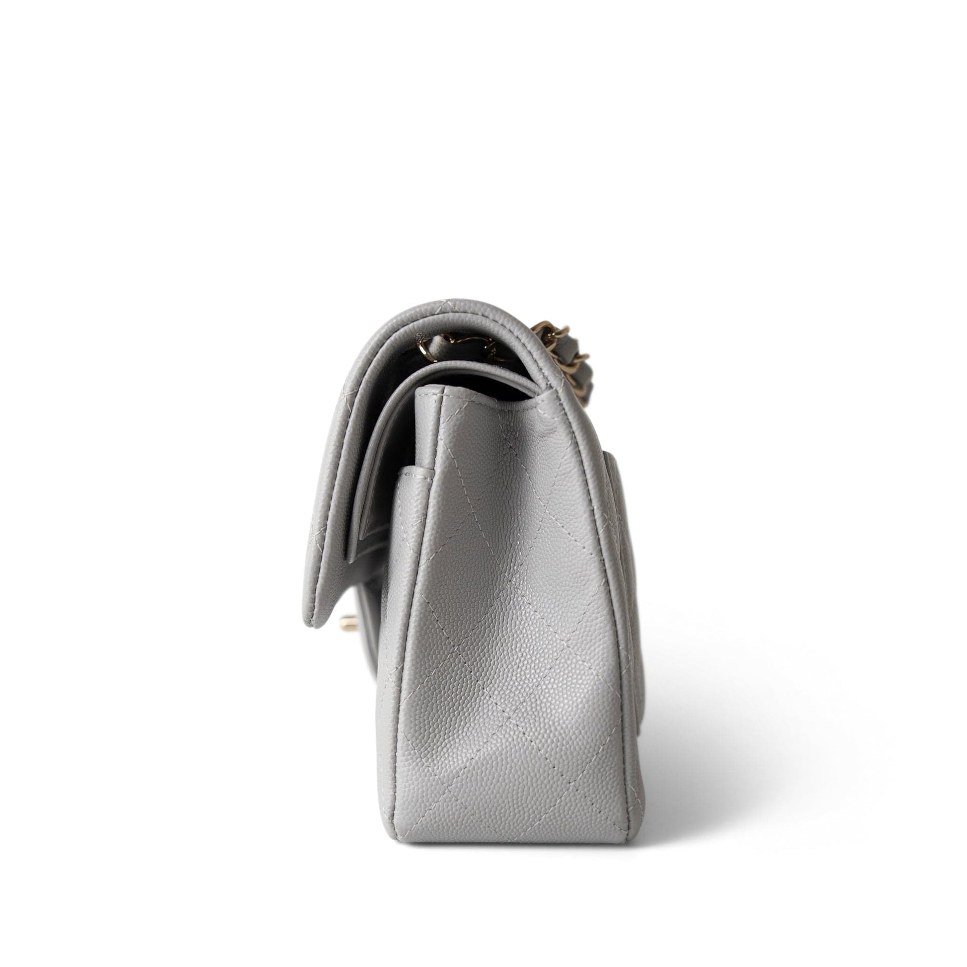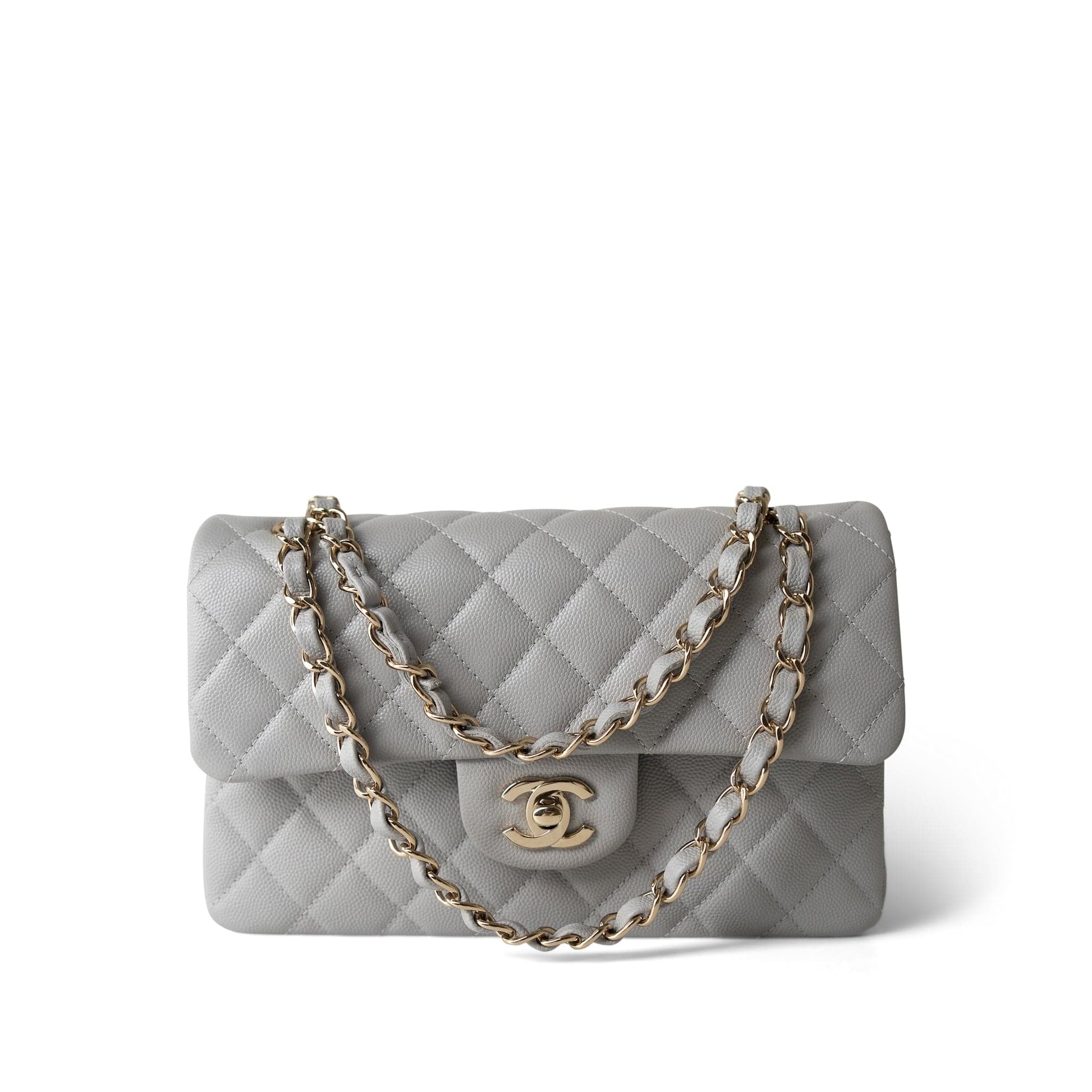 21A Grey Caviar Quilted Classic Flap Small Light Gold Hardware