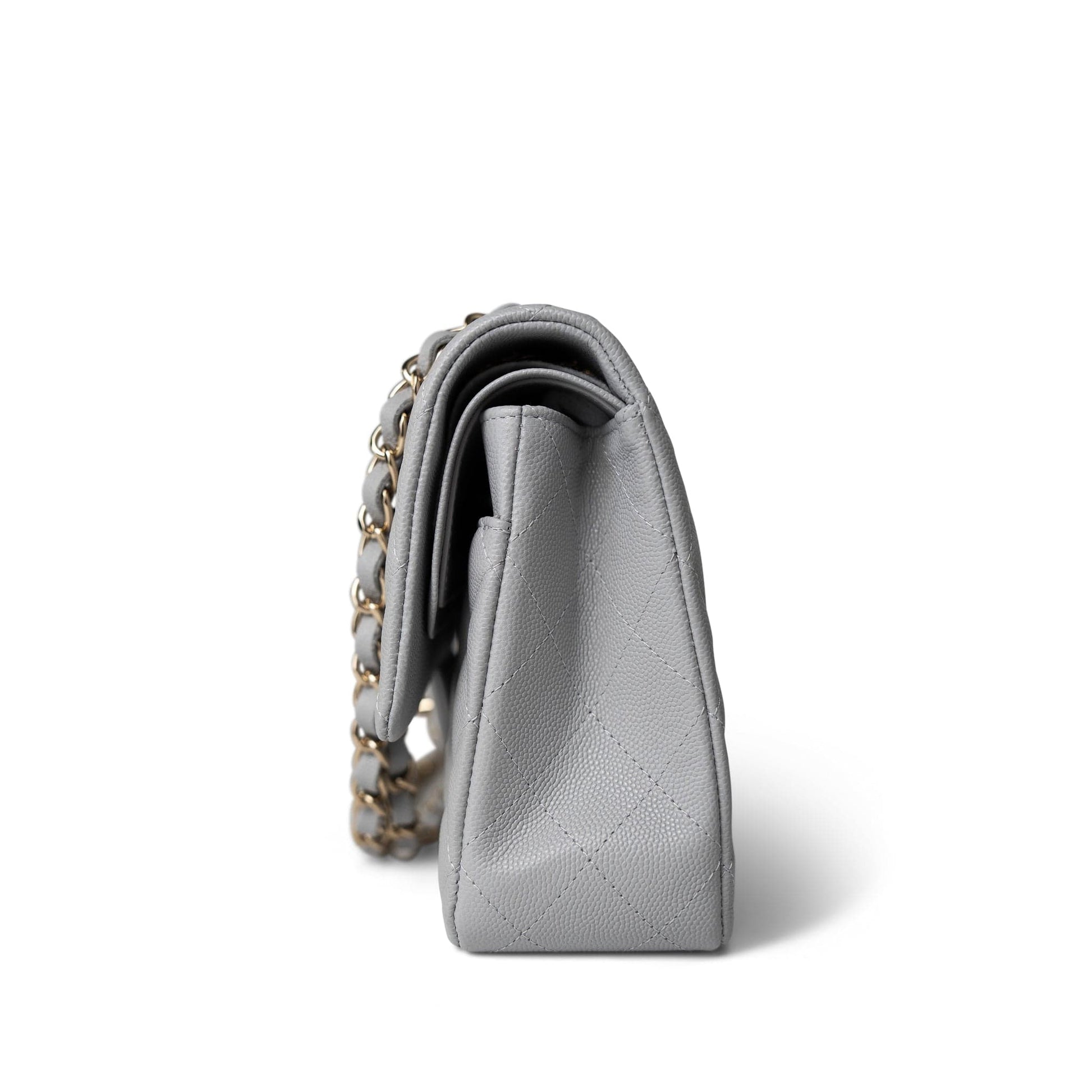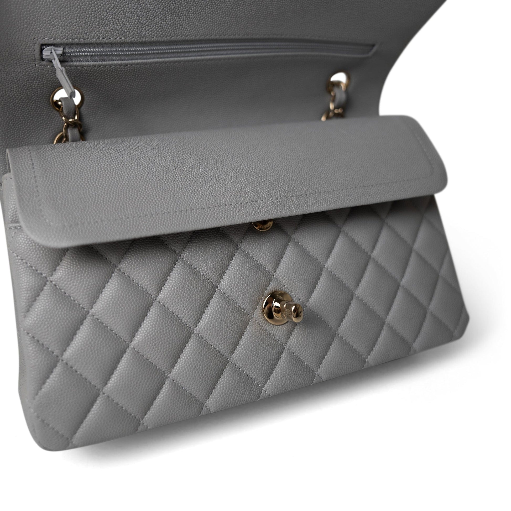21A Grey Caviar Quilted Medium Classic Flap Light Gold Hardware