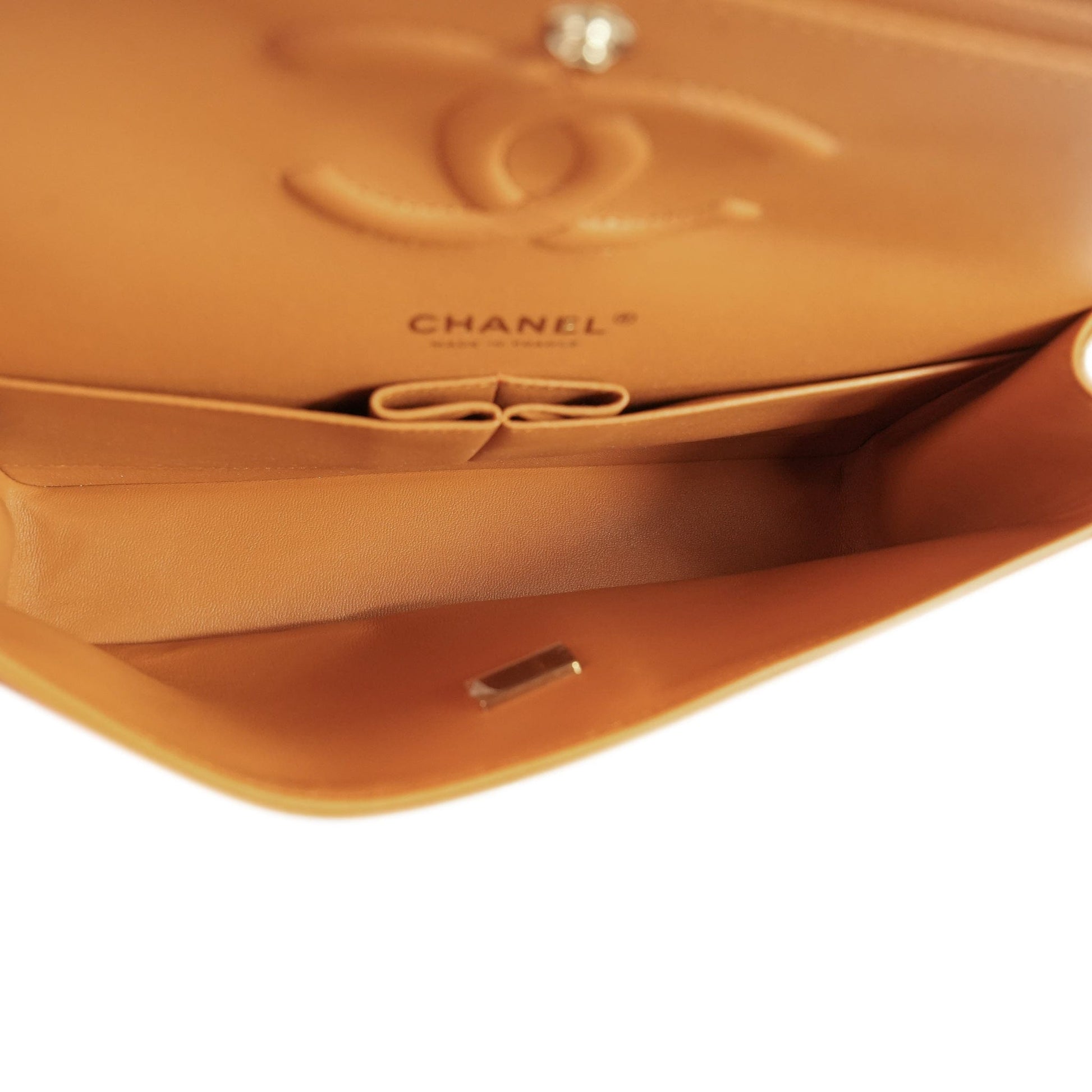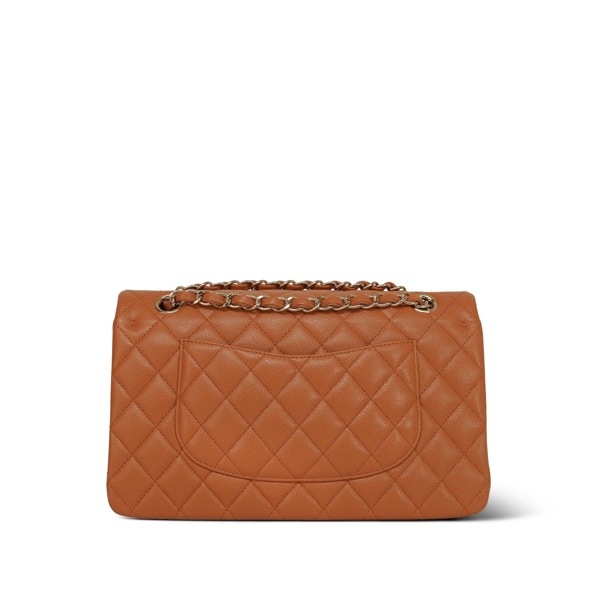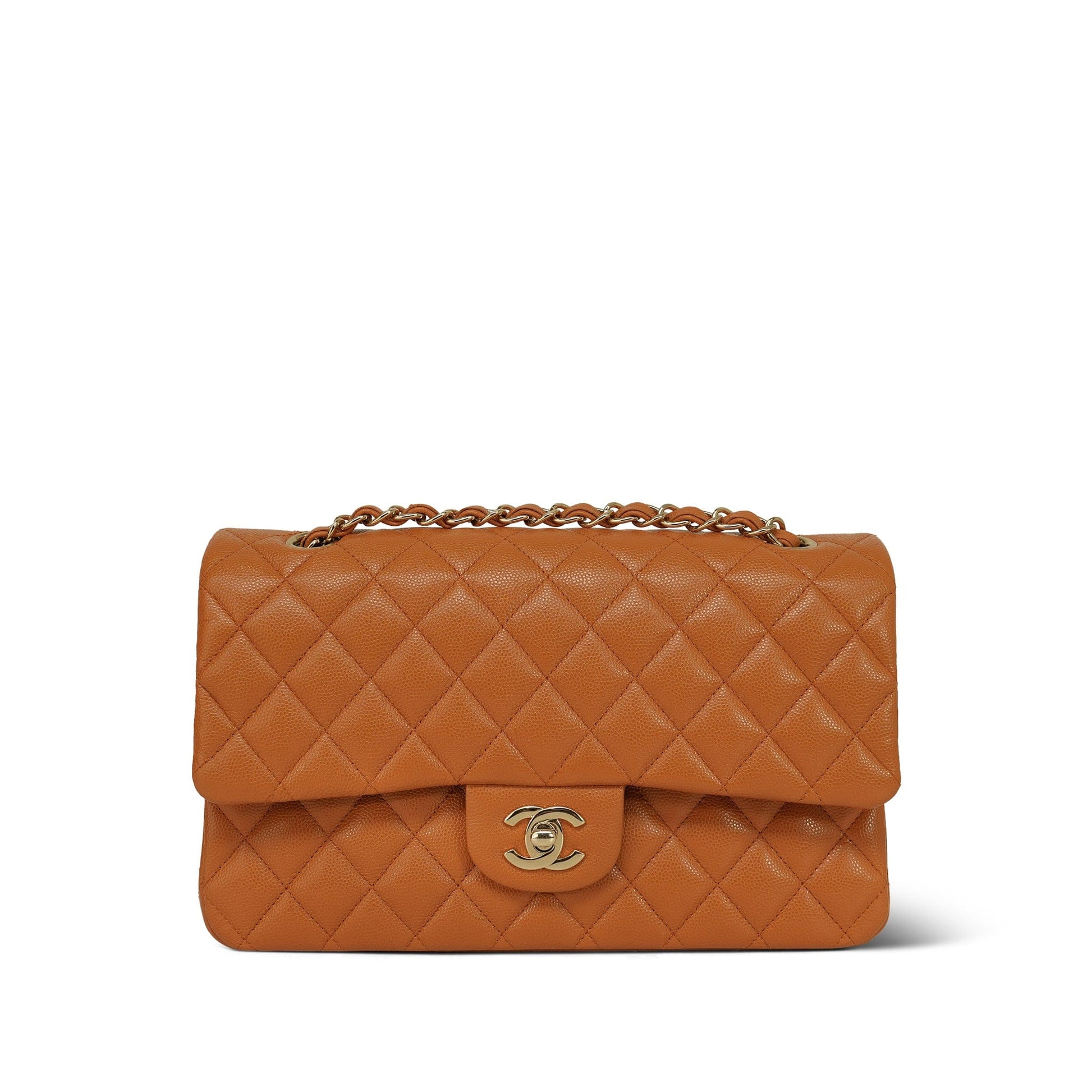 21A Caramel/Orange Caviar Quilted Classic Flap Medium LGHW