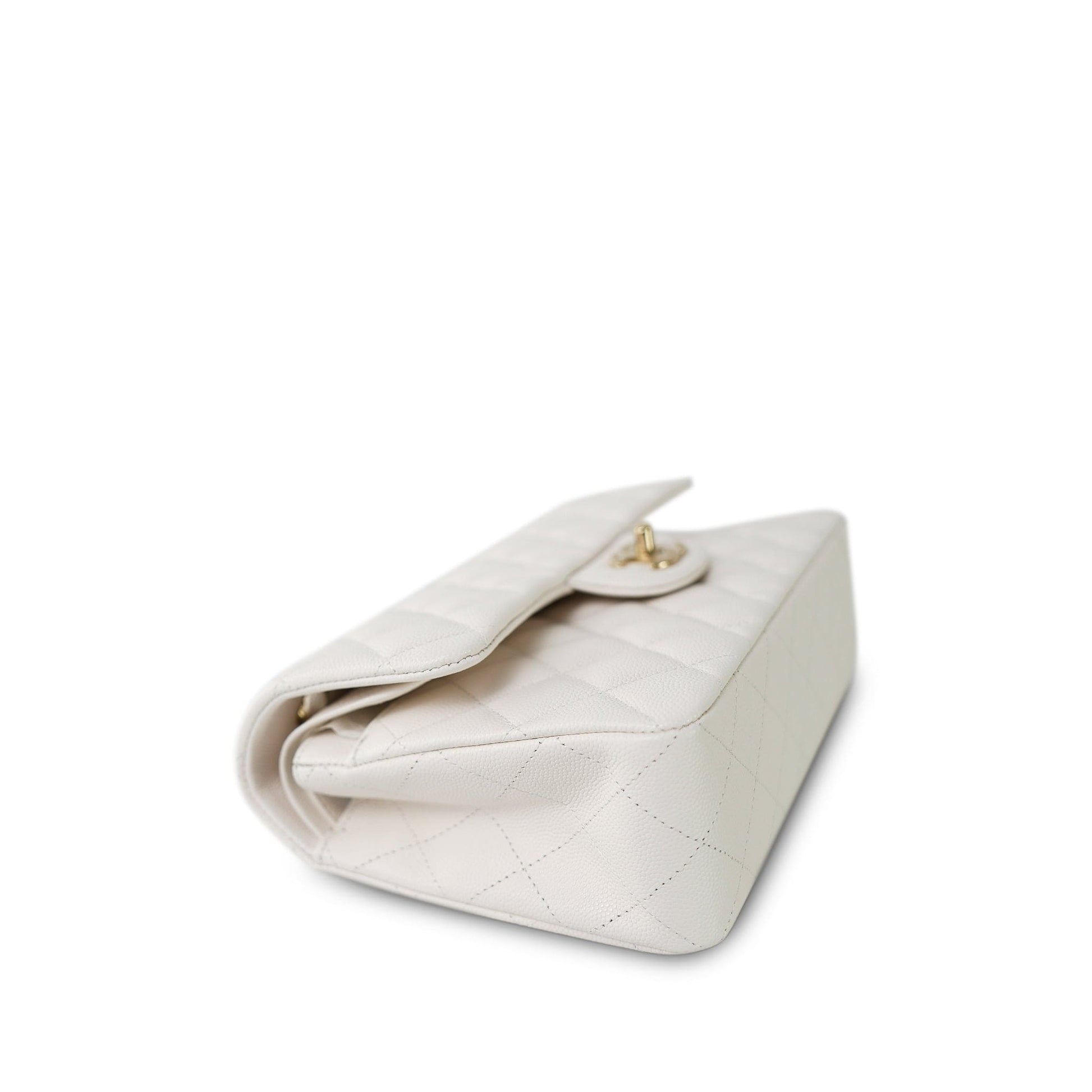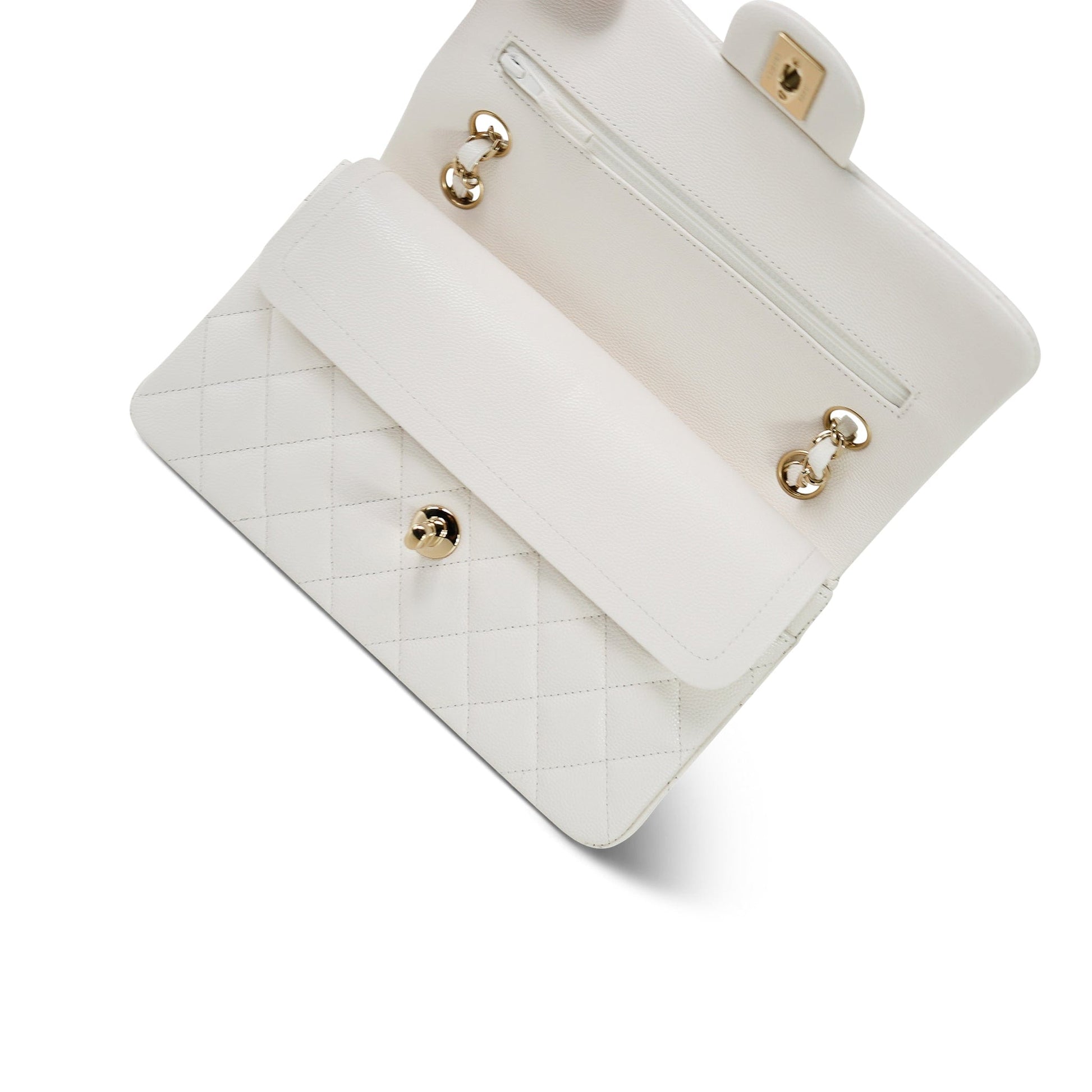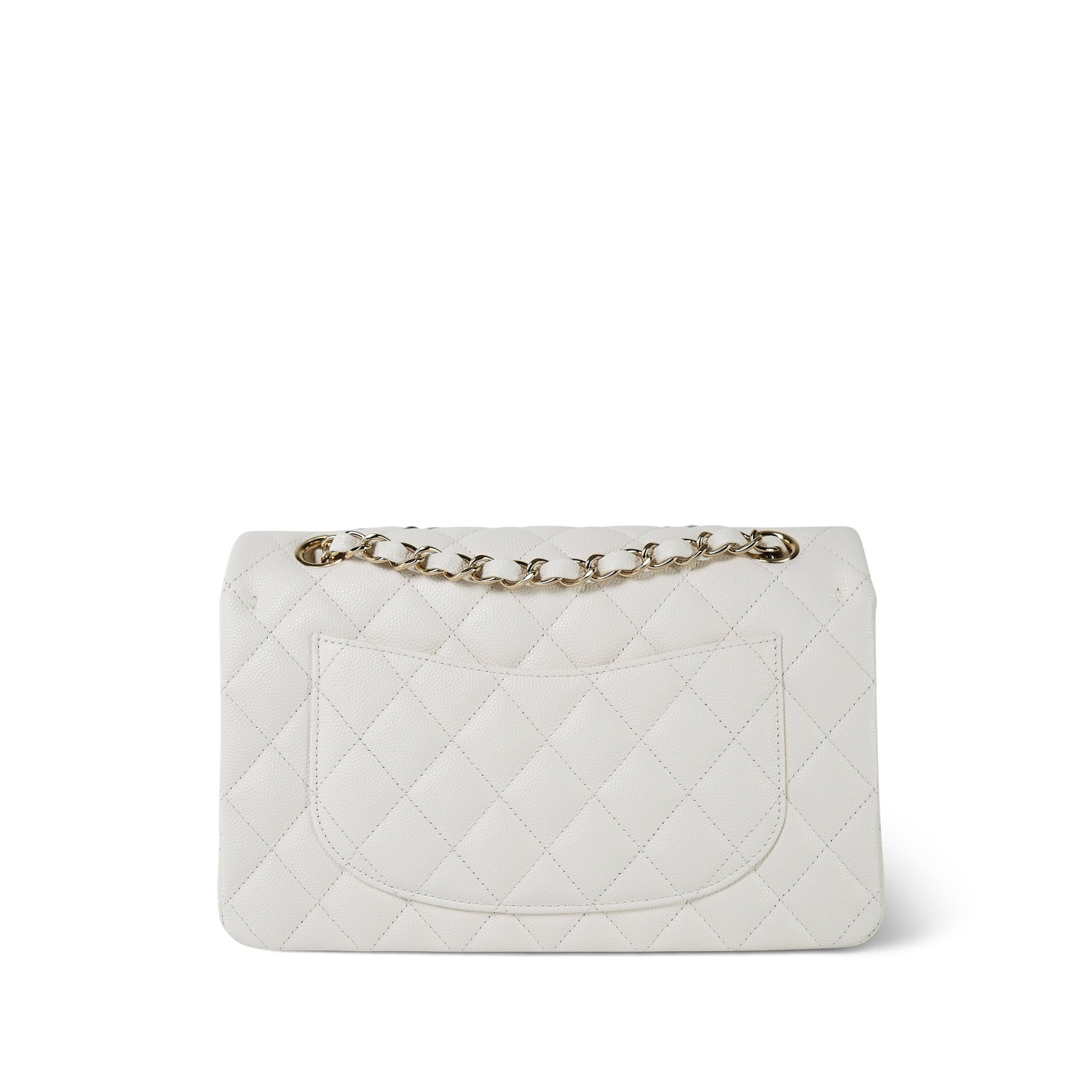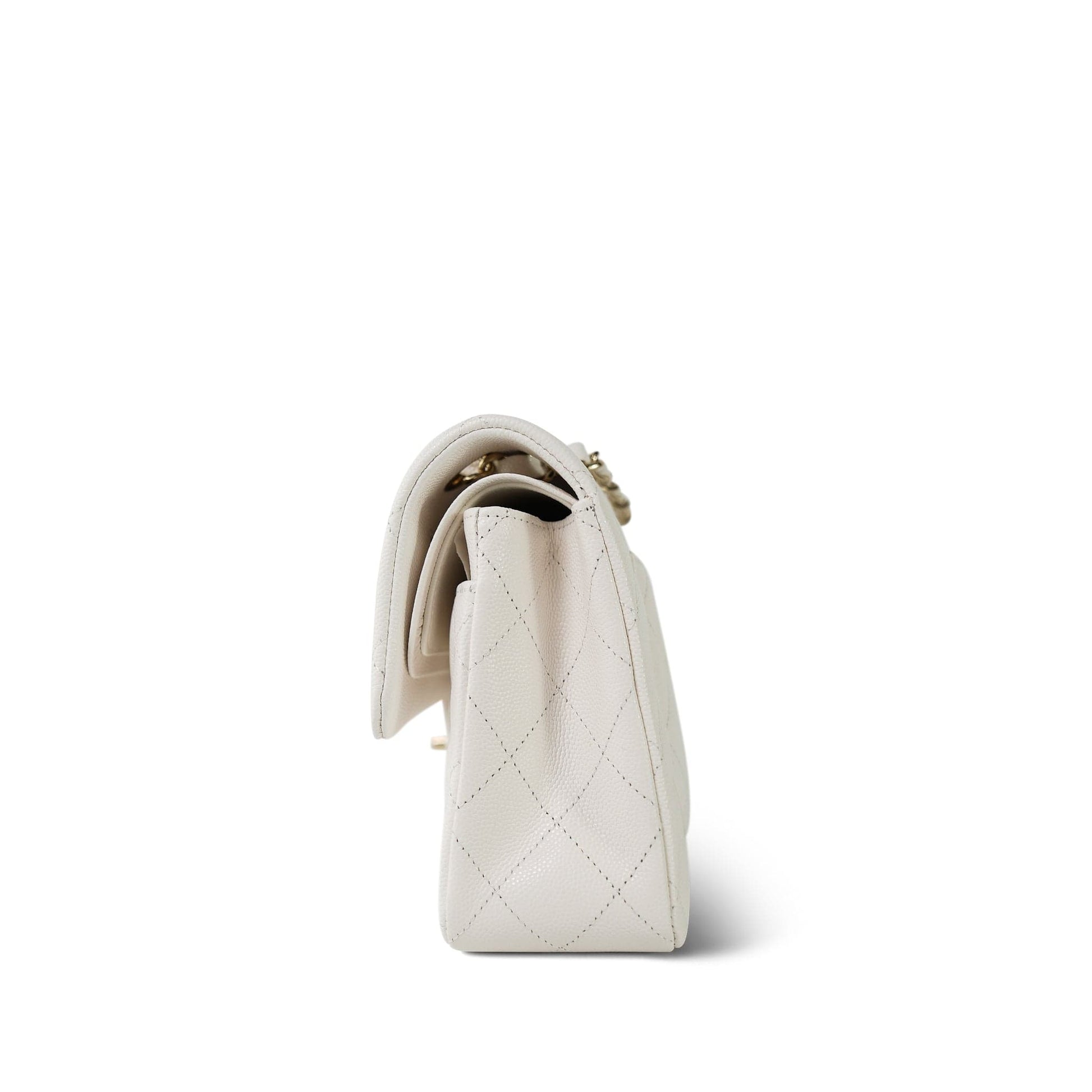 21B White Caviar Quilted Classic Flap Small Light Gold Hardware